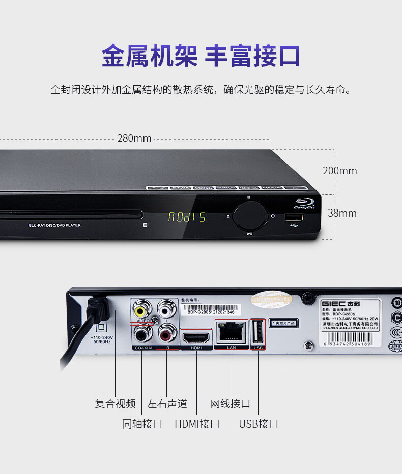 GIEC BDP-G2805 high-definition Blu-ray player DVD player home high-definition hard disk player vcd Blu-ray flagship G2805 (Jiangsu Warehouse)
