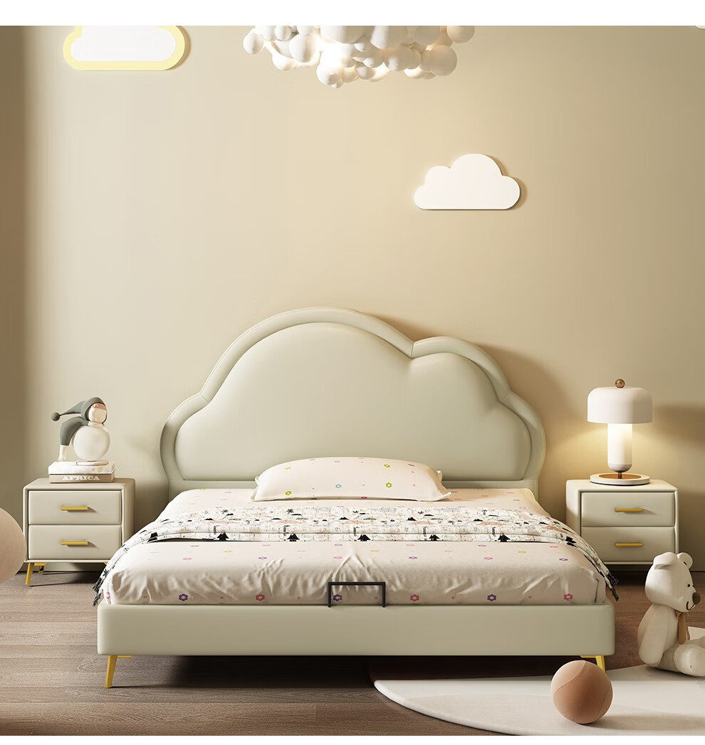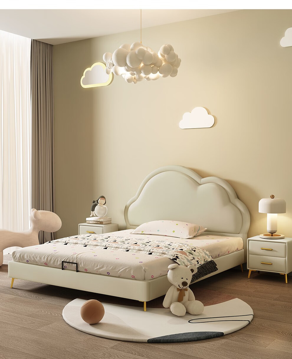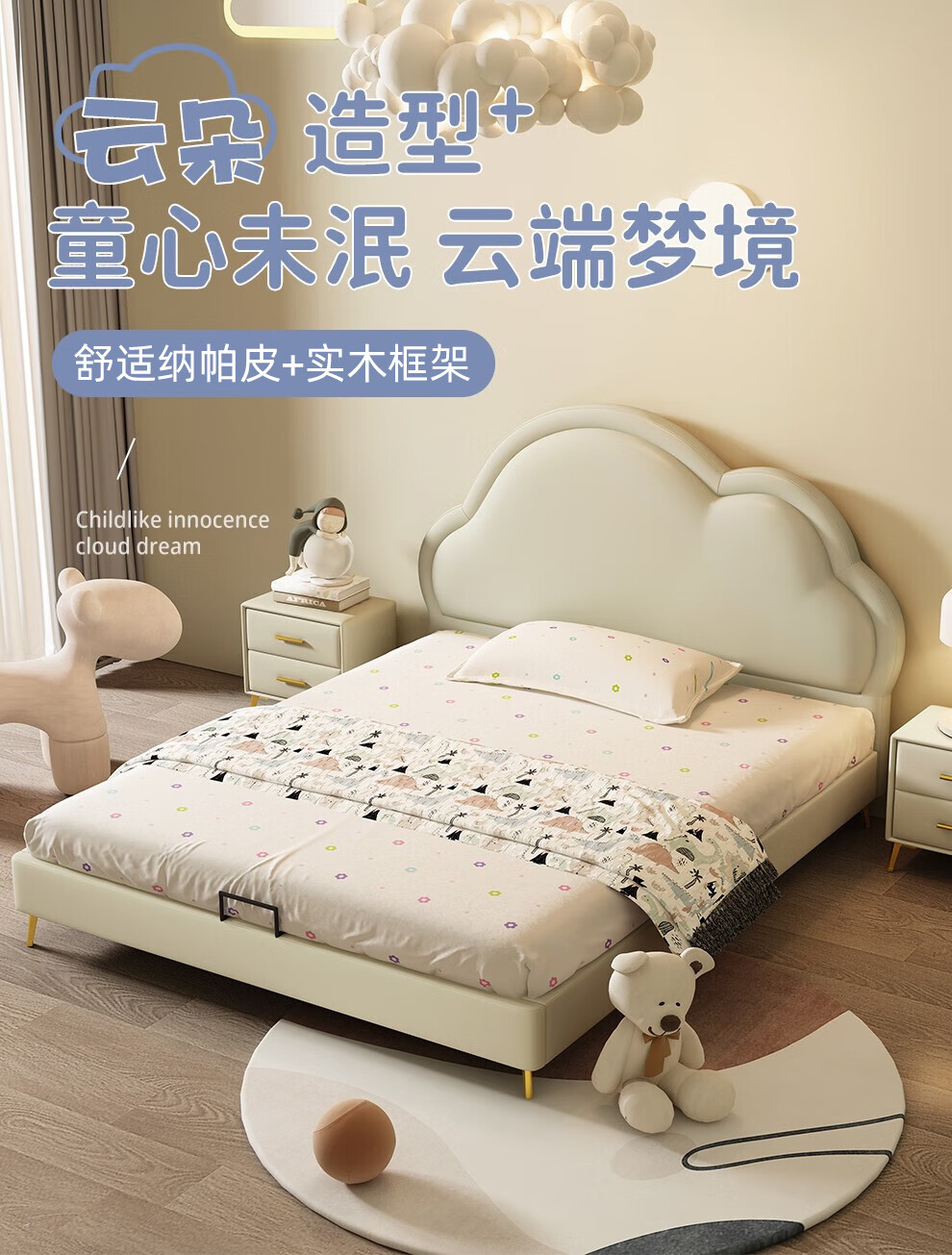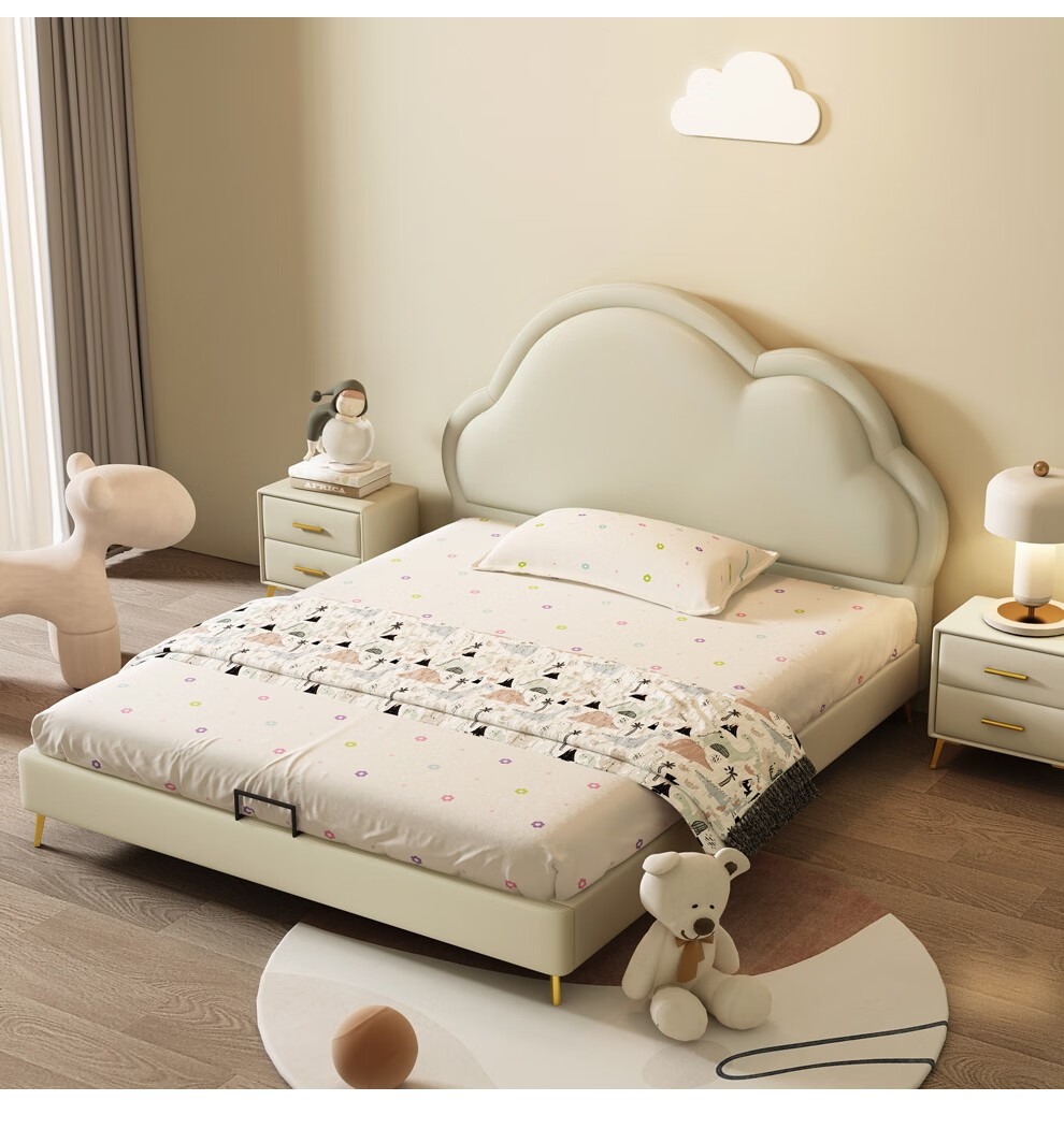 True Color Bear Children's Bed Children's Bed Boy Single Bed Modern Simple Solid Wood Upholstered Bed Cloud Bed Girl Princess Bed Upholstered Bed 1.5m*1.9m