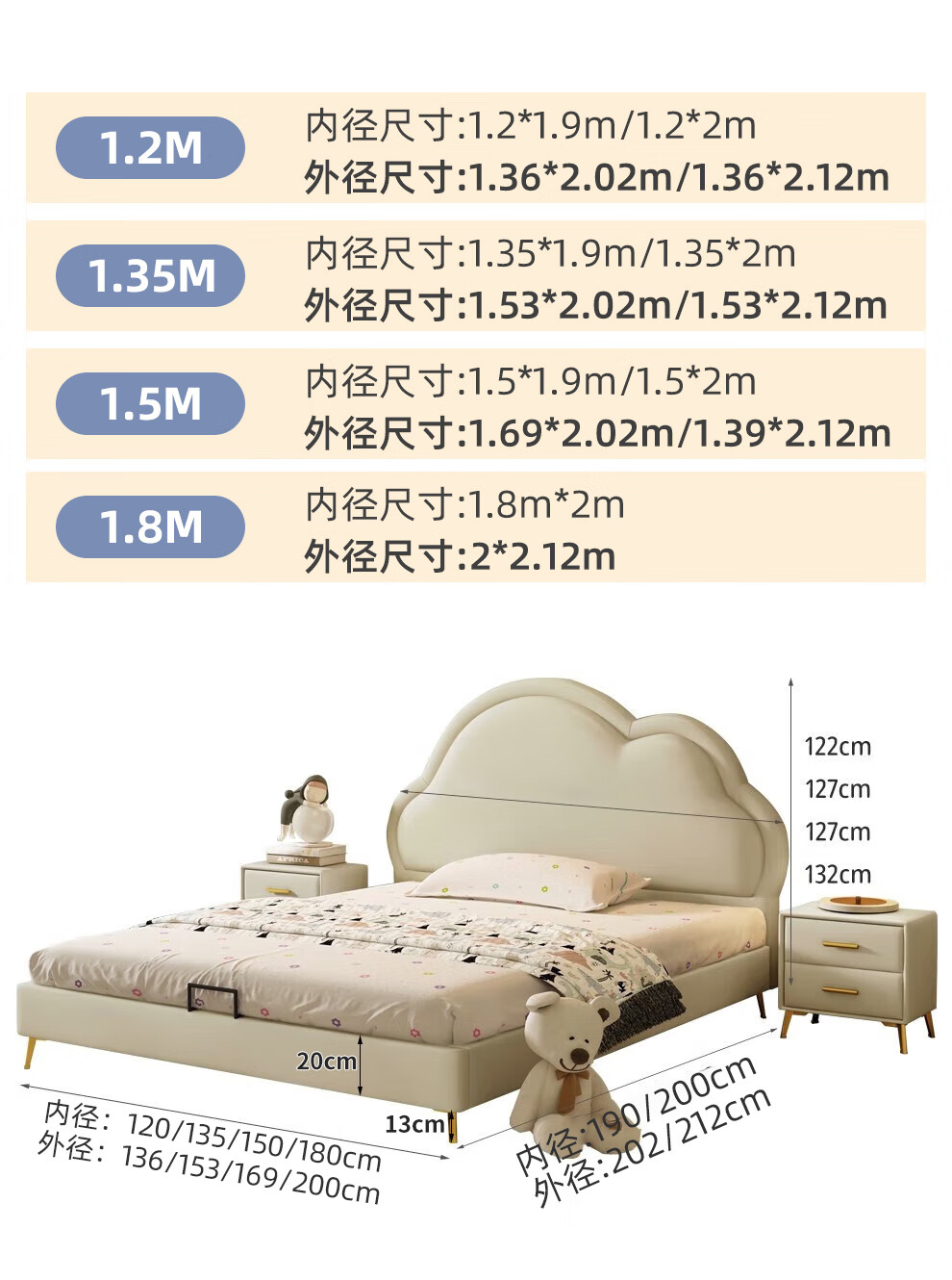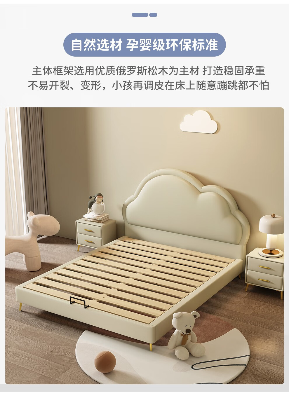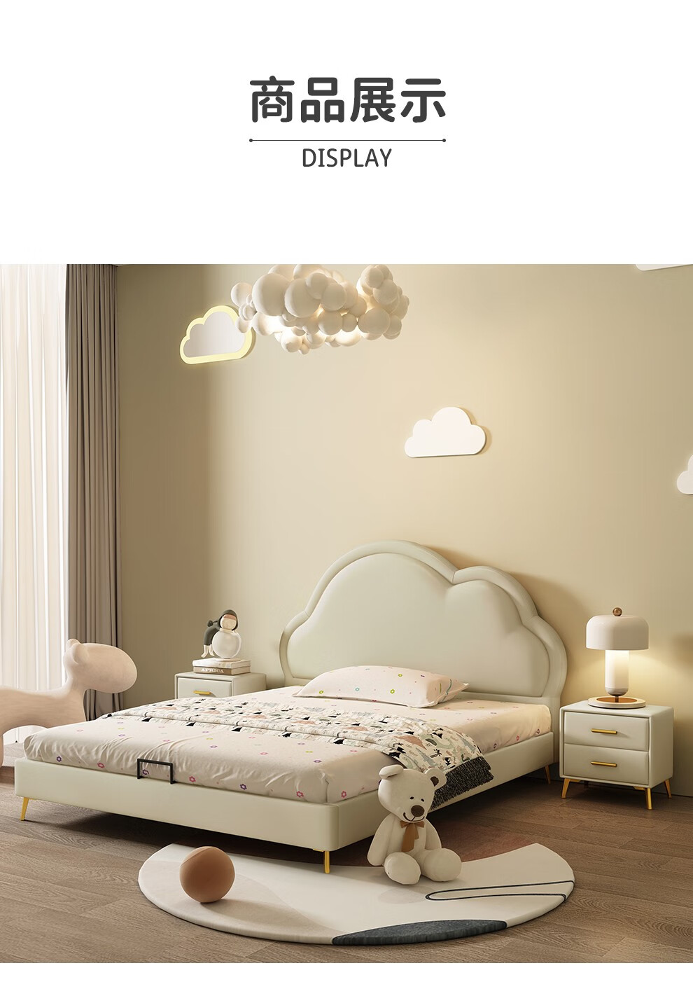 True Color Bear Children's Bed Children's Bed Boy Single Bed Modern Simple Solid Wood Upholstered Bed Cloud Bed Girl Princess Bed Upholstered Bed 1.5m*1.9m