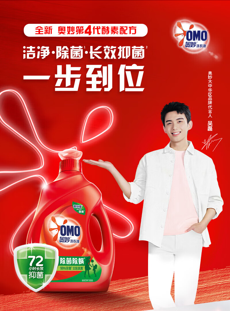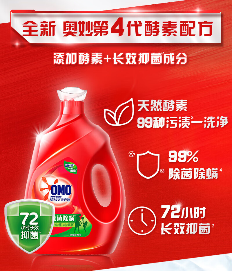 Omo Laundry Detergent, sterilization, mite removal, long-lasting fragrance, stain removal, long-lasting antibacterial enzyme, machine hand washing bottle and bag combination, 6 catties, affordable bottle bag