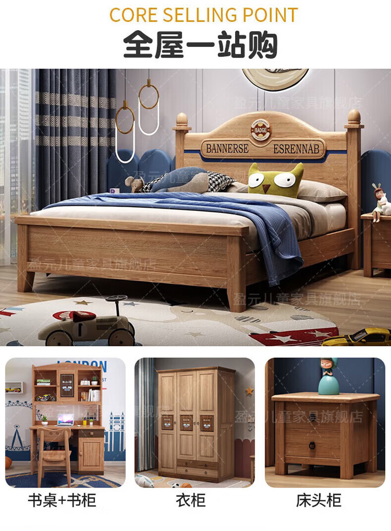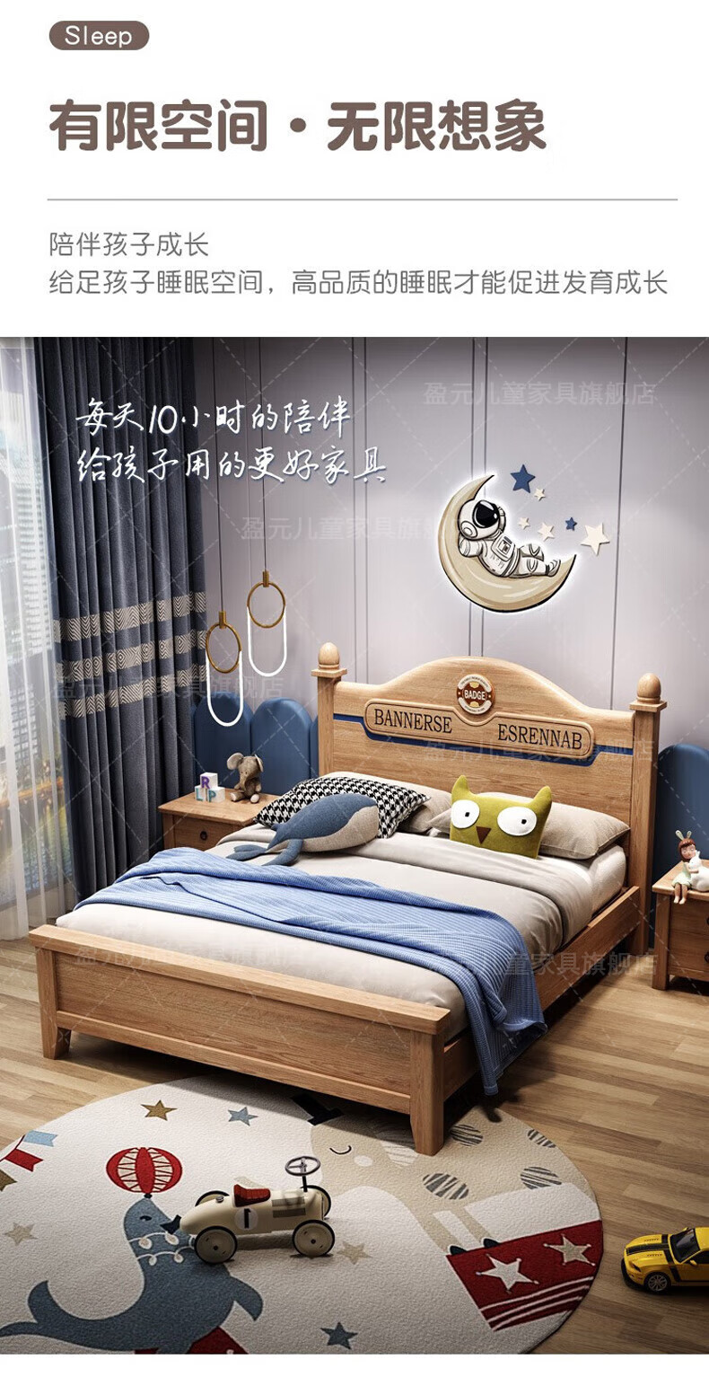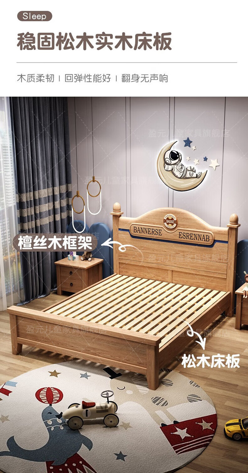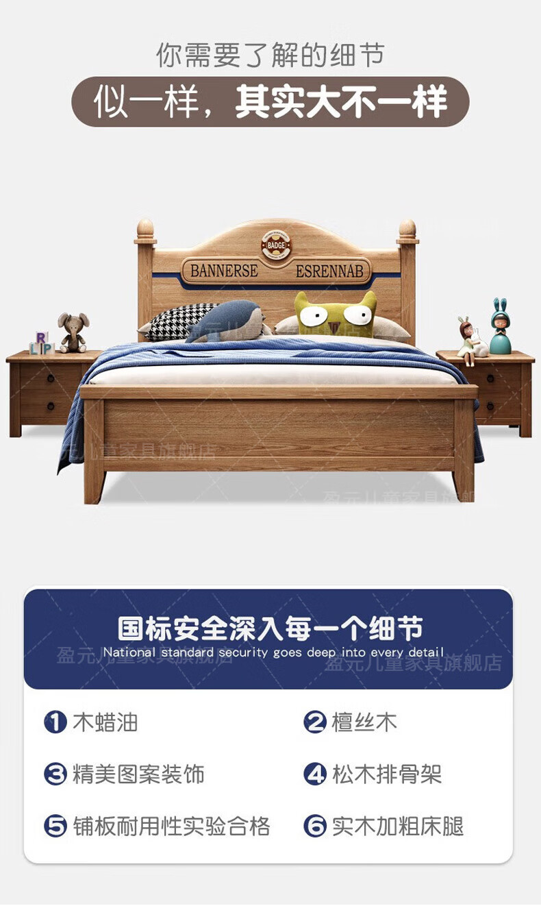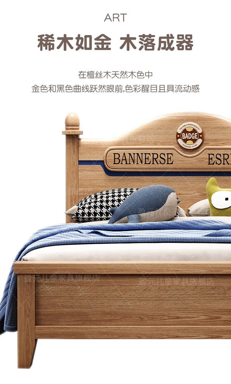 Yingyuan solid wood children's bed boy 1.5m single bed bedroom bed 1.2m student bed solid wood bed storage bed single bed solid wood bed golden sandalwood 1500mm*2000mm frame structure