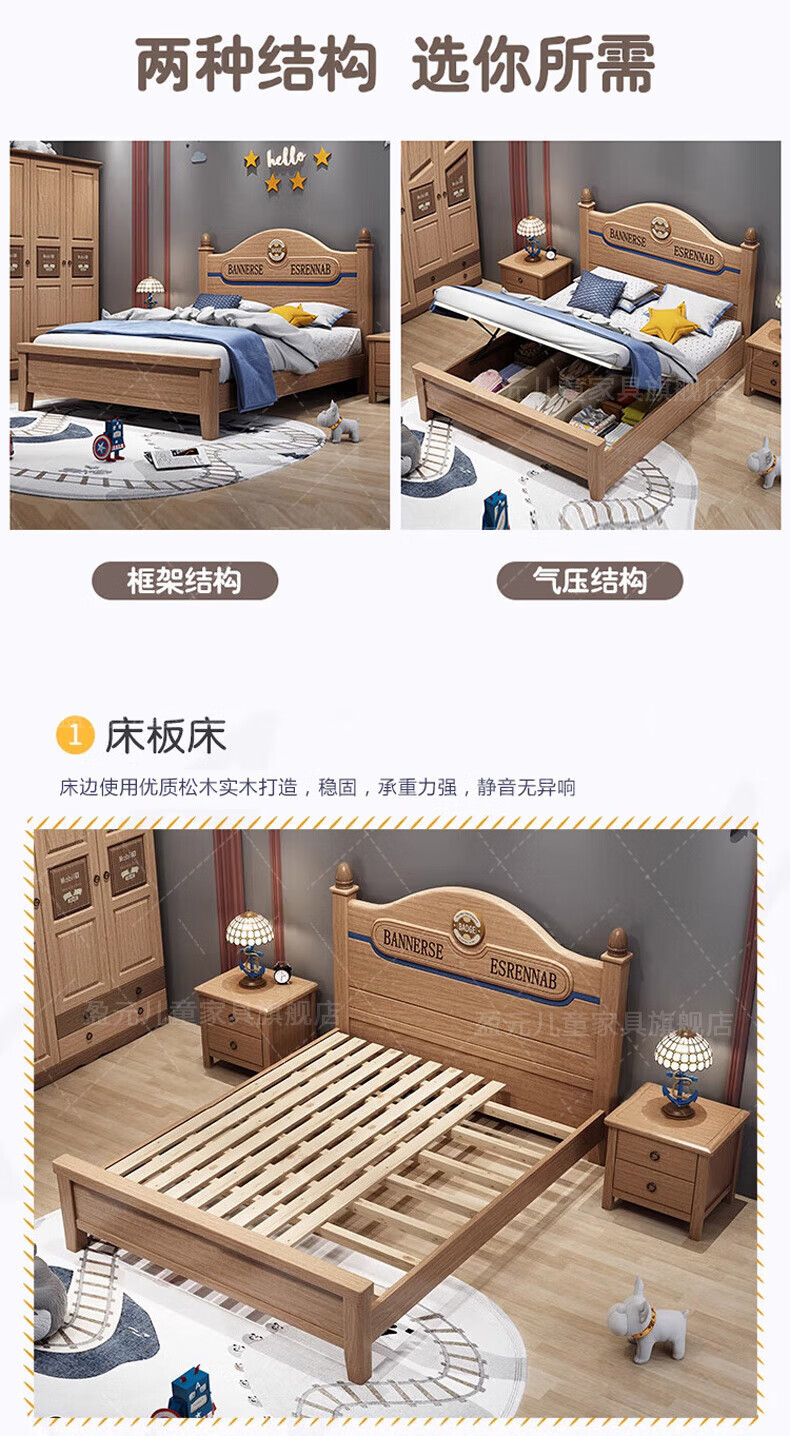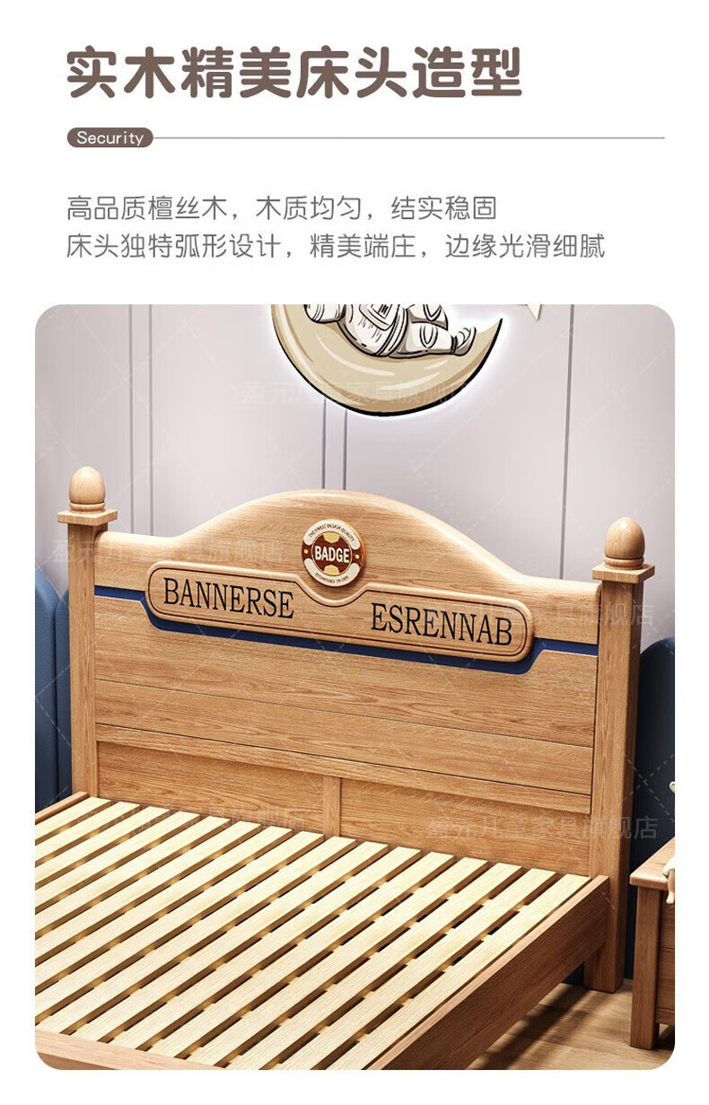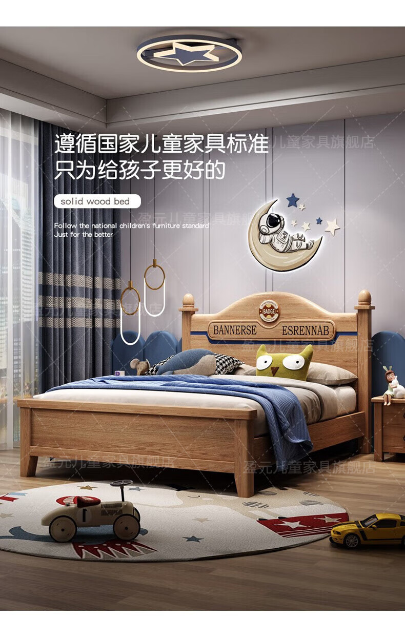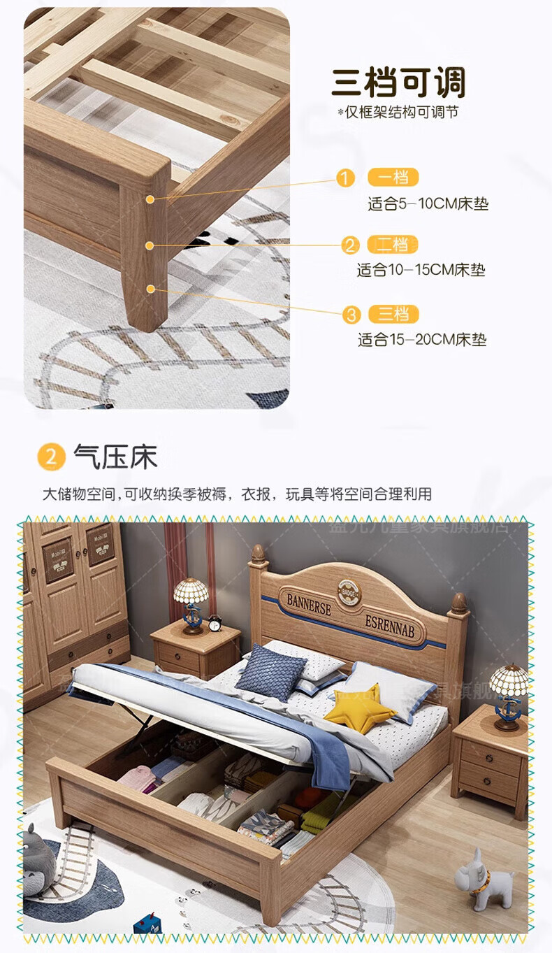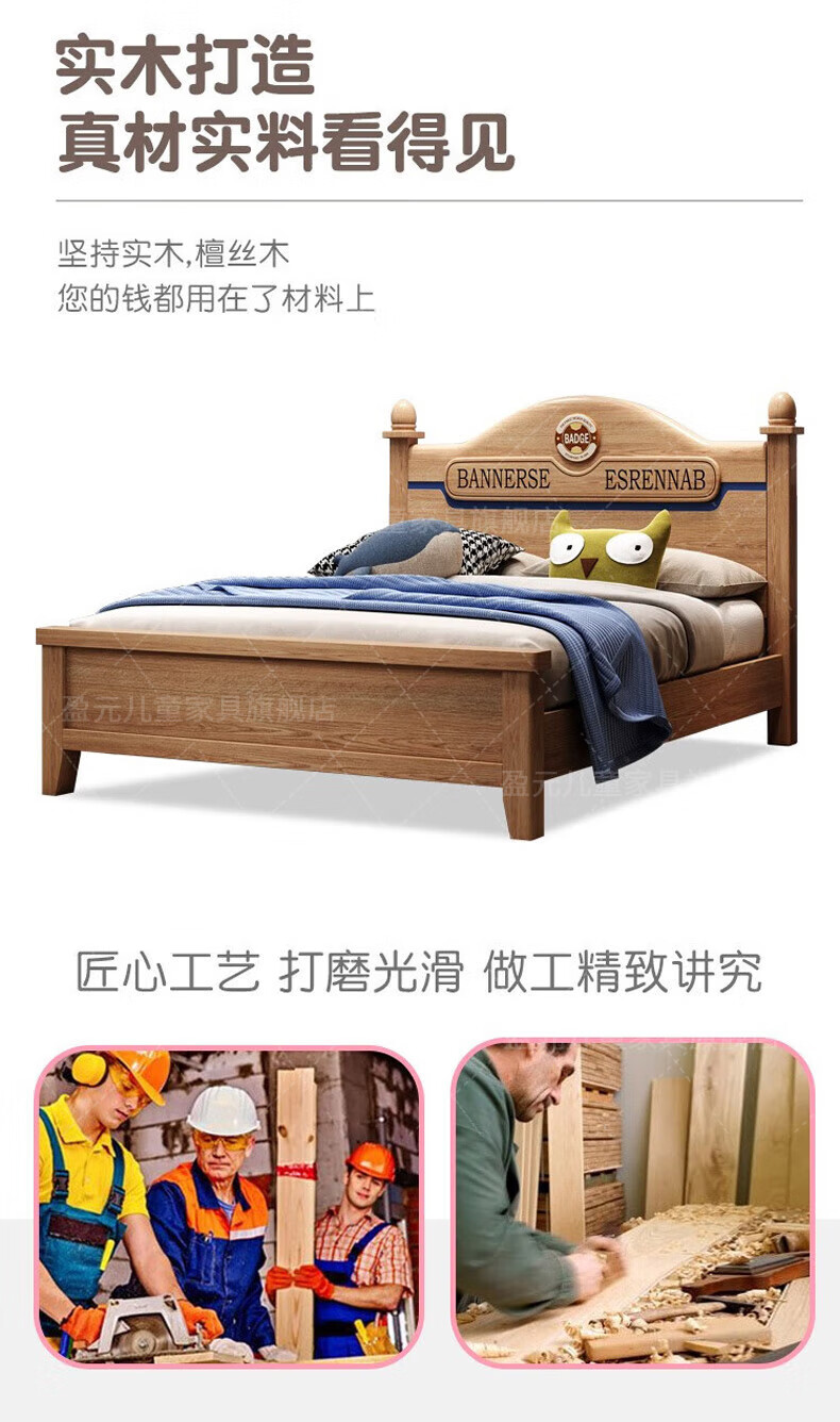 Yingyuan solid wood children's bed boy 1.5m single bed bedroom bed 1.2m student bed solid wood bed storage bed single bed solid wood bed golden sandalwood 1500mm*2000mm frame structure