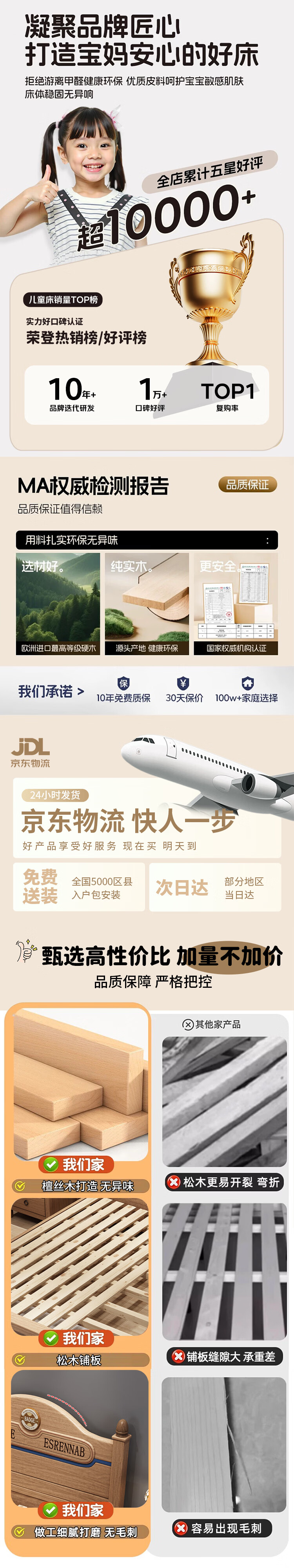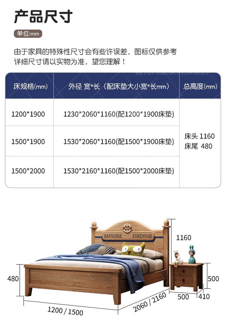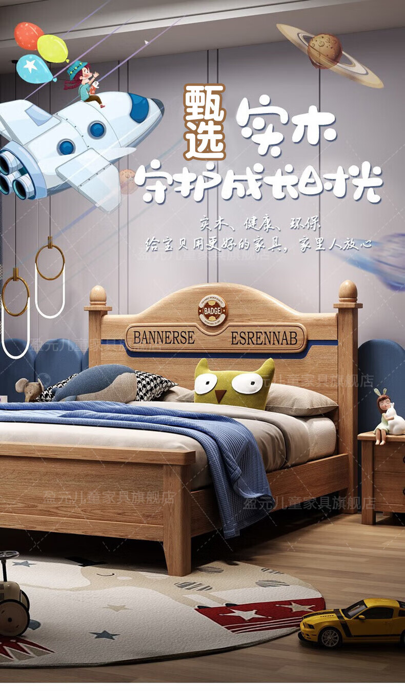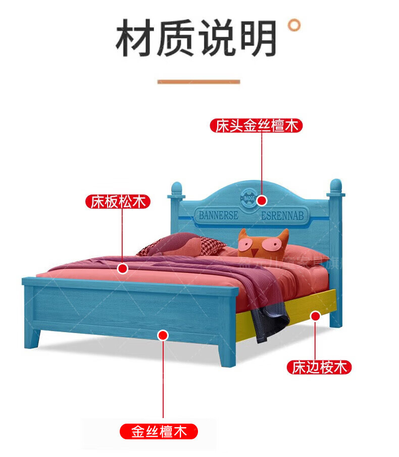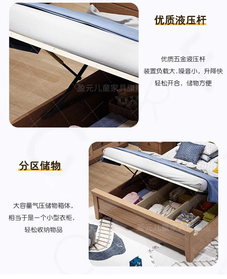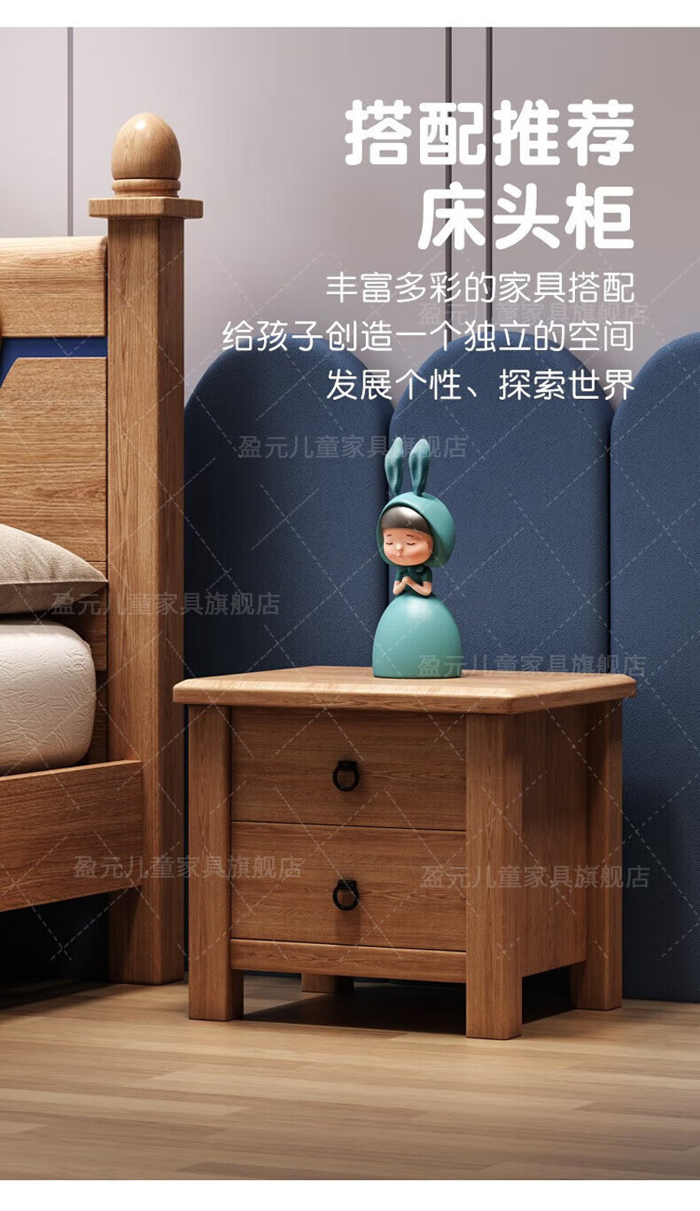 Yingyuan solid wood children's bed boy 1.5m single bed bedroom bed 1.2m student bed solid wood bed storage bed single bed solid wood bed golden sandalwood 1500mm*2000mm frame structure