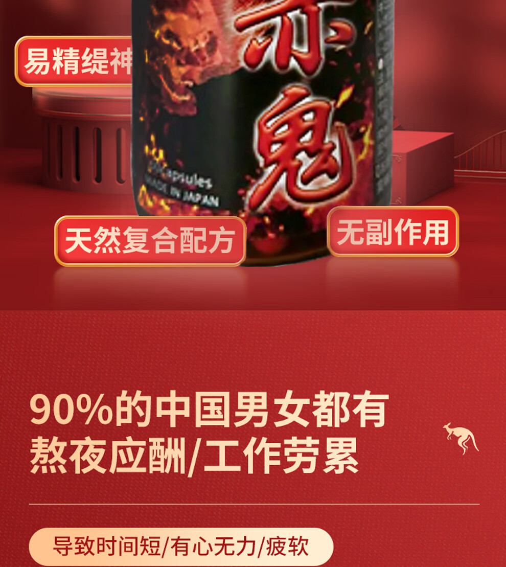 RB-BUSINESS Japanese Red Ghost Men's Oral Red Capsules Highly Concentrated Mixed Amino Acid Supplement to Restore Physical Strength and Enhance Physical Fitness 60 Capsules 1 Bottle