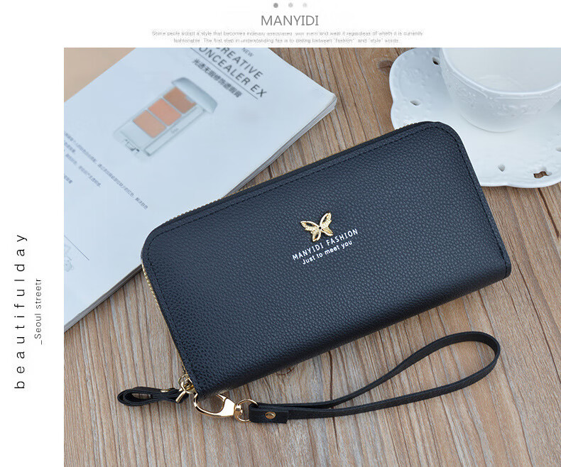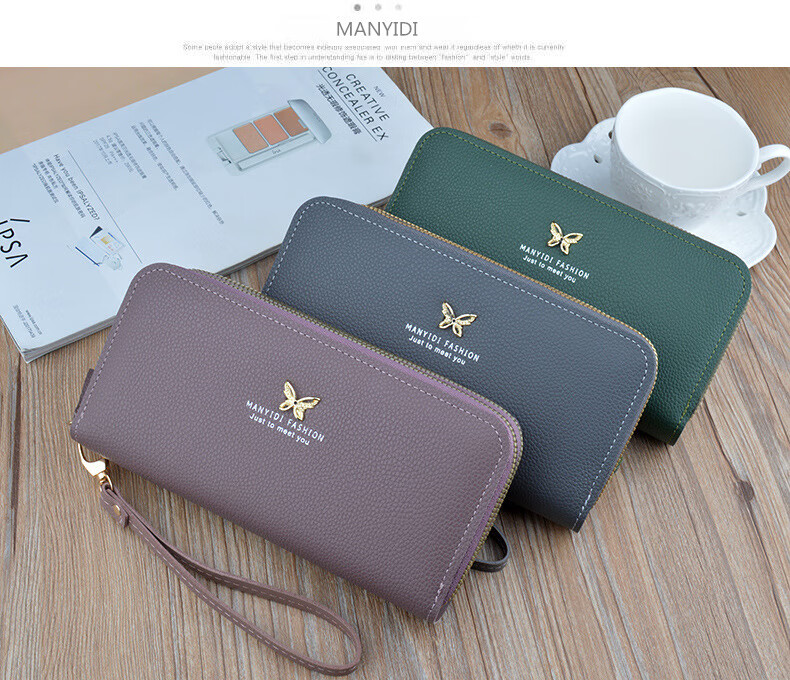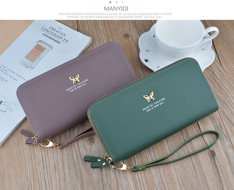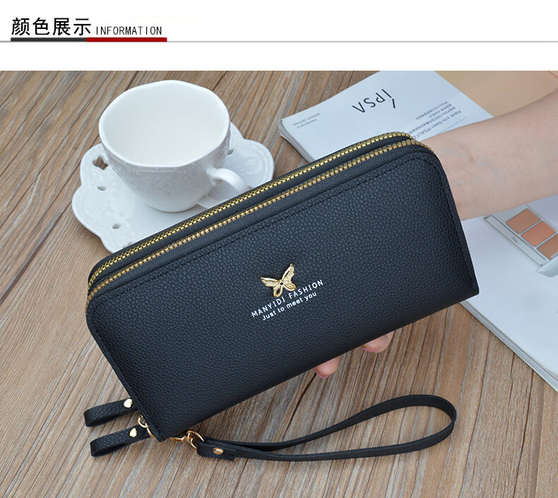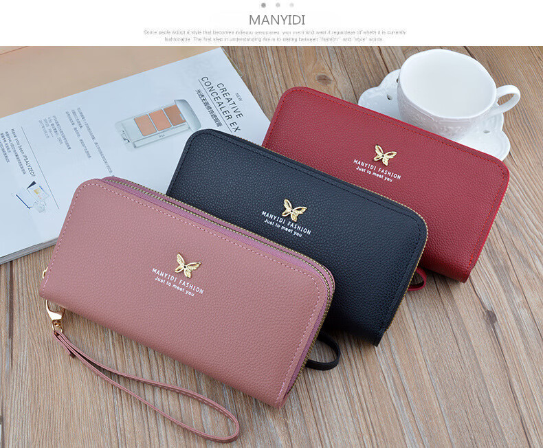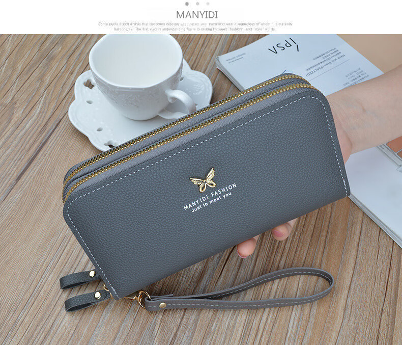 New style portable wallet for women, long double zipper clutch bag, large capacity double layer mobile phone bag, fashionable litchi pattern wallet, maroon