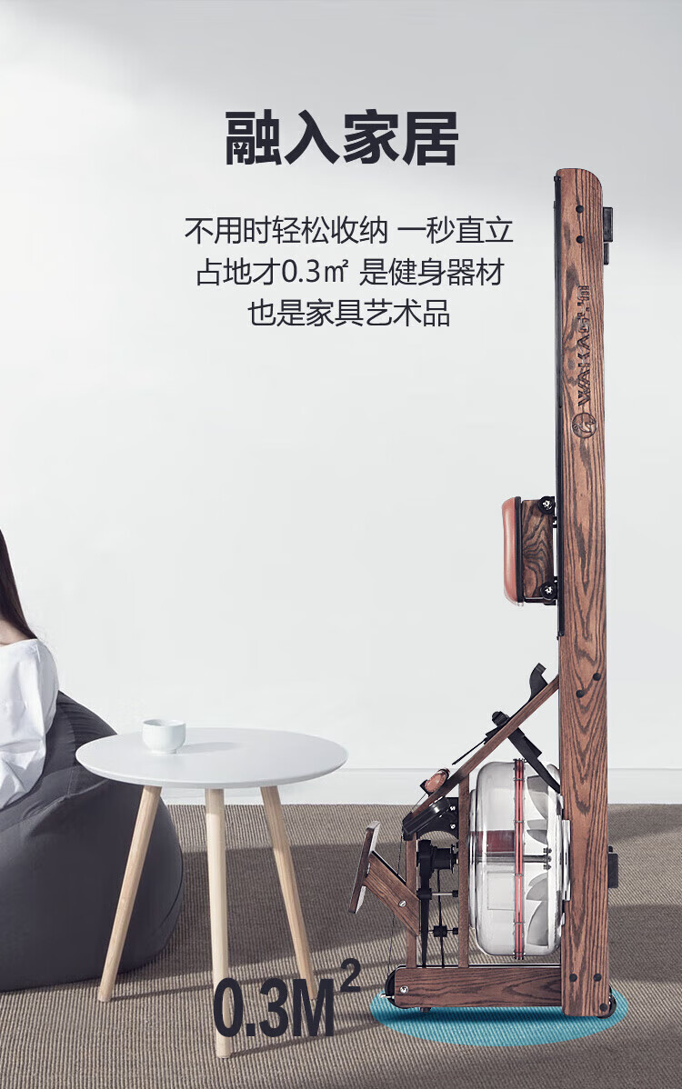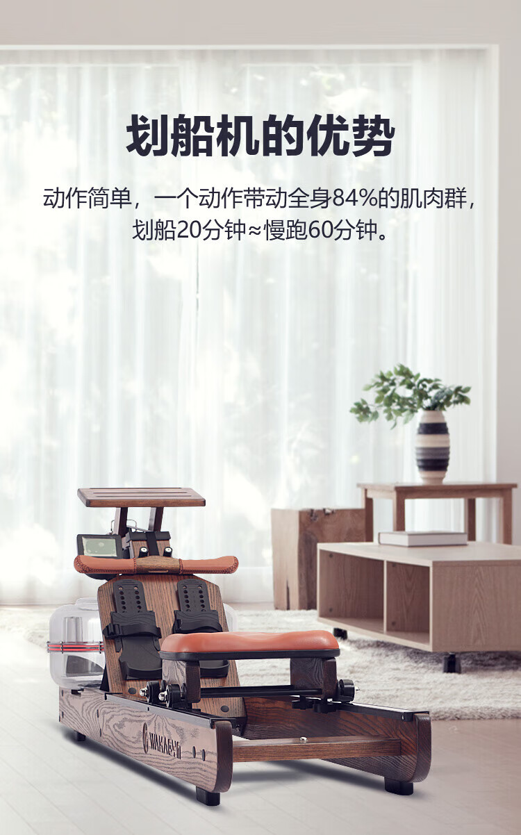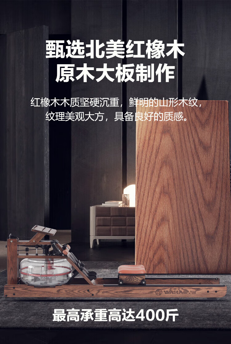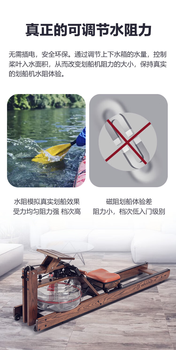Wakagym patented 5-speed adjustment and noise reduction black technology smart water resistance rowing machine home aerobic fitness equipment house of cards red oak WK-30