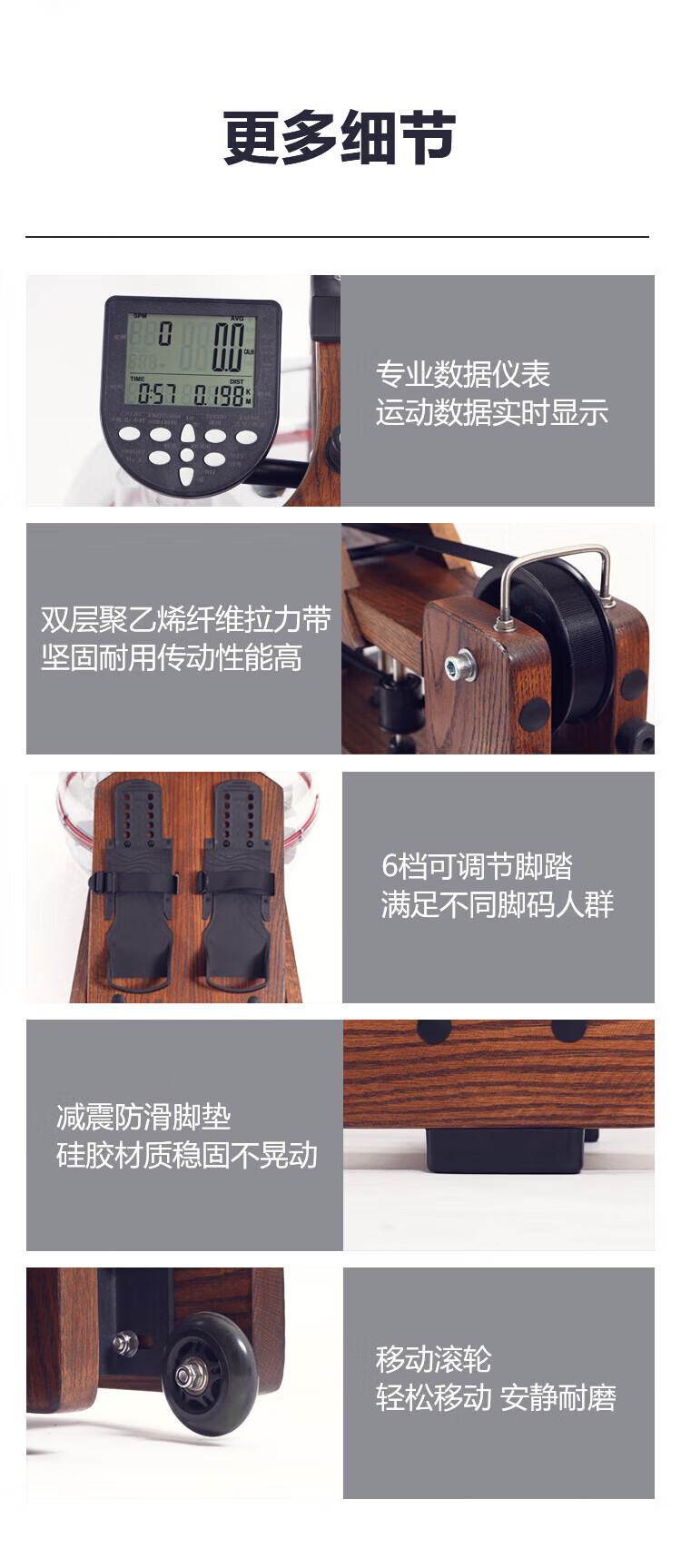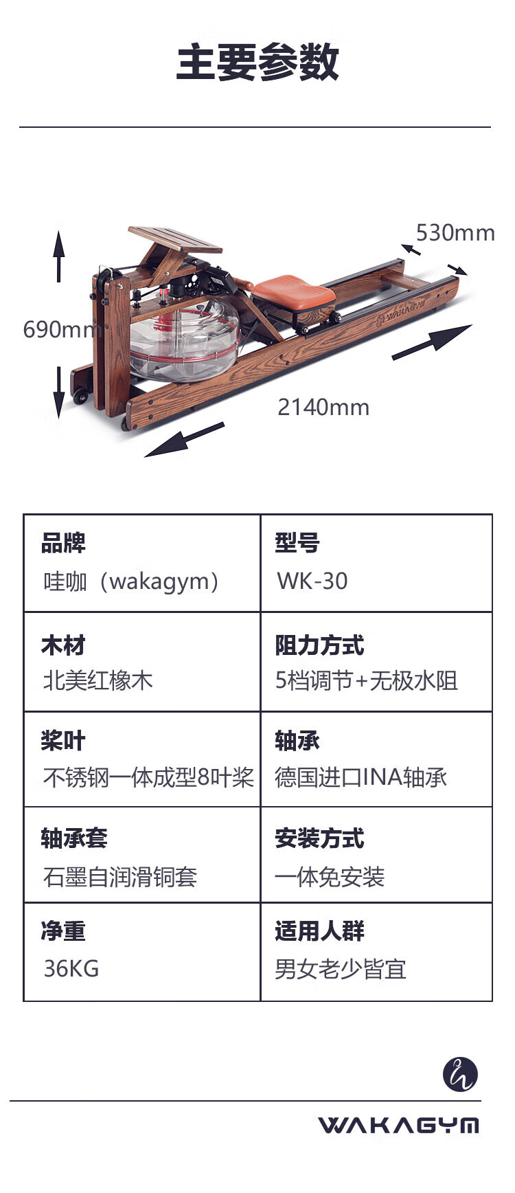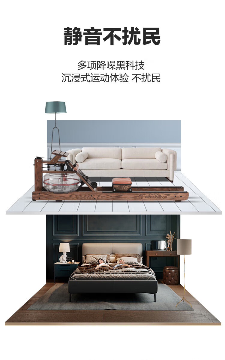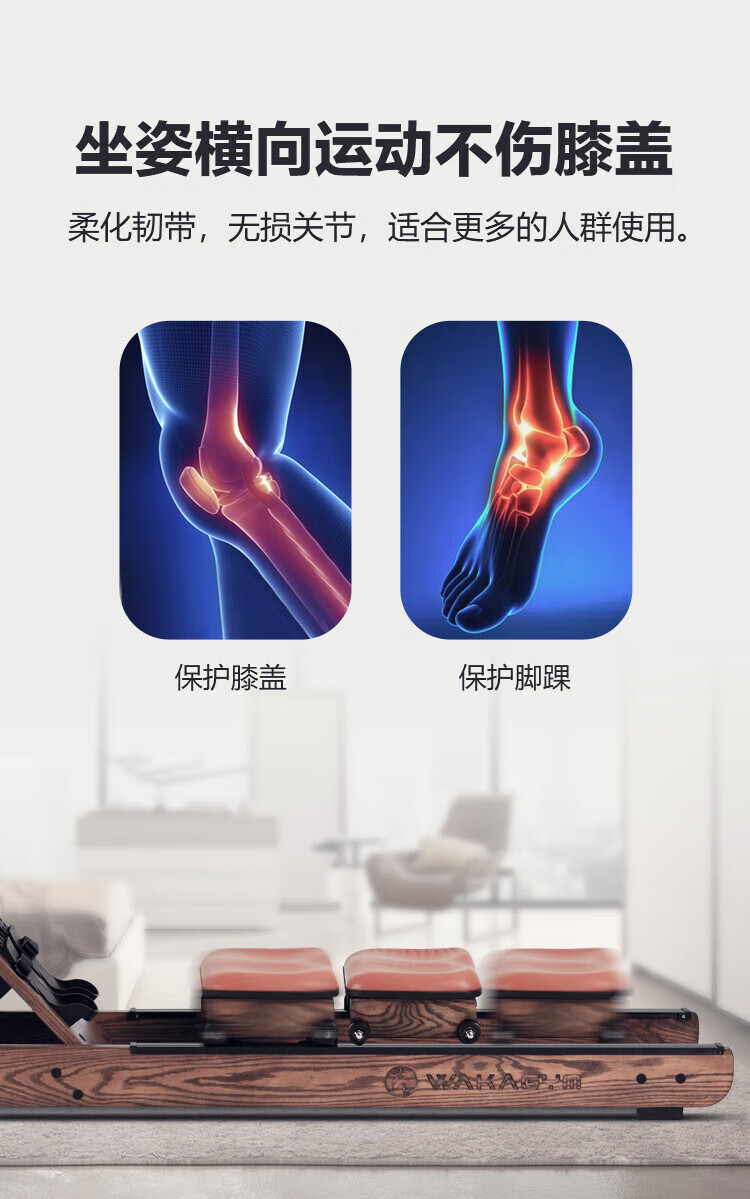 Wakagym patented 5-speed adjustment and noise reduction black technology smart water resistance rowing machine home aerobic fitness equipment house of cards red oak WK-30