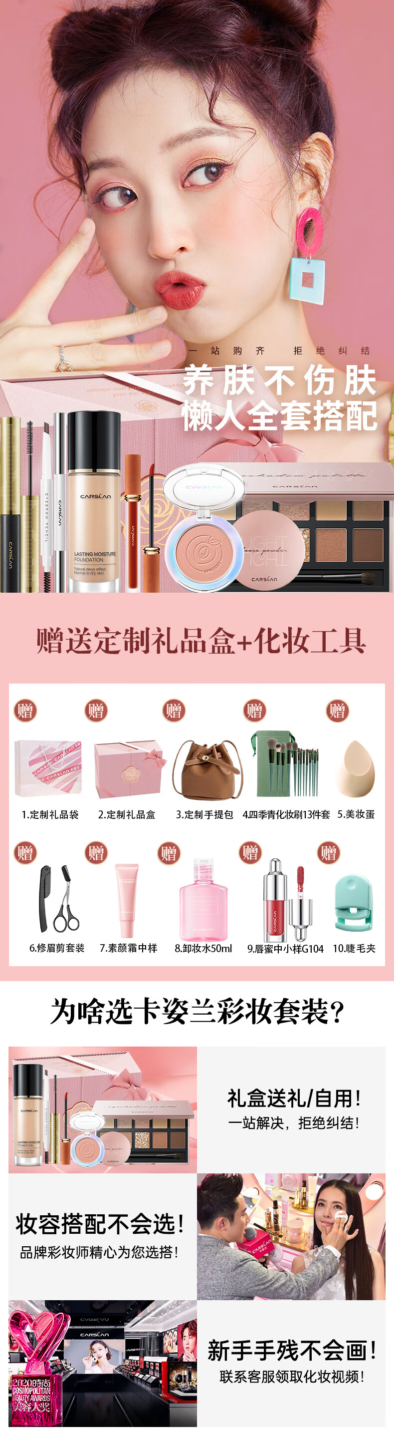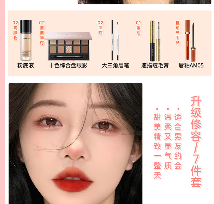 Carslan official flagship makeup set gift box cosmetics set complete set for beginners Chinese Valentine's Day Christmas gift for girlfriend 7-piece upgraded makeup set