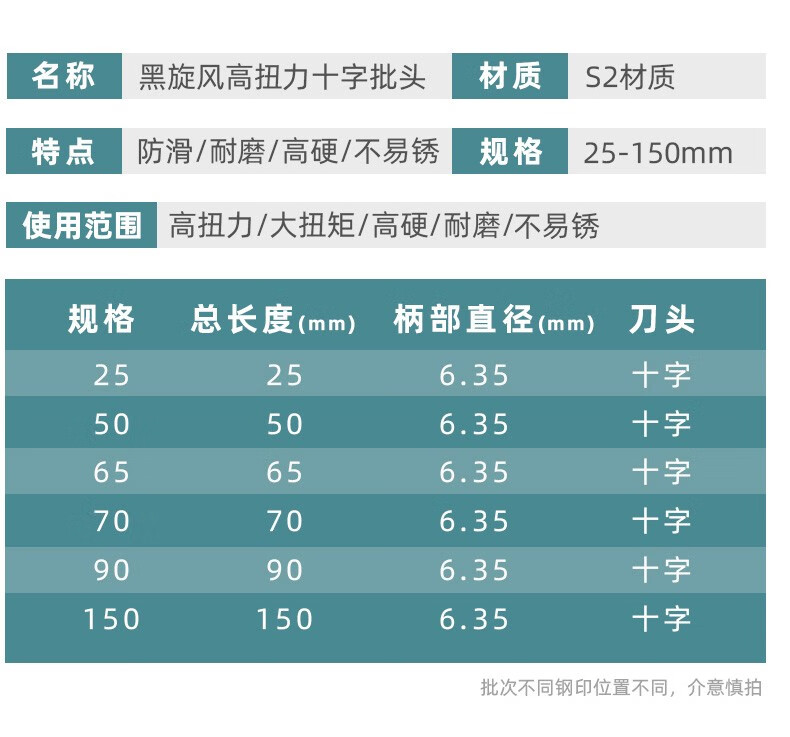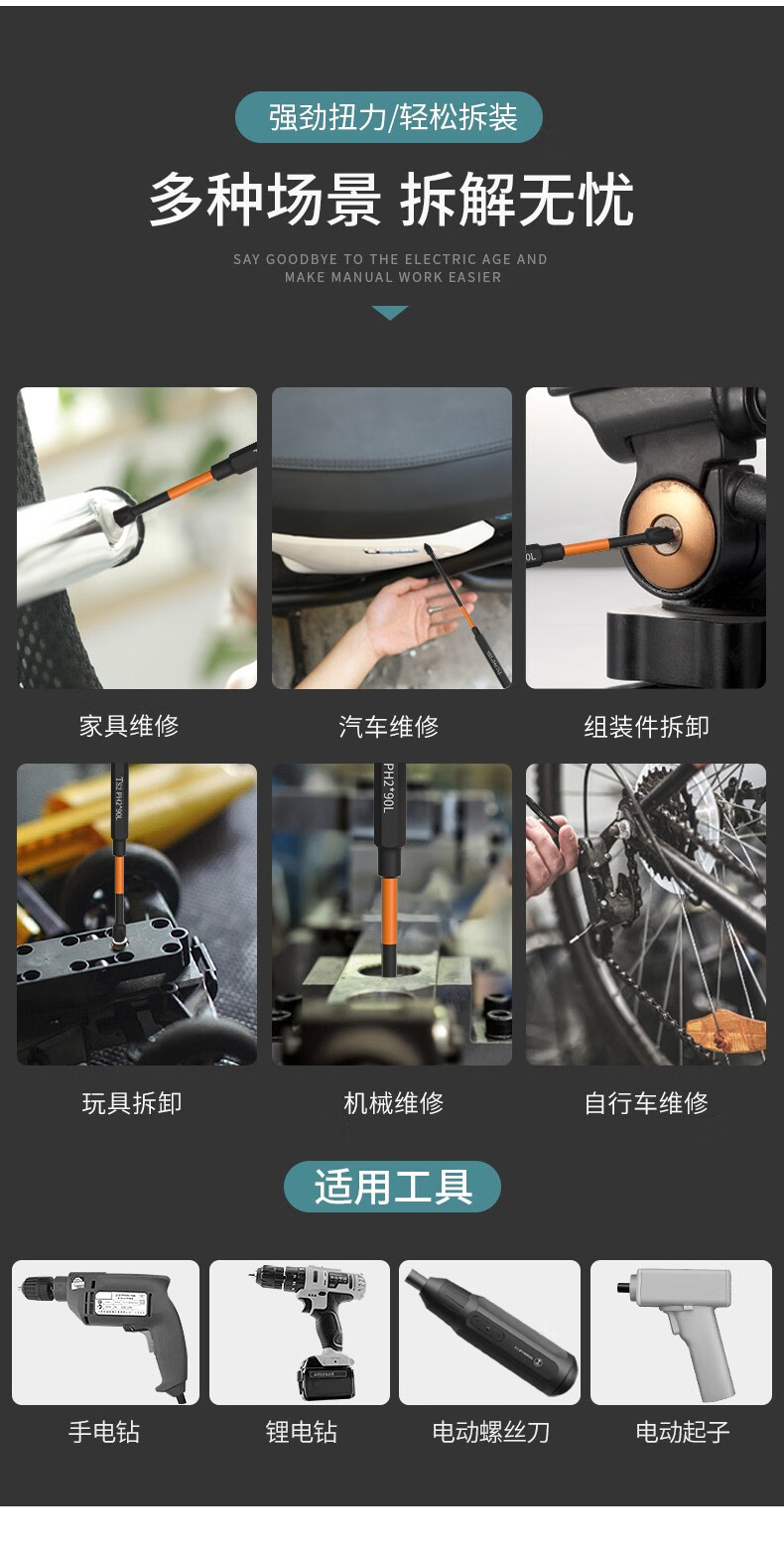 Chengzhou Black Tornado Cross Bit High Hardness Strong Magnetic Industrial Grade Electric Screwdriver Hand Electric Drill Extended Wind Bit Driver Black Tornado 5 pieces 50~150mm