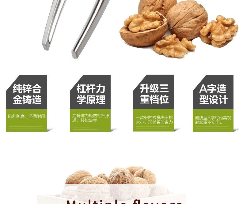Weiqing walnut clip, household pecan peeling tool, multi-functional nut opening, pine nut labor-saving pliers, hazelnut opening tool, zinc alloy 4-mouth clamp - upgraded anti-slip model with walnut needle