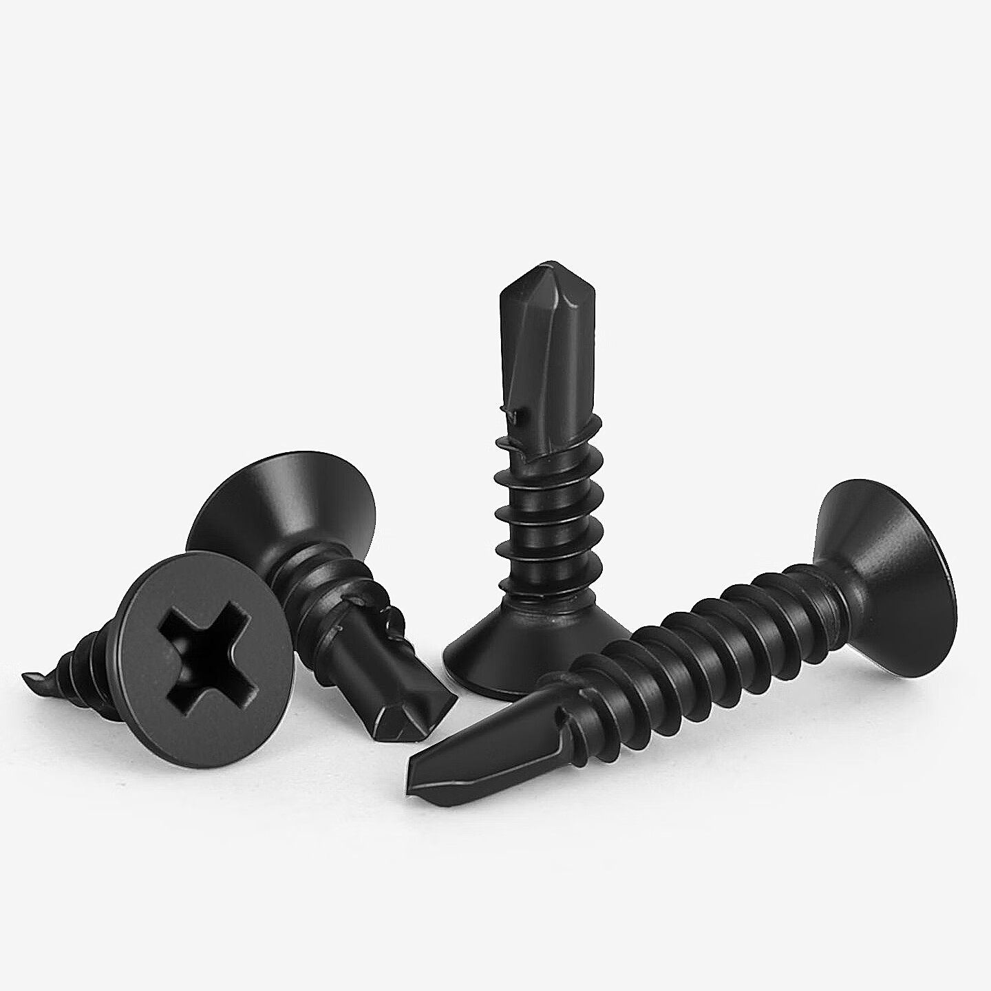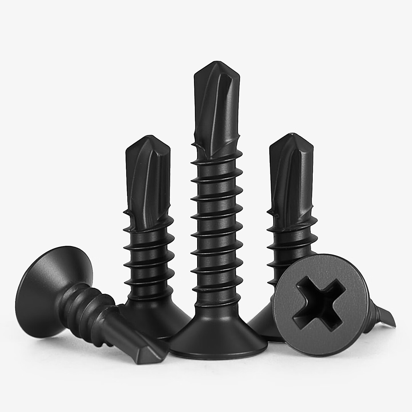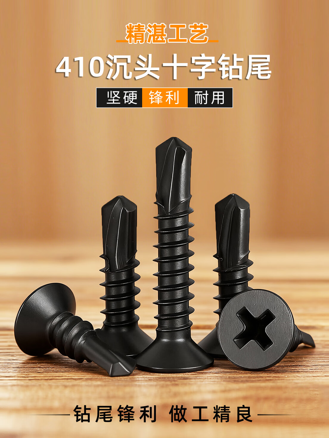 Xuanying black zinc 410 stainless steel cross countersunk head drill tail screws flat head cross self-tapping drill tail iron dovetail screws M4.2*25 (50 pieces)