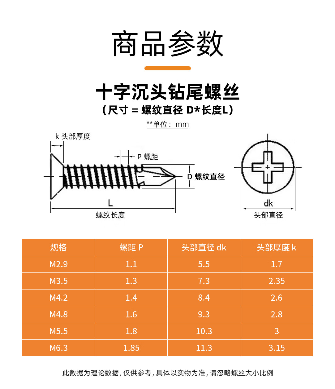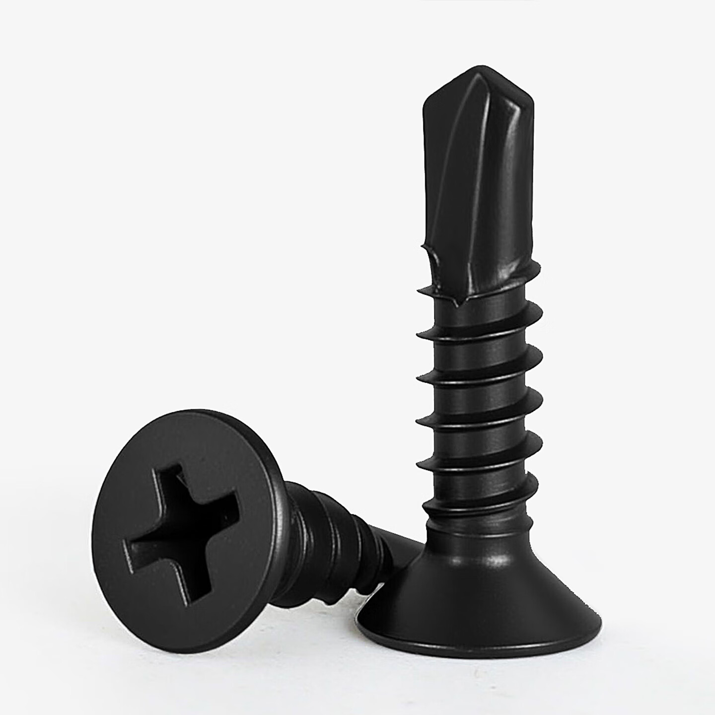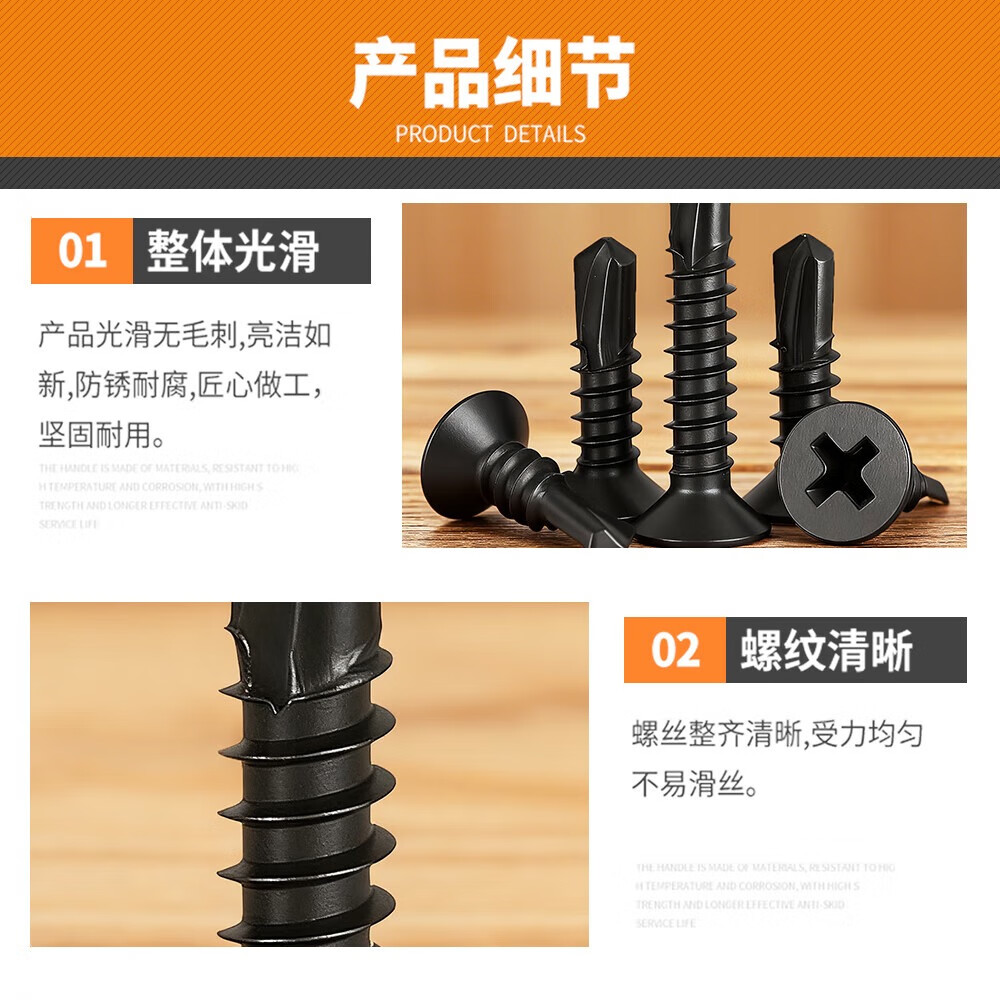 Xuanying black zinc 410 stainless steel cross countersunk head drill tail screws flat head cross self-tapping drill tail iron dovetail screws M4.2*25 (50 pieces)