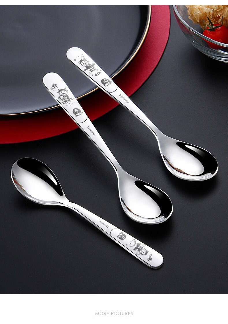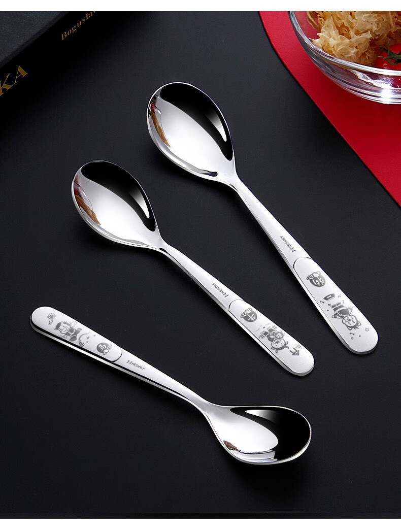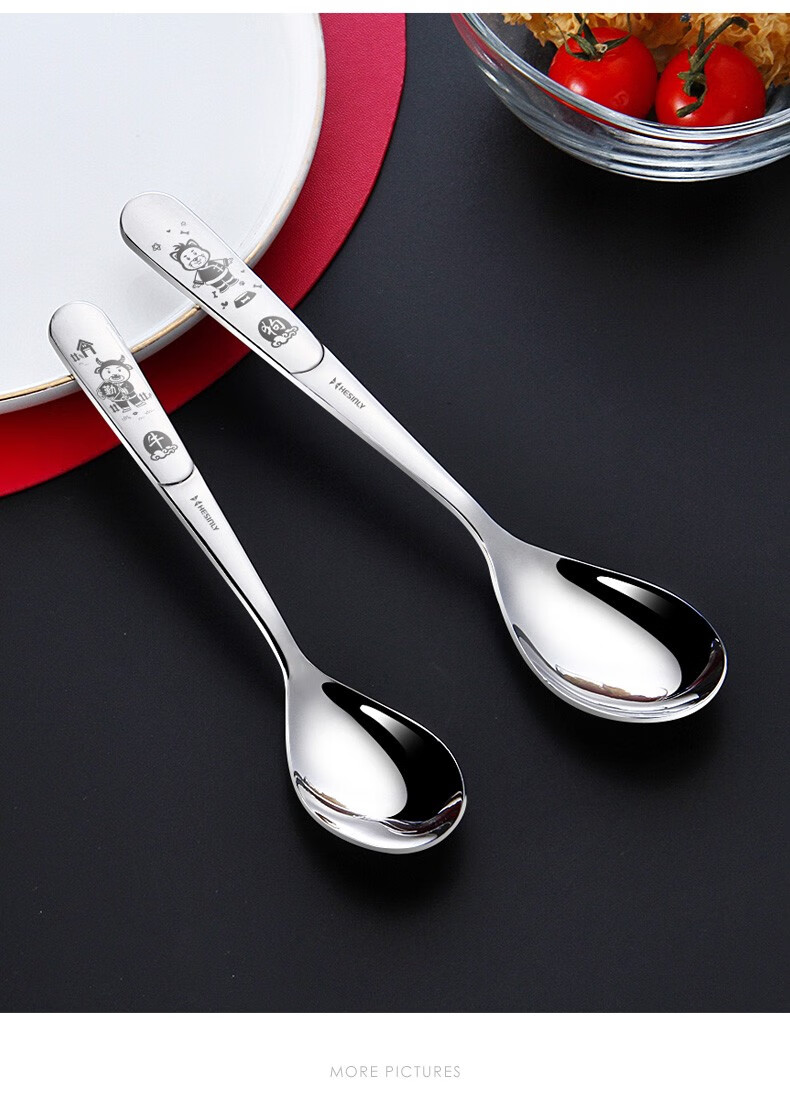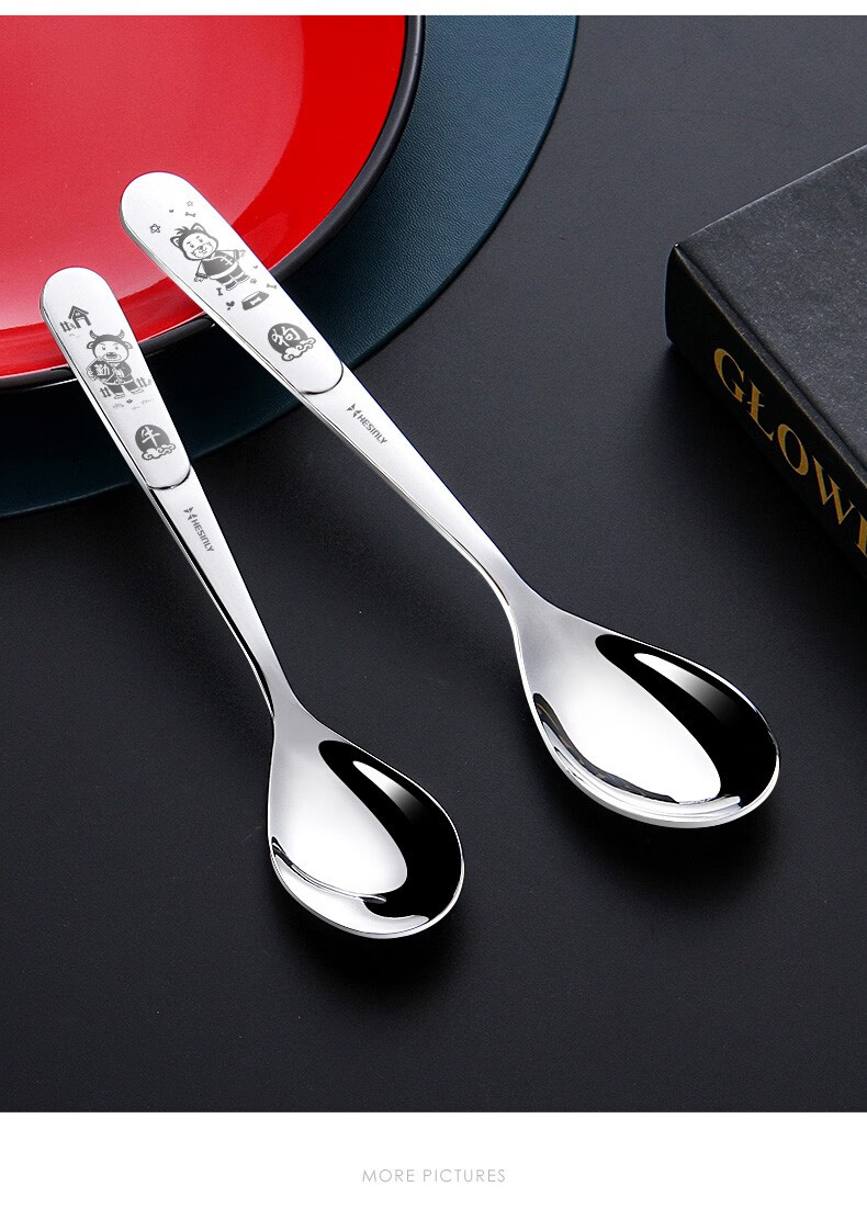 HESInLY 316 stainless steel spoon household children's eating spoon creative cute western food spoon high-looking spoon spoon rat/316L small spoon/1 pack