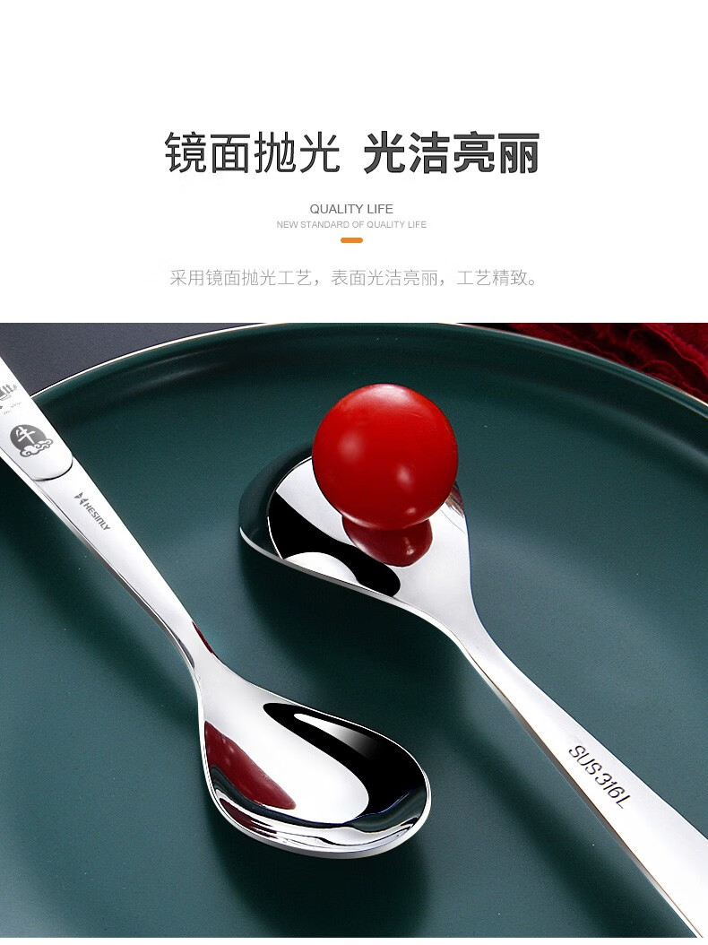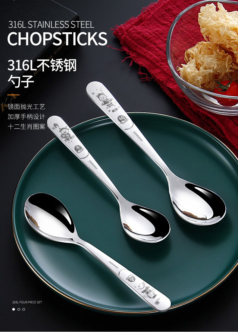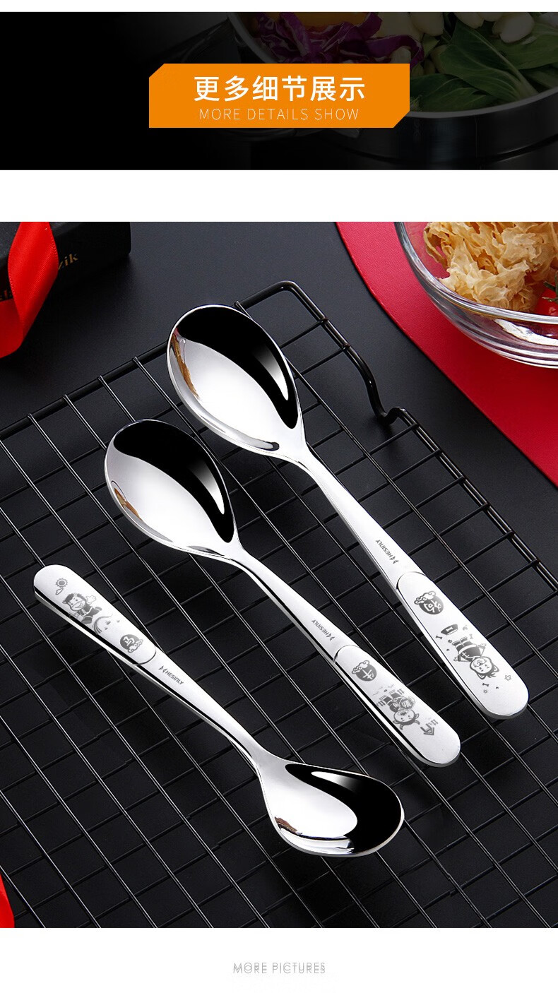 HESInLY 316 stainless steel spoon household children's eating spoon creative cute western food spoon high-looking spoon spoon rat/316L small spoon/1 pack