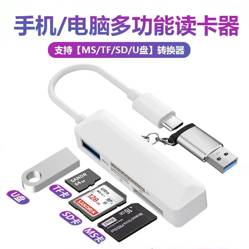 Cosento is suitable for MS card reader SD Huawei mobile phone typec computer all-in-one sony camera ccd memory card memory stick Canon Apple 16 otg connection U disk TF Typec four-in-one (supports SD+MS card+TF+USB)