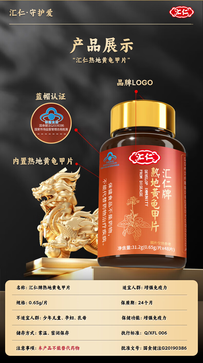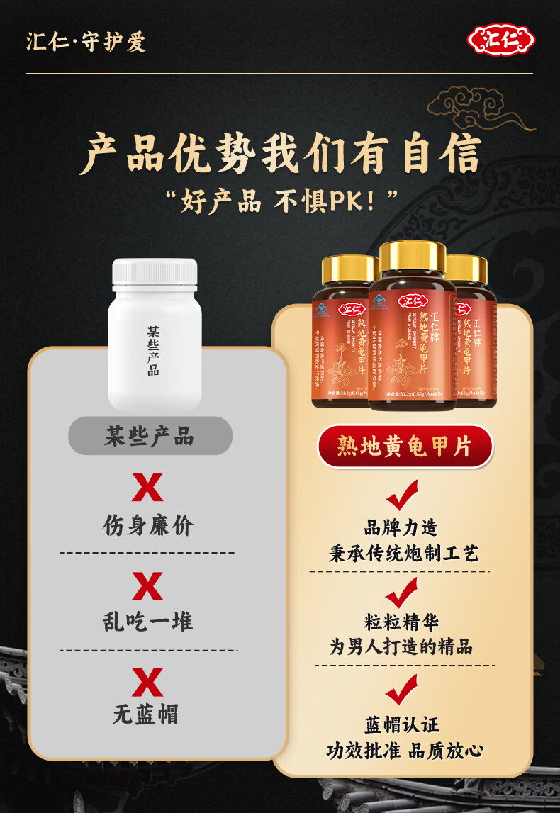Huiren Pharmaceutical's Rehmannia glutinosa tortoise shell tablets are men's health products combined with kidney-tonifying and impotence non-quick-acting men's medicines to help erections last longer. 2 get 1 free & 30 points of feedback can be used with men's small steel cannons that become hard after eating. Can be used with men to enlarge, thicken, increase semen, and strengthen hand pan. Excessive andrological medicines delay time.