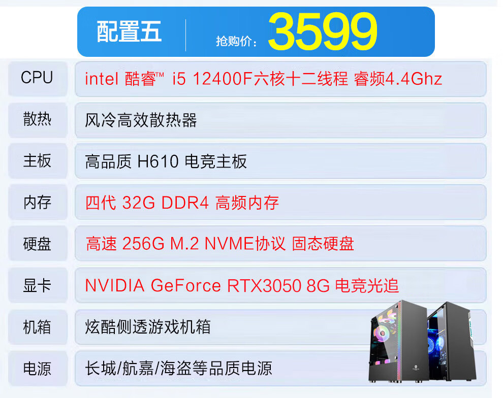 Core i5 12400F/RTX3060 12G live game console design and assembly computer second-hand desktop 12th generation i5 32G RTX3050 8G preferred complete machine 99% new