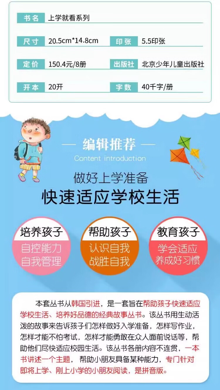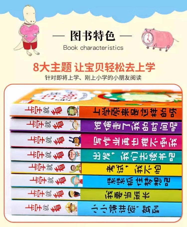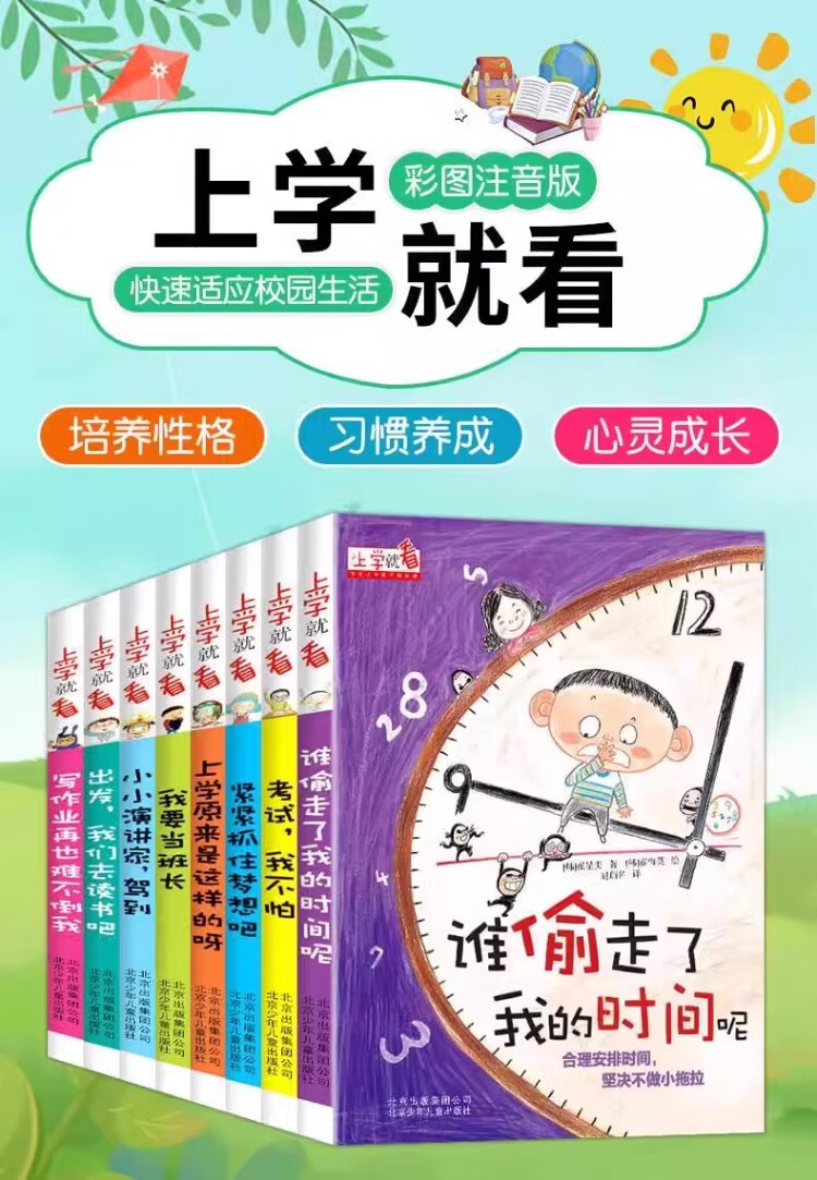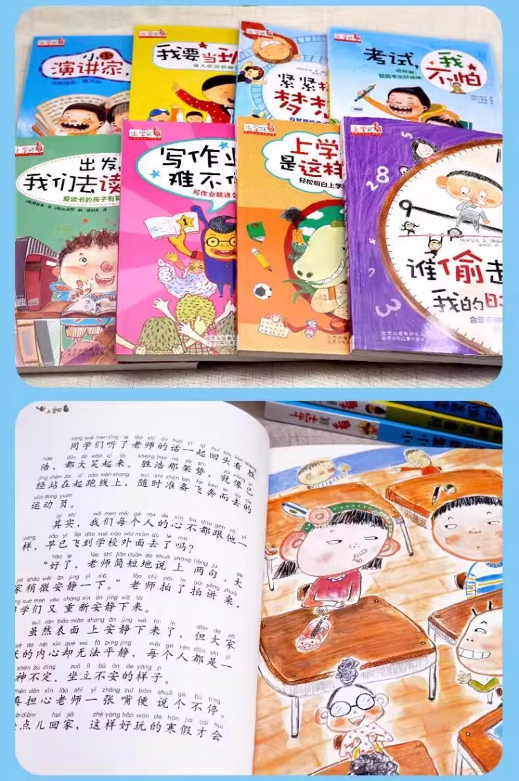 A complete set of 8 volumes in the "Reading in School" series. Children's character development and habit development readers. Beijing Children's Publishing House. A complete set of 8 volumes. "Reading in School" series with color pictures and phonetic version.
