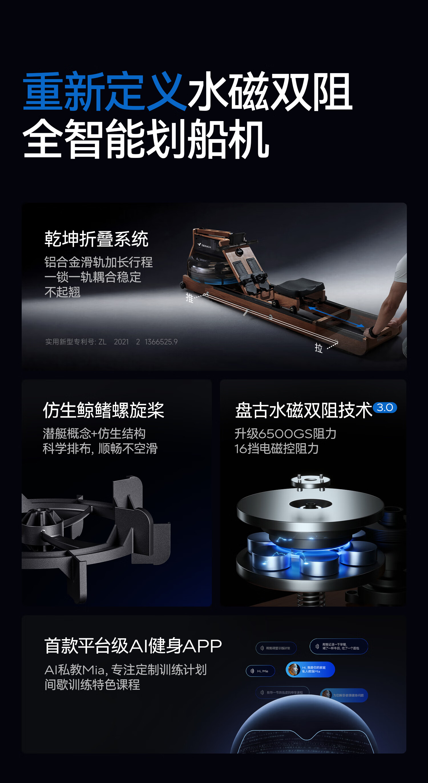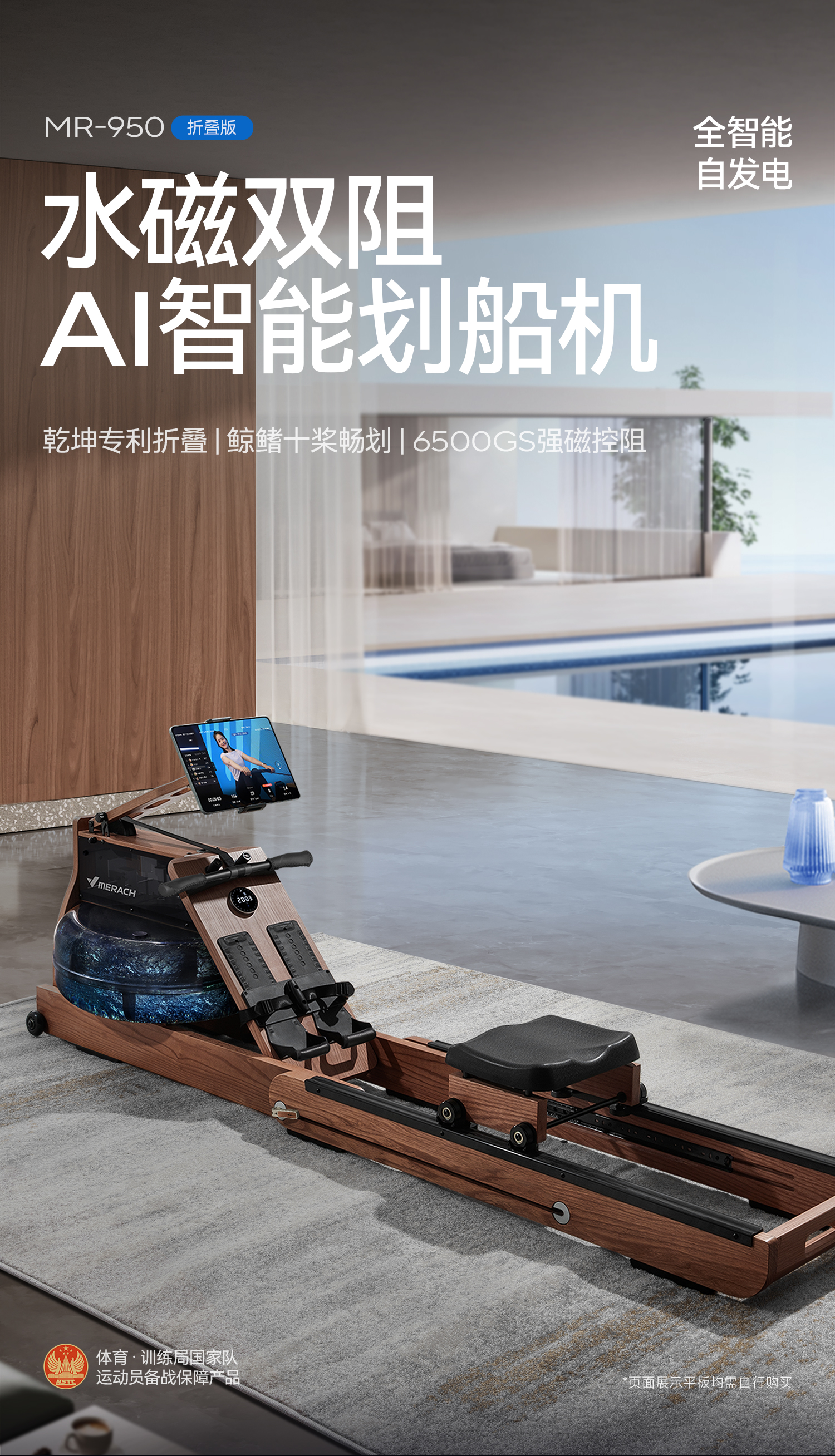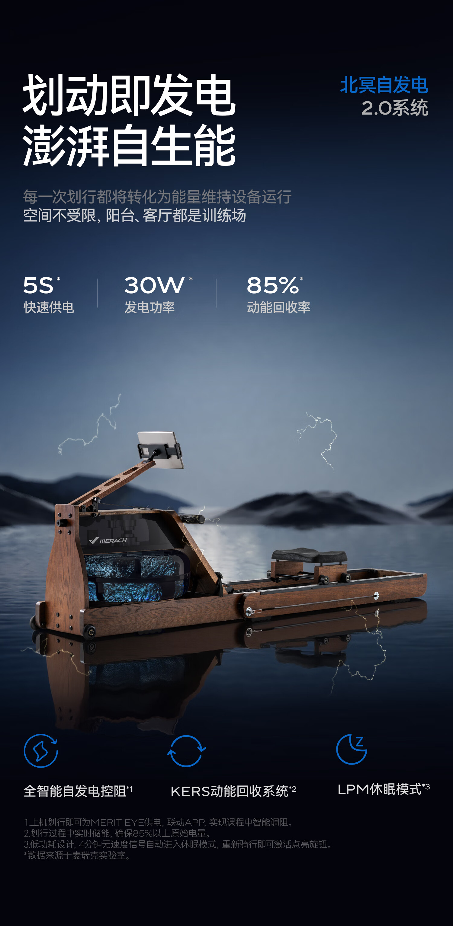 MERACH rowing machine, home self-generating water resistance magnetic control, intelligent adjustment fitness equipment, indoor sports including foldable 950 newly upgraded ten-blade PRO-self-generating-patented folding