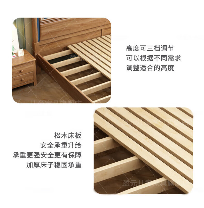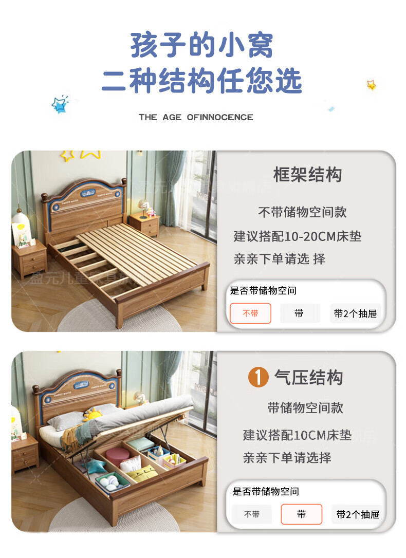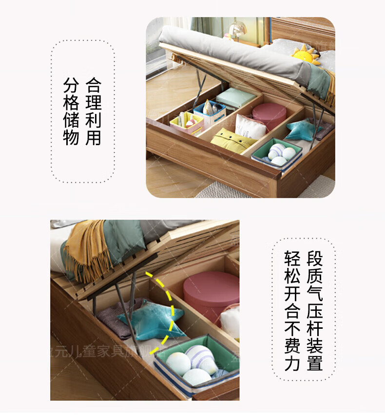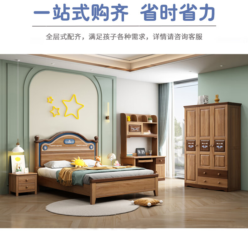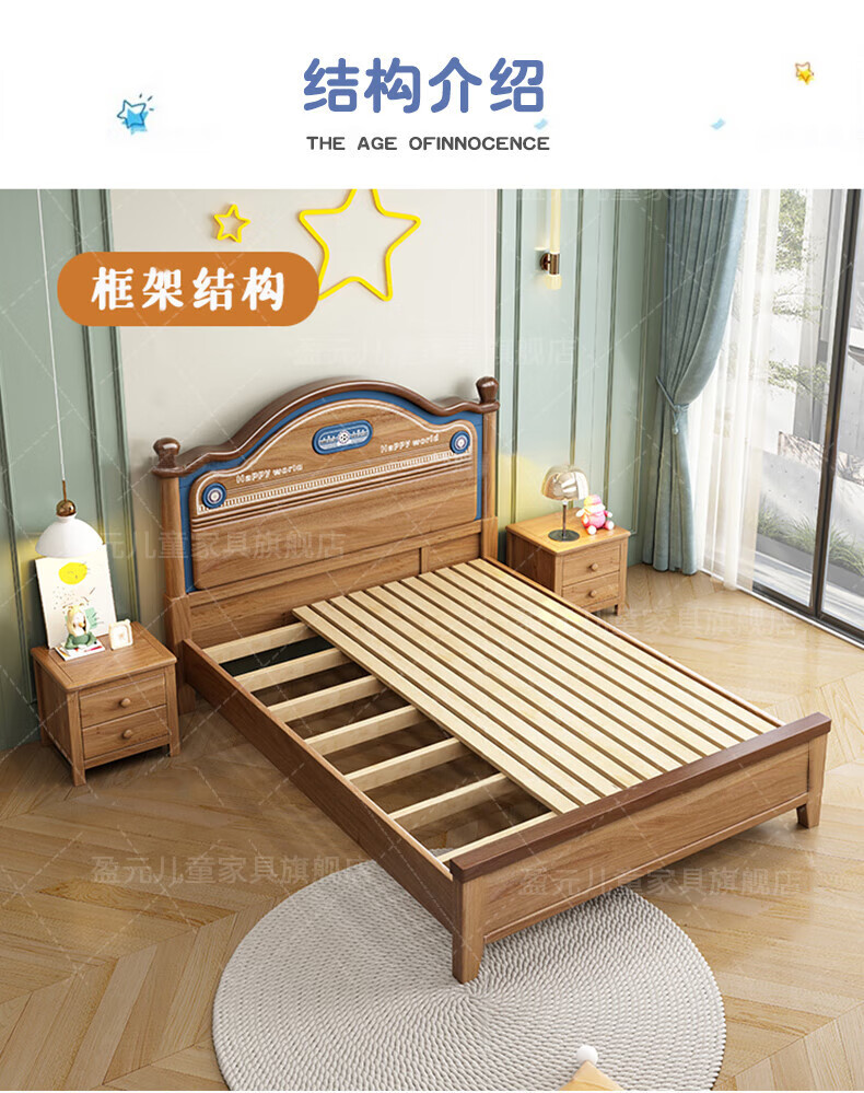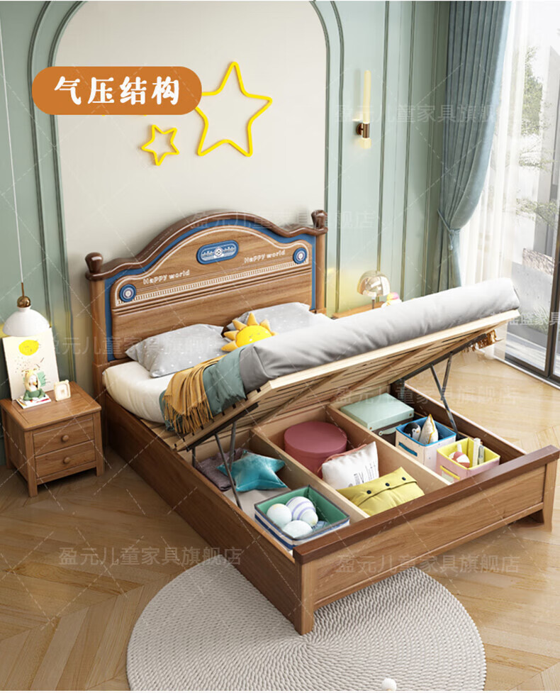 Yingyuan solid wood children's bed boys and girls bedroom bed teen student single bed American gold wire sandalwood storage bed solid wood bed 1500mm*2000mm frame structure