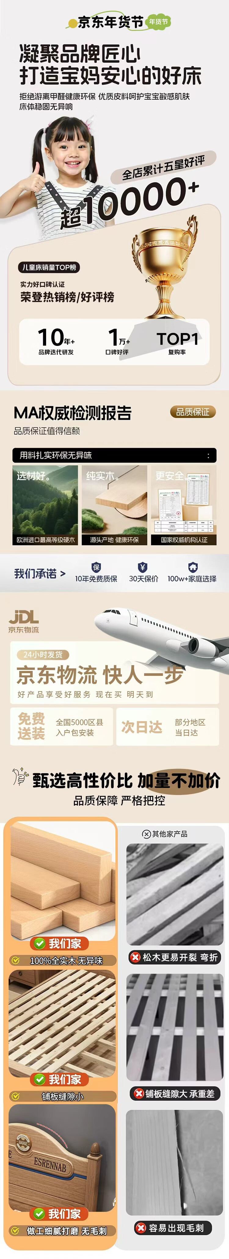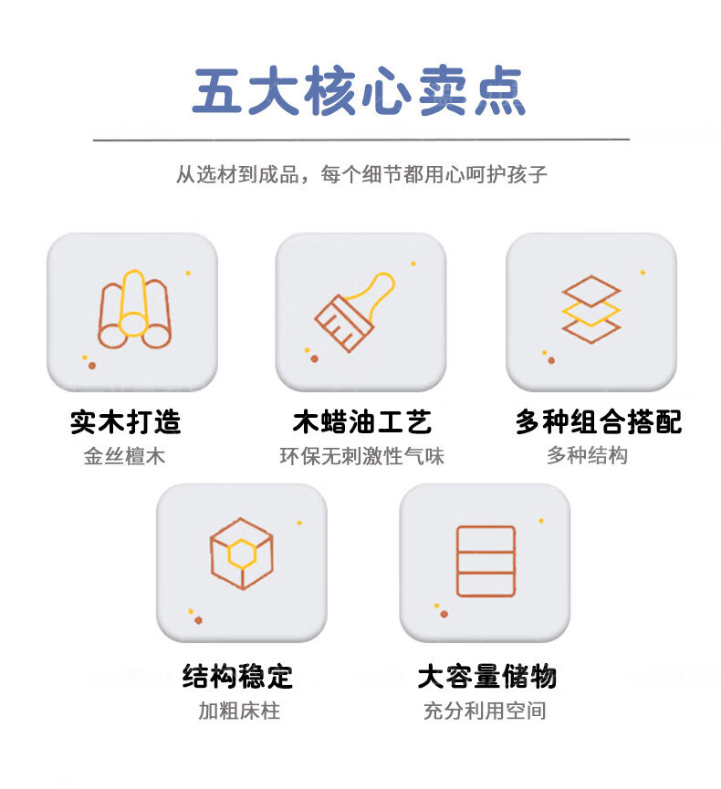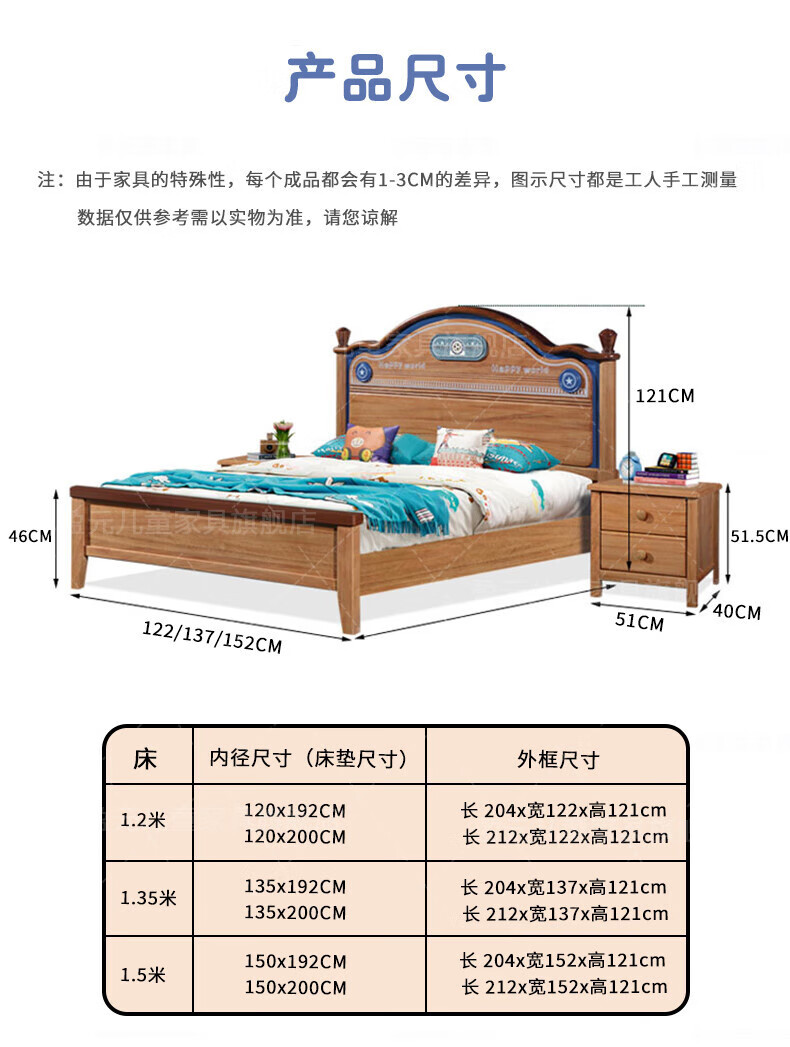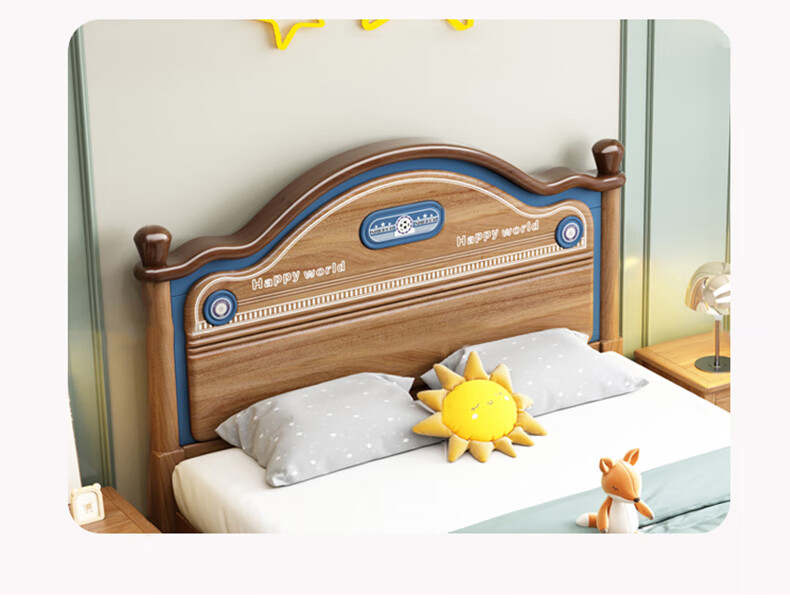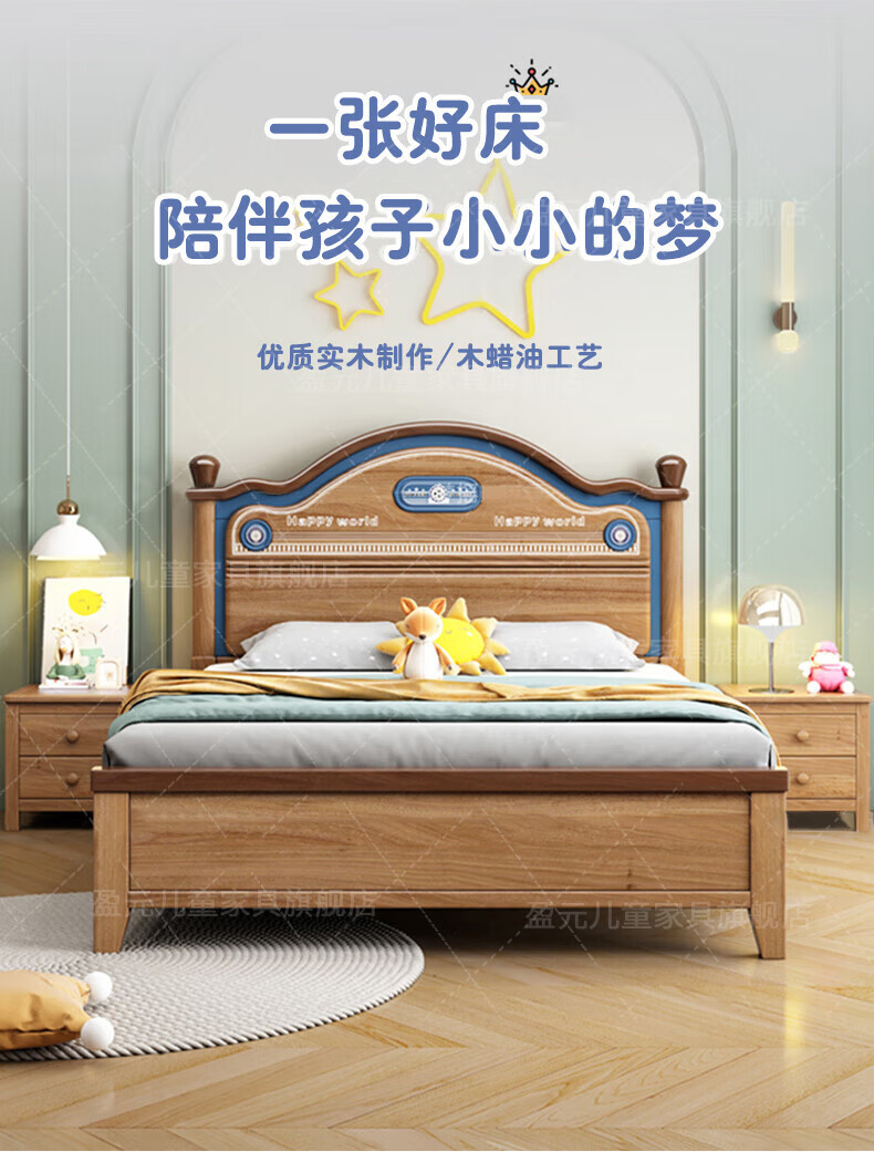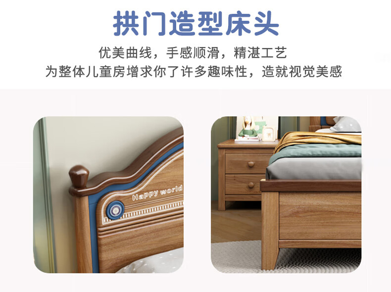 Yingyuan solid wood children's bed boys and girls bedroom bed teen student single bed American gold wire sandalwood storage bed solid wood bed 1500mm*2000mm frame structure