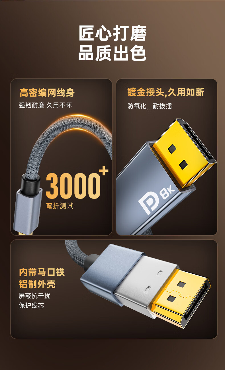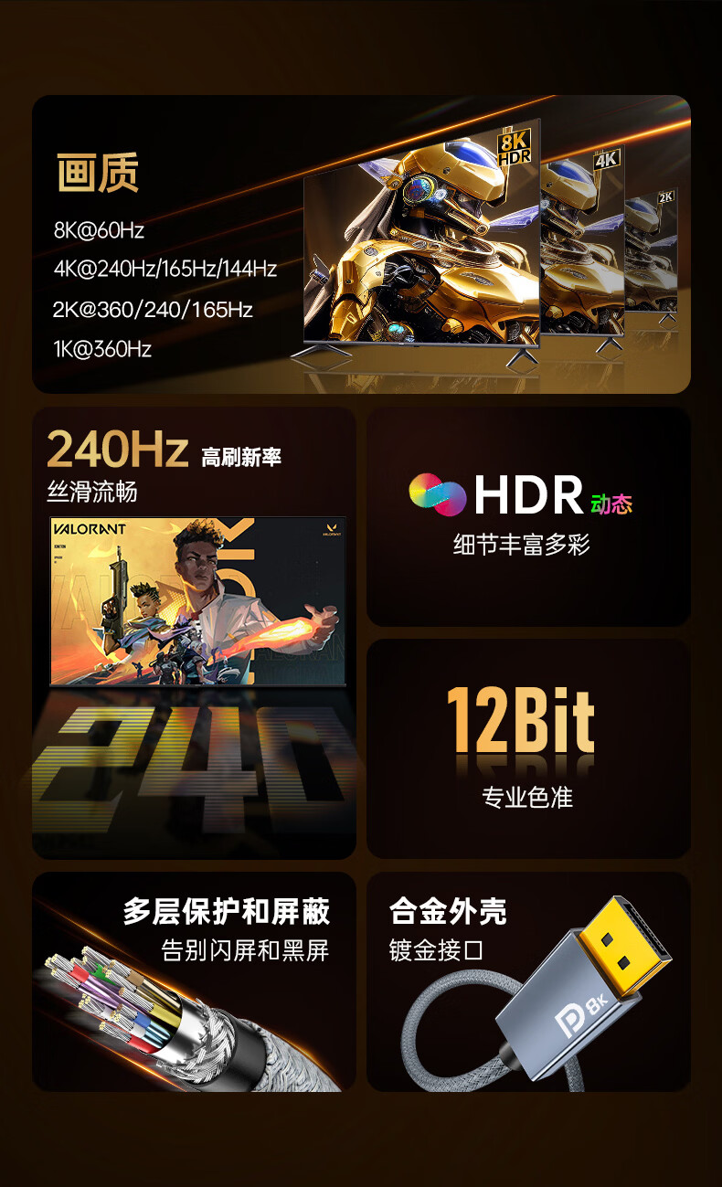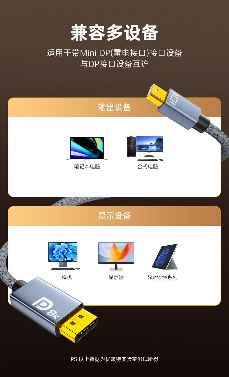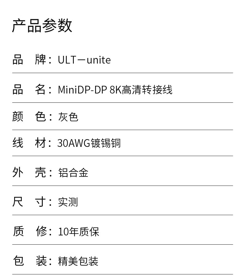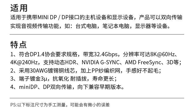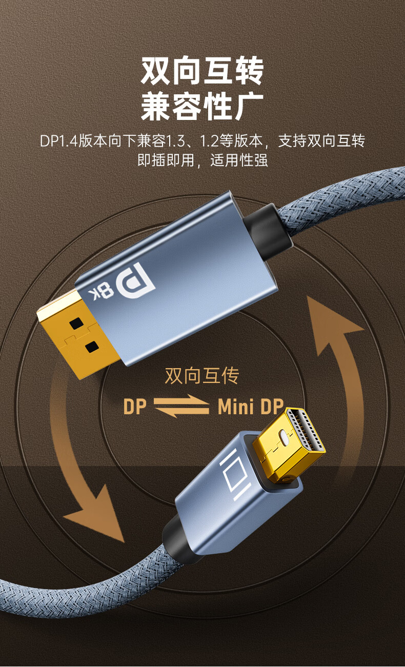 ULT-unite Esports Mini DP to DP Cable Version 1.4 8K60hz Thunderbolt Port Adapter Graphics Card Computer Mini DP Cable 1.5 Meter MiniDP to DP Cable Version 1.4 Interchangeable