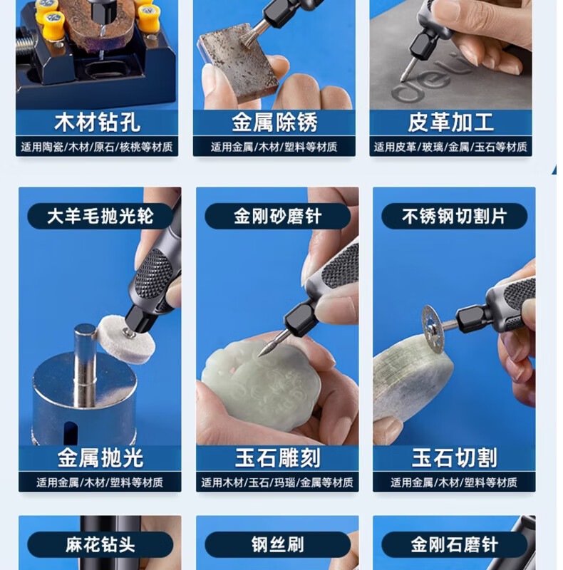 Deli electric grinder small handheld electric grinder polishing artifact jade wood carving pen tool mini electric drill with base 4 speed adjustment plus 31 pieces DL-DM03-S2