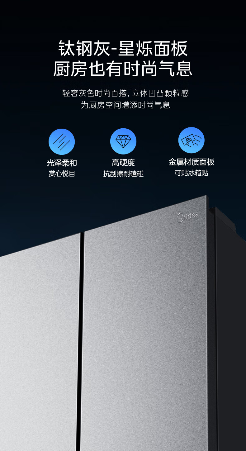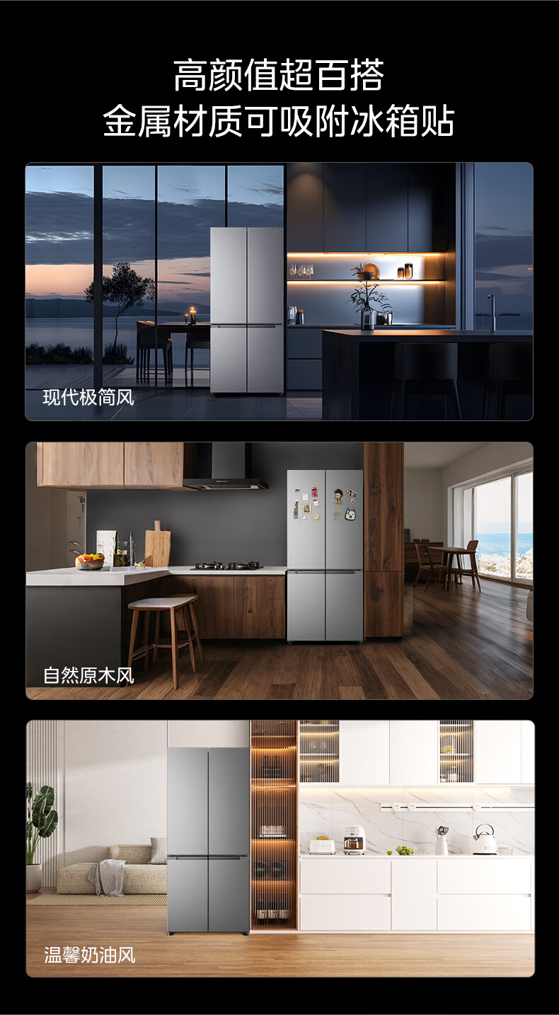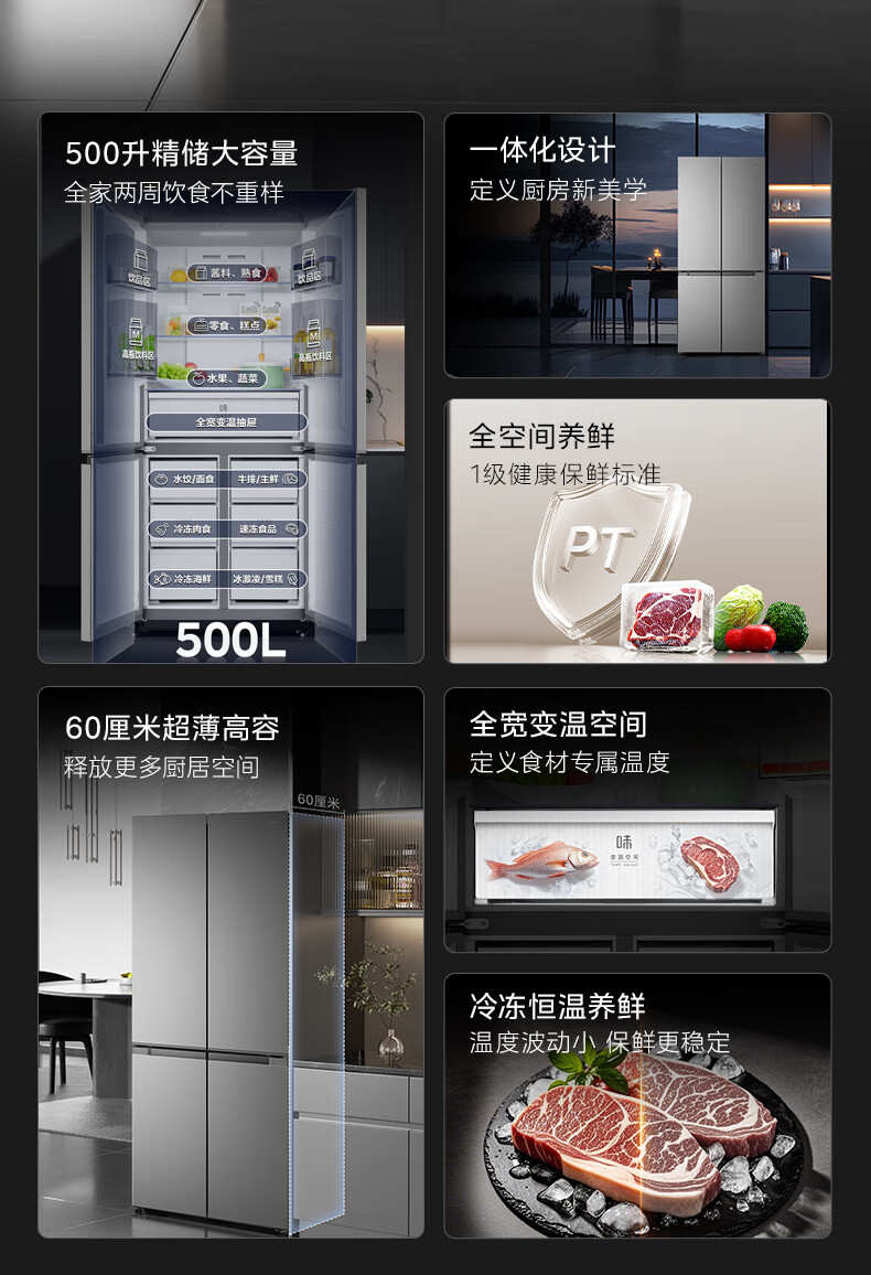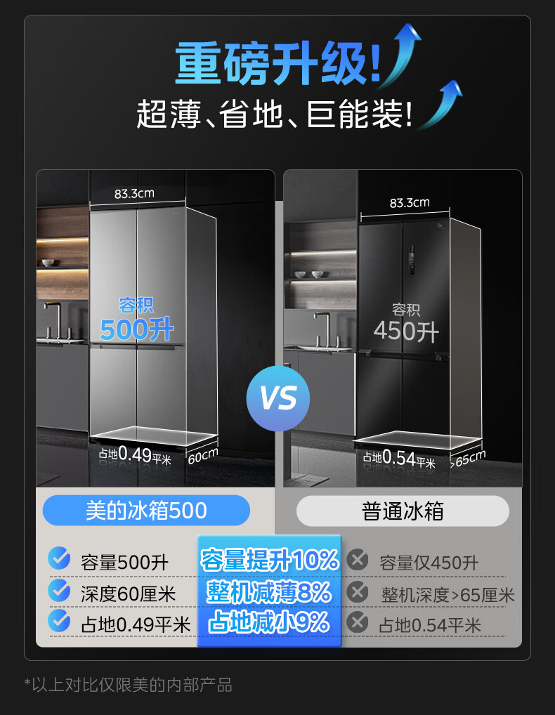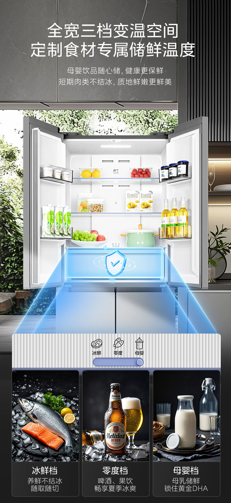 Midea 60cm ultra-thin 500-liter cross-shaped four-door ion odor-purifying and fresh-keeping first-level variable frequency air-cooled frost-free smart home large-capacity refrigerator with national subsidy of 480 upgraded model BCD-500WSPM(E)