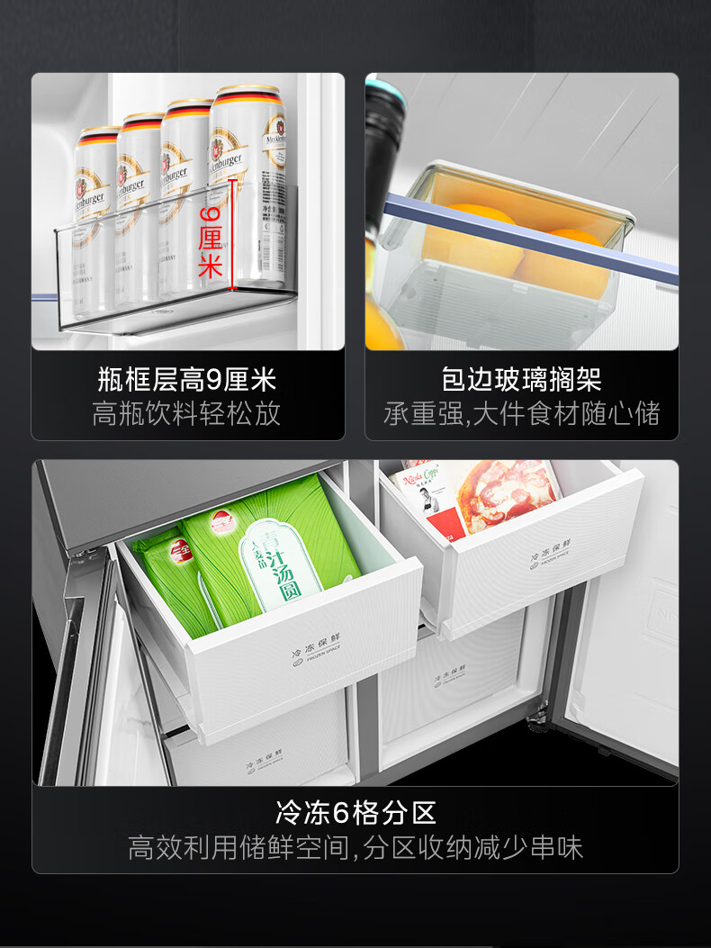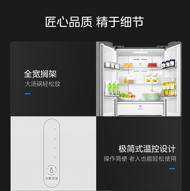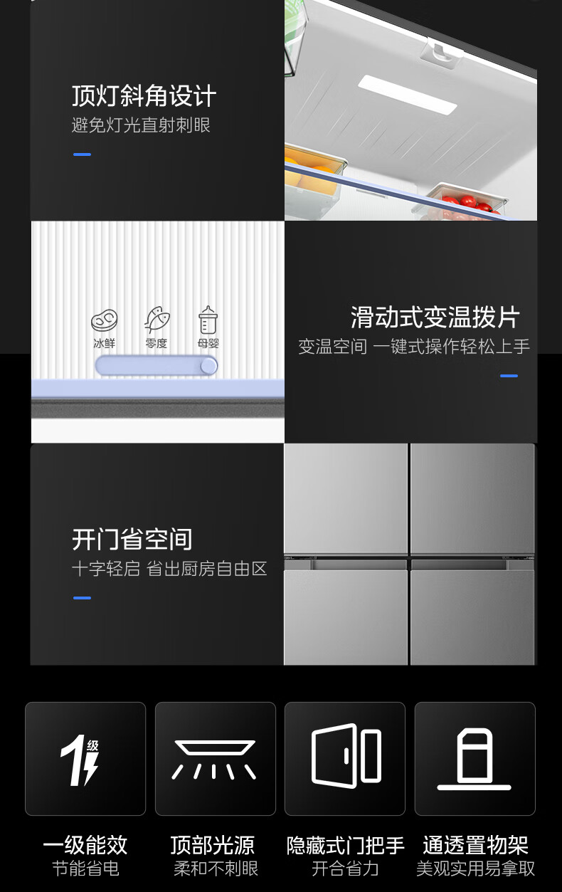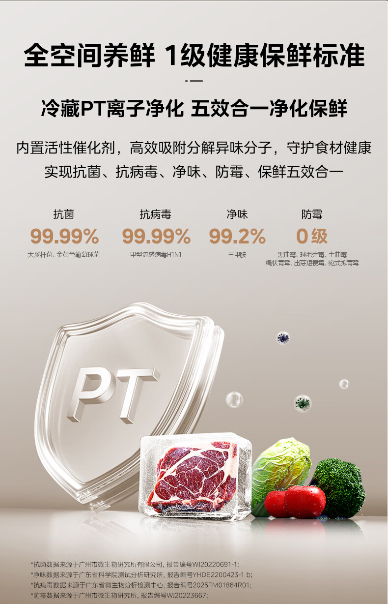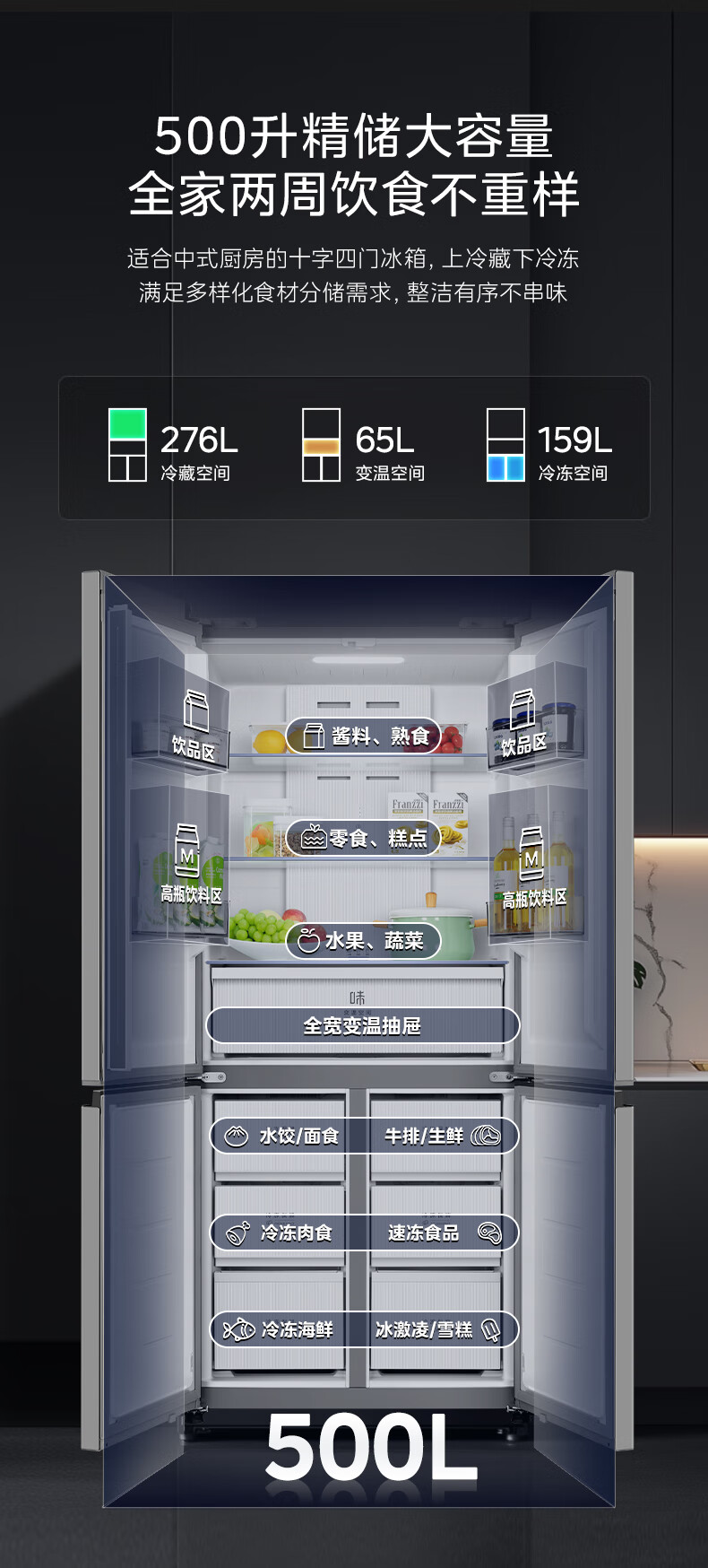 Midea 60cm ultra-thin 500-liter cross-shaped four-door ion odor-purifying and fresh-keeping first-level variable frequency air-cooled frost-free smart home large-capacity refrigerator with national subsidy of 480 upgraded model BCD-500WSPM(E)