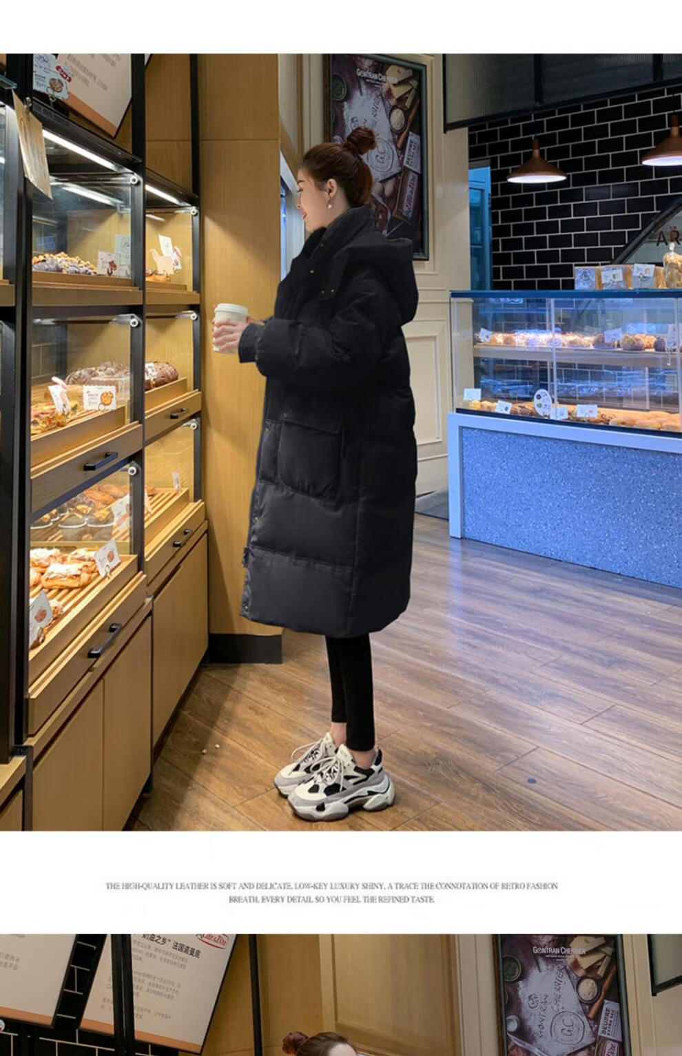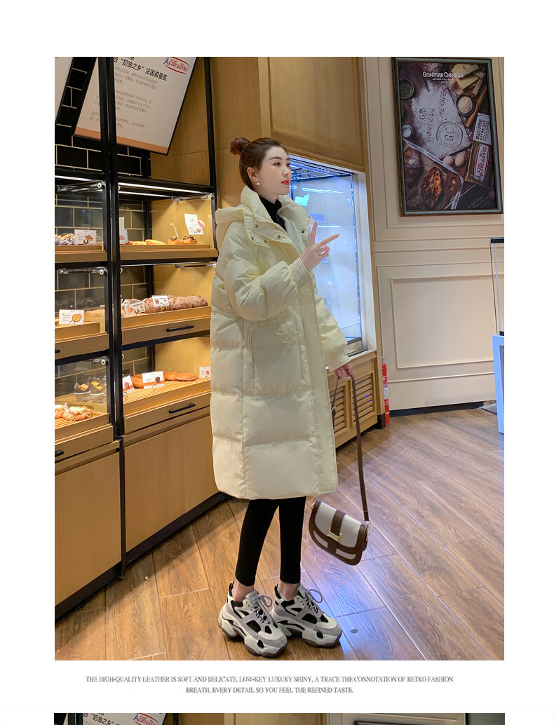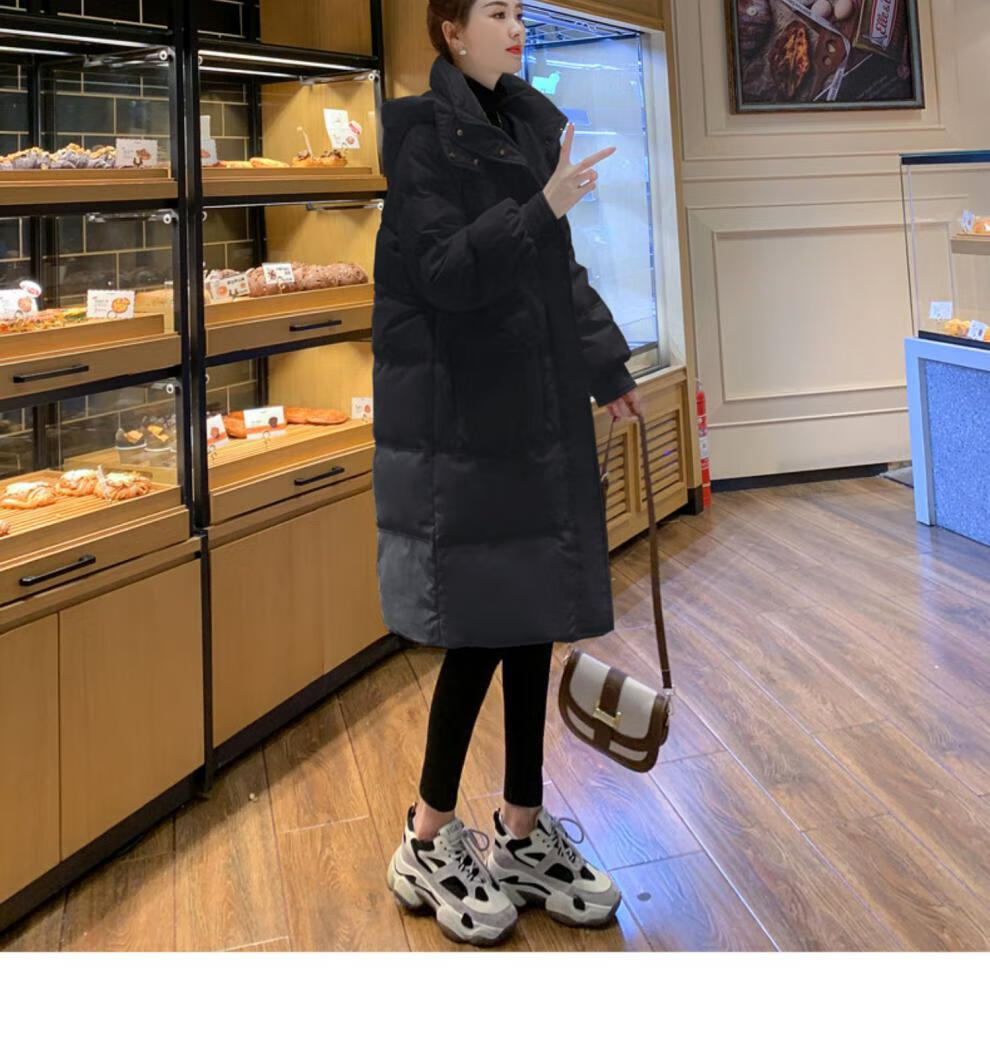 Aosijie high-end brand down jacket women's mid-length 2025 winter new style loose thickened white duck down little man jacket black M 110-130 catties
