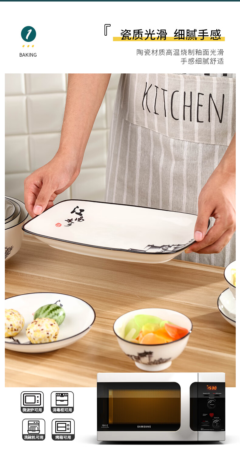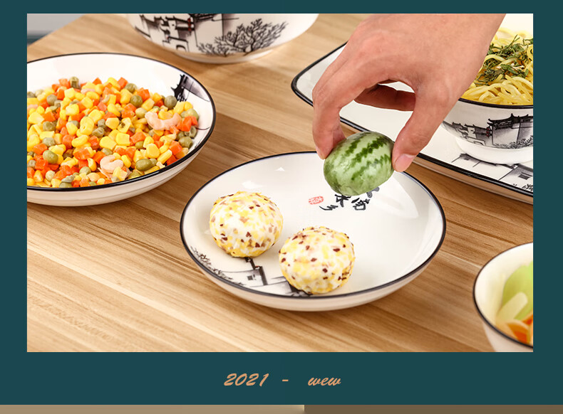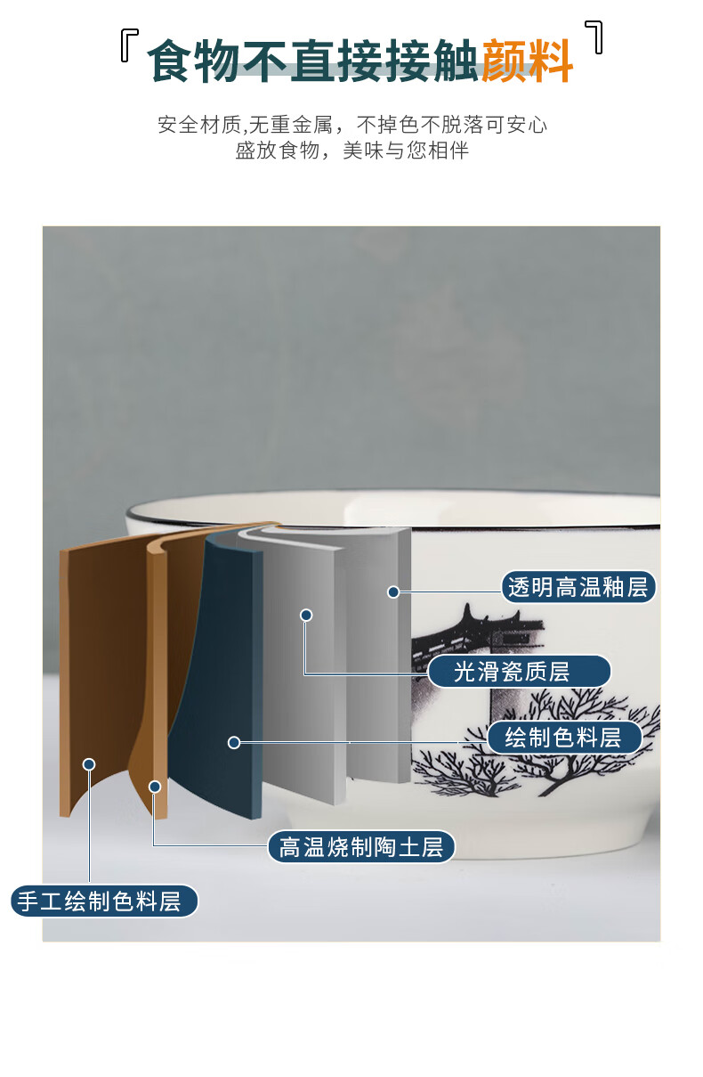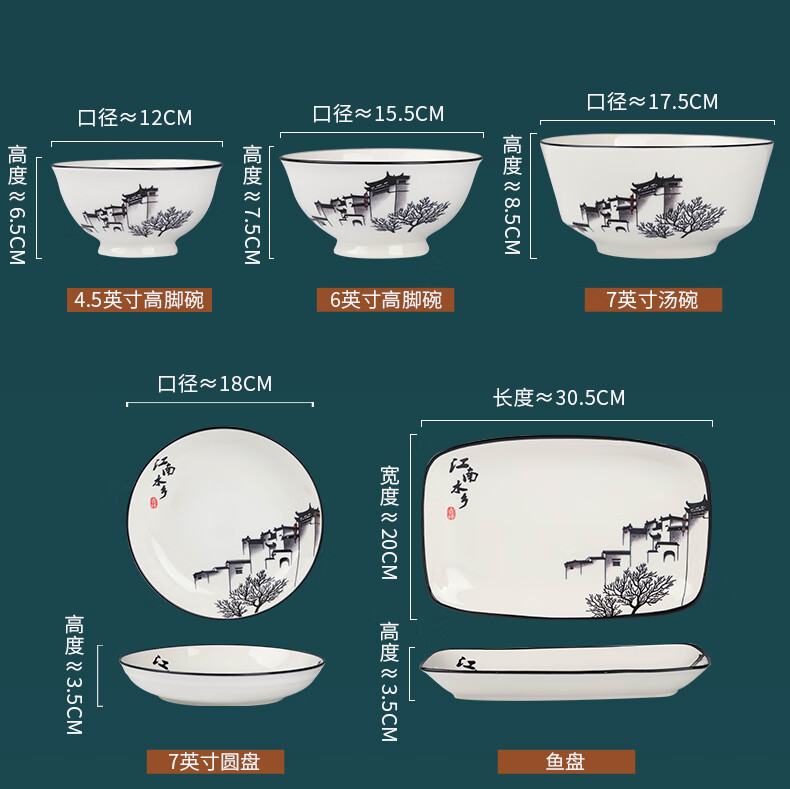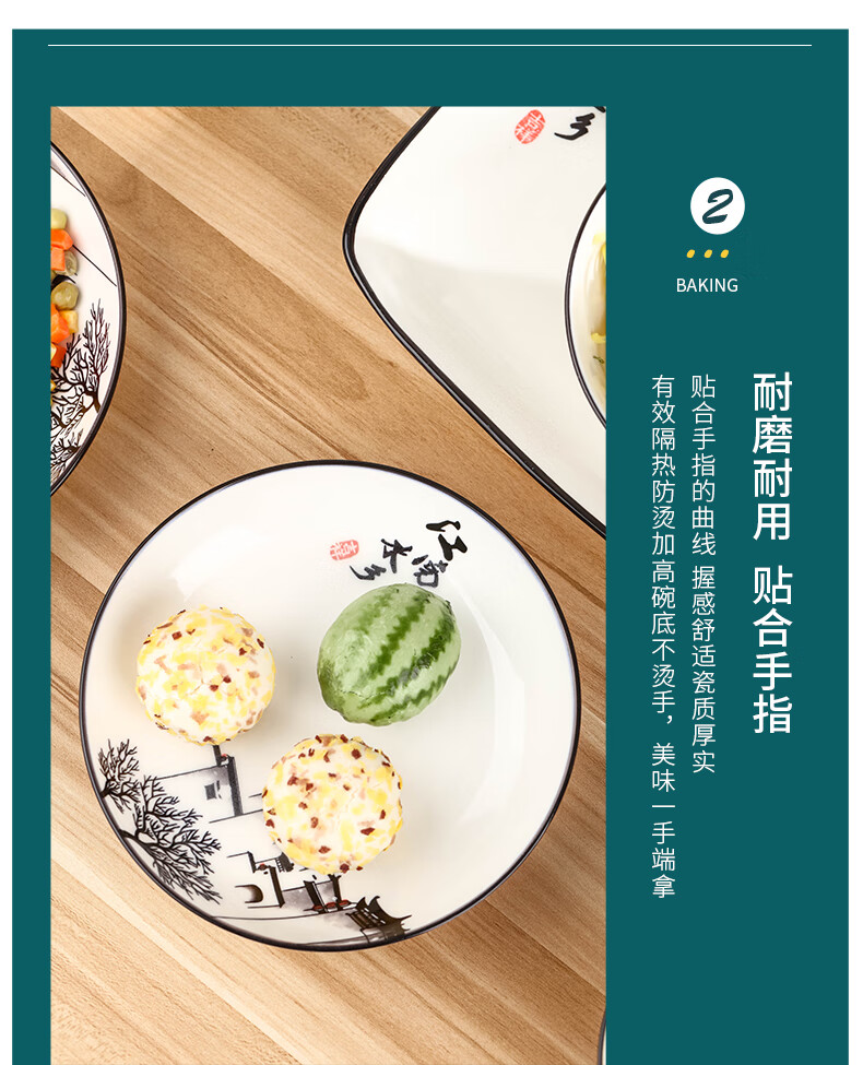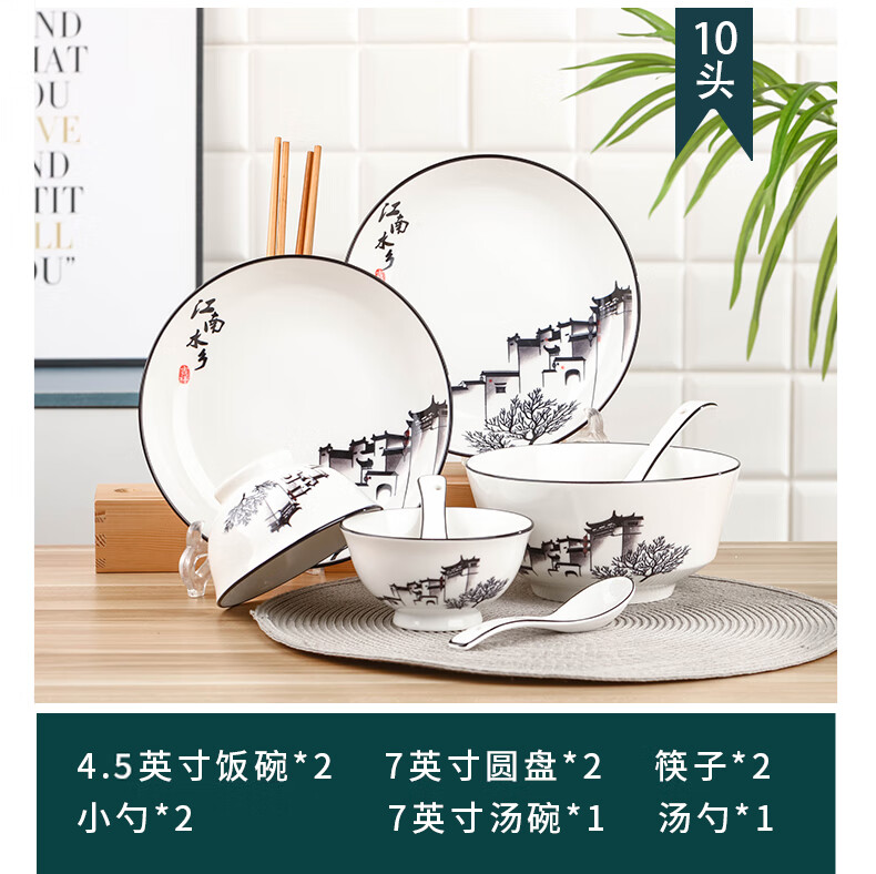 Fengfeisha 2-6 people bowl and dish set Chinese style household ceramic new bowl plate noodle bowl soup bowl couple bowl and chopsticks combination tableware Jiangnan Water Town 27 heads with soup bowl