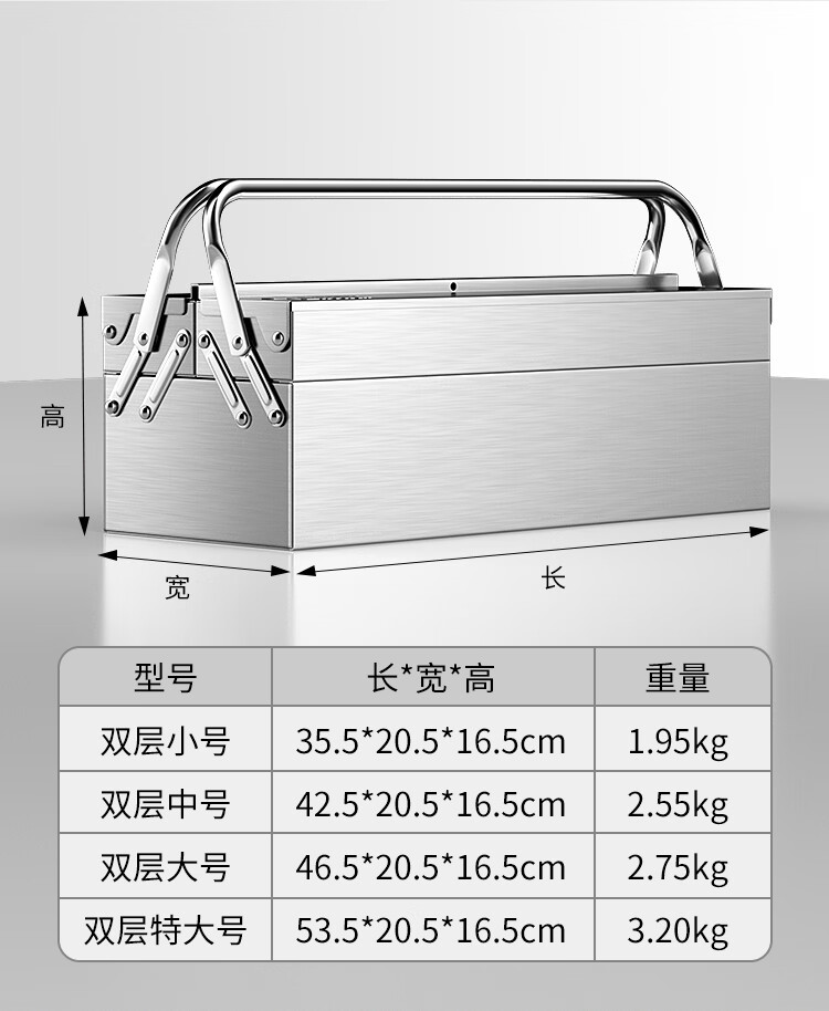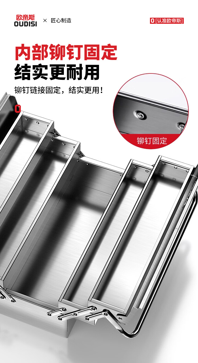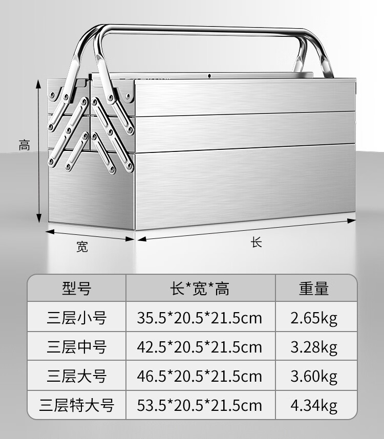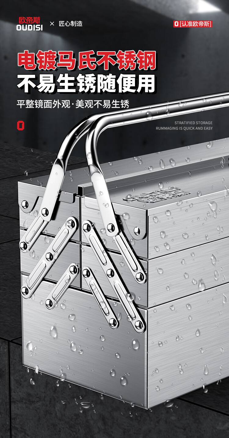 Otis stainless steel tool box full set household hardware tool box storage box three-layer folding repair electrician parts box double layer standard stainless steel folding dump box