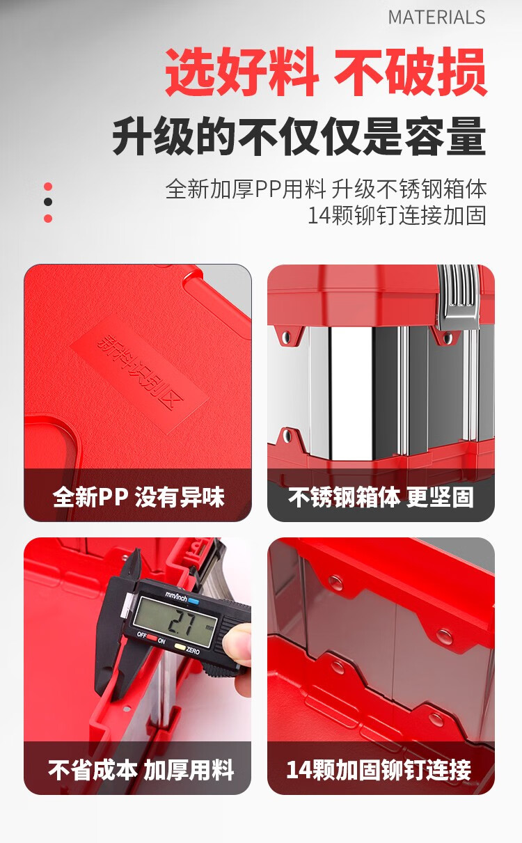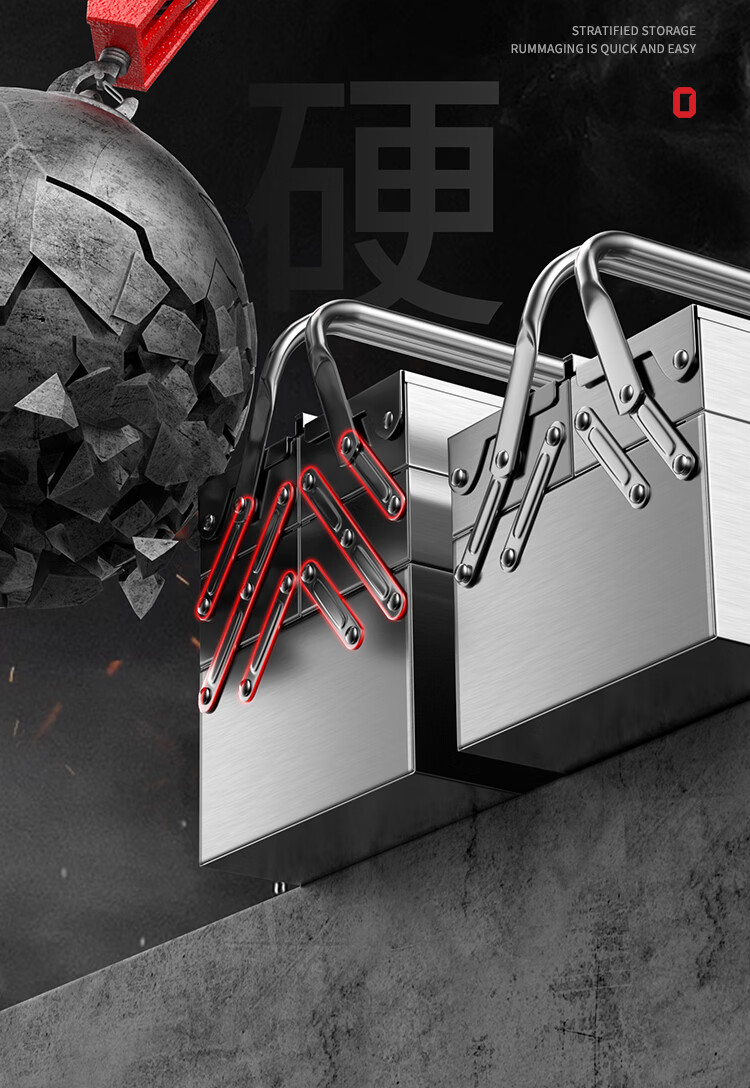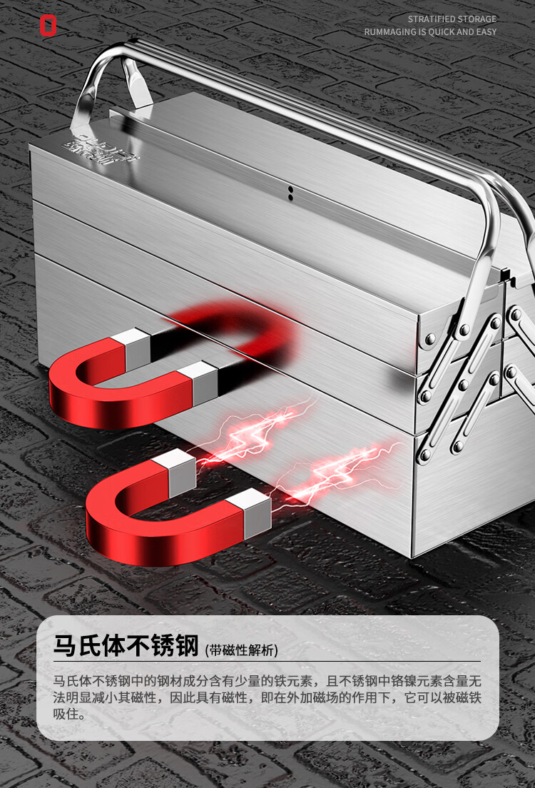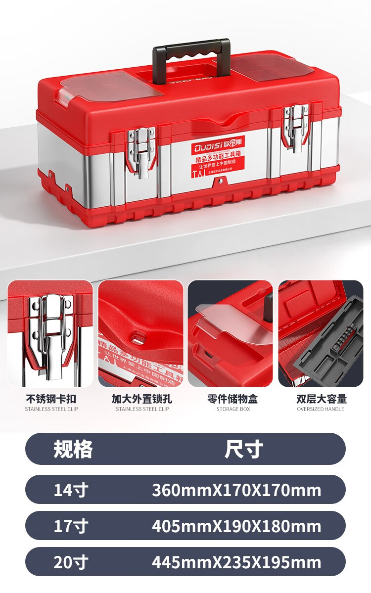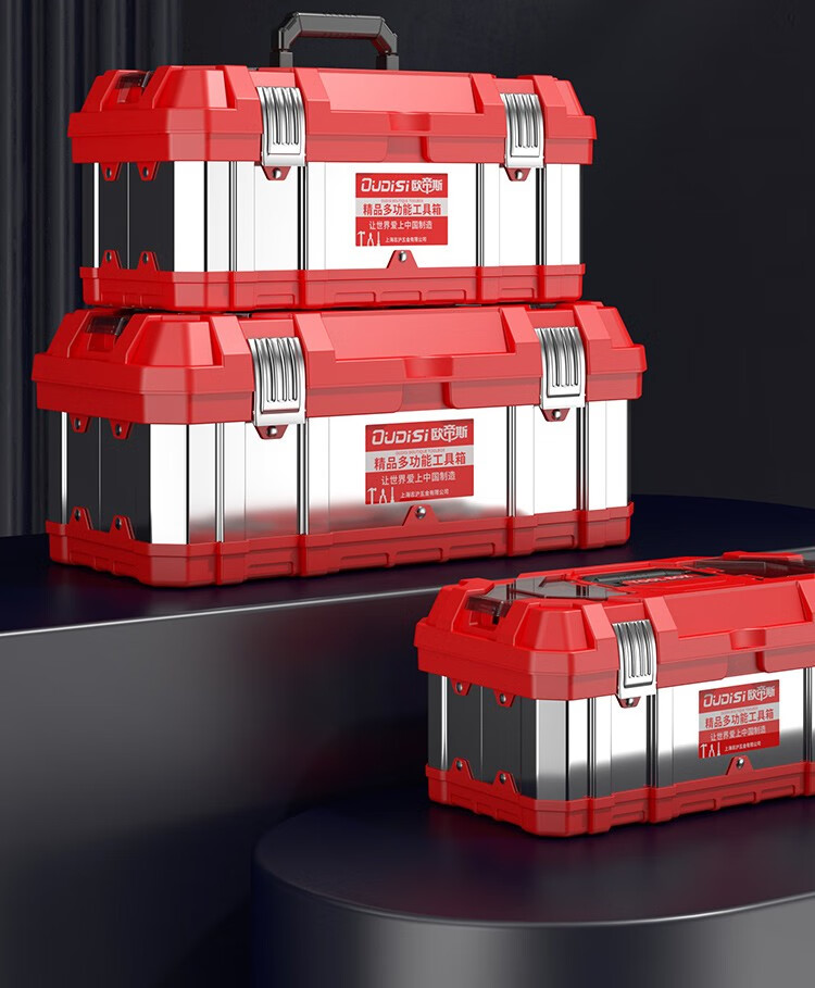 Otis stainless steel tool box full set household hardware tool box storage box three-layer folding repair electrician parts box double layer standard stainless steel folding dump box