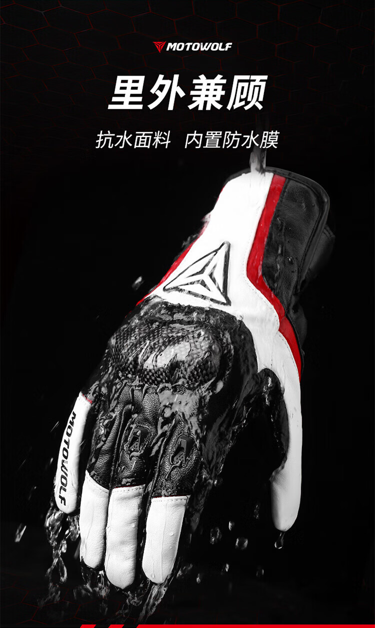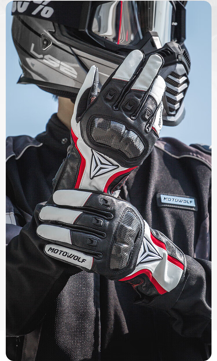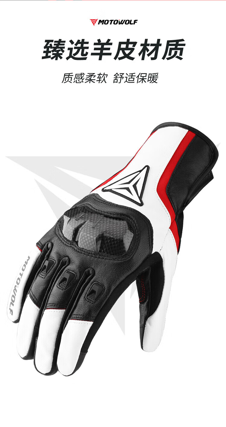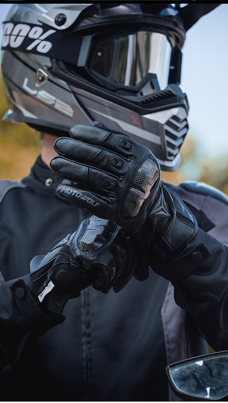 MOTOWOLF motorcycle leather gloves winter anti-fall plus velvet motorcycle motorcycle warm waterproof windproof carbon fiber rider equipment black/waterproof thickened plus velvet L/genuine sheepskin carbon fiber protective shell