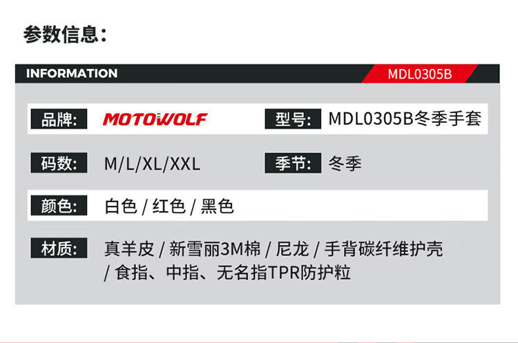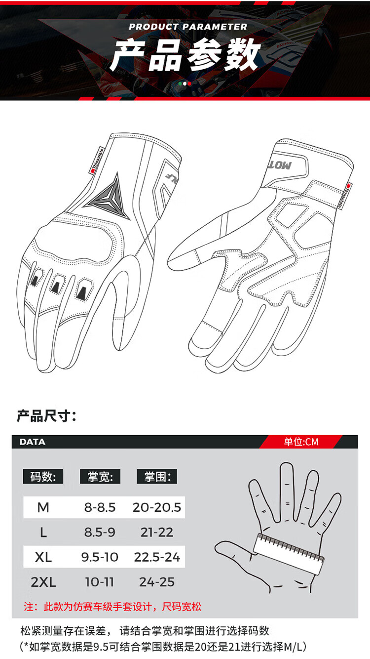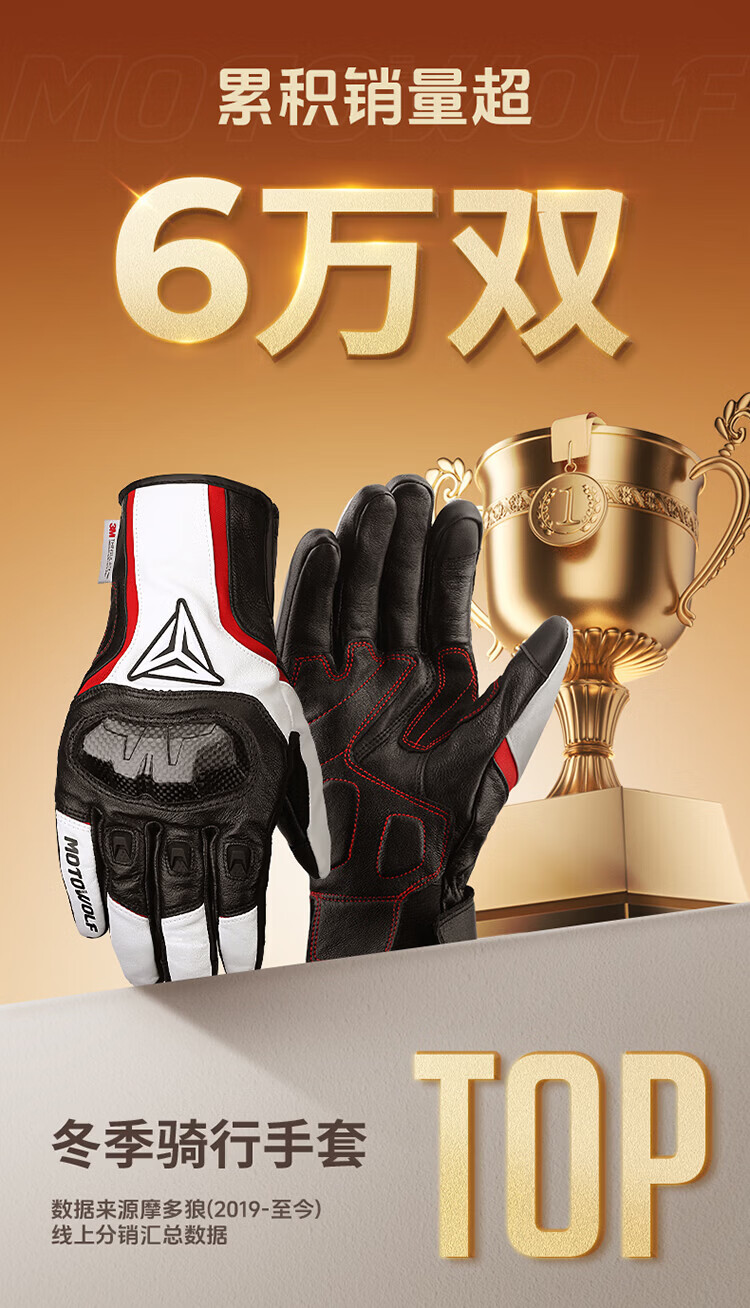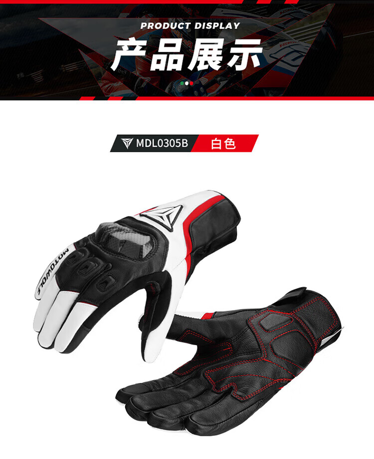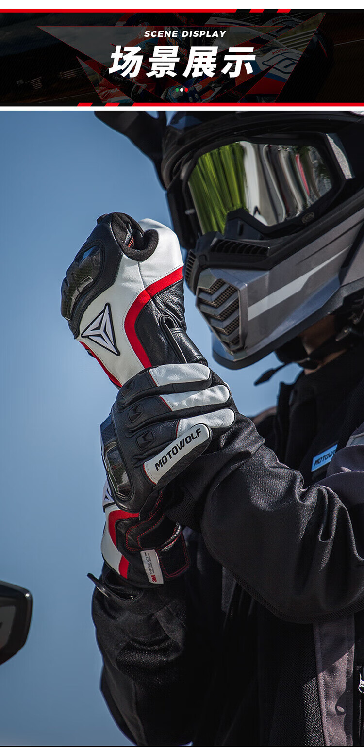 MOTOWOLF motorcycle leather gloves winter anti-fall plus velvet motorcycle motorcycle warm waterproof windproof carbon fiber rider equipment black/waterproof thickened plus velvet L/genuine sheepskin carbon fiber protective shell