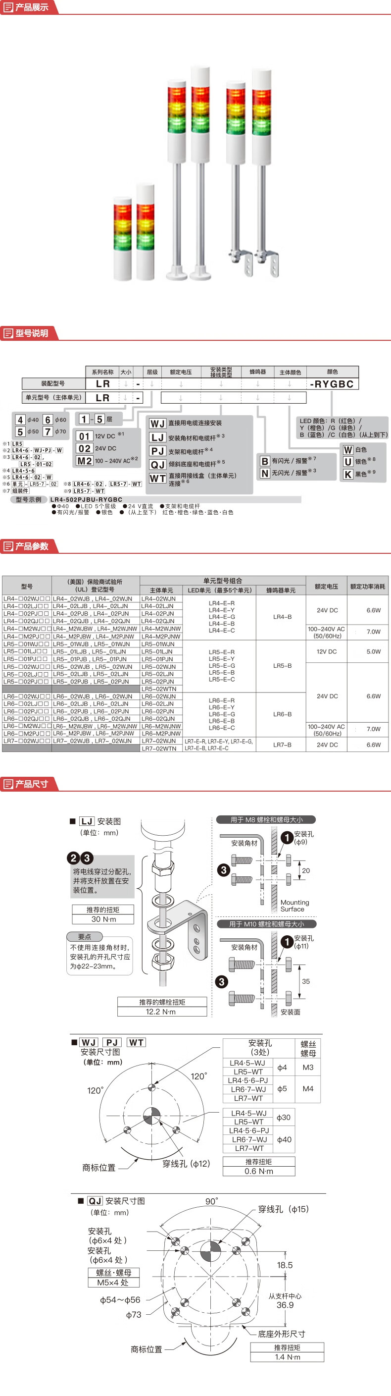 Patley | 60mm LED multi-layer signal light LR6-402WJBW-RYGB 1-year warranty