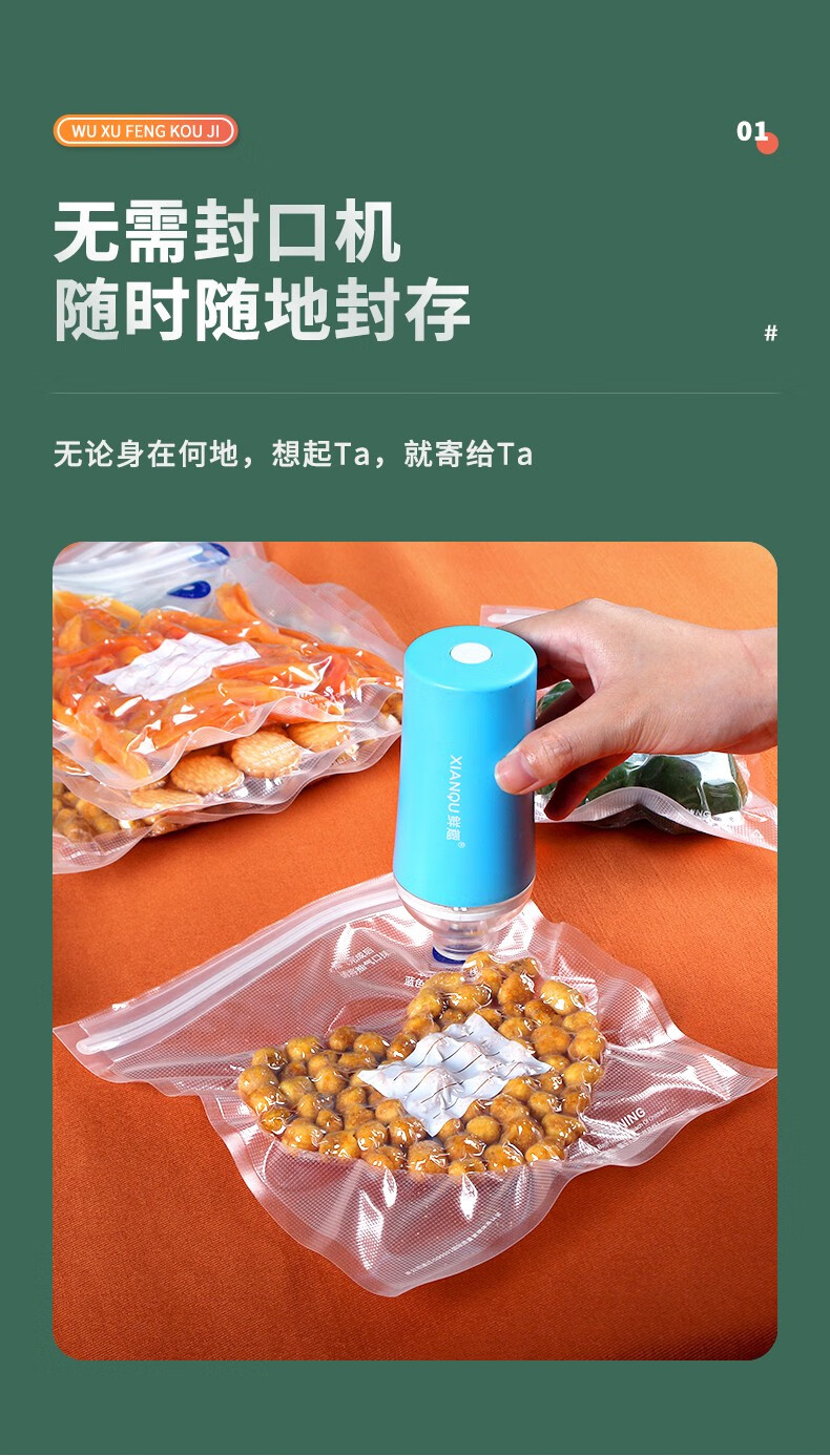 XIAN QU vacuum sealing bag food grade vacuum compression bag ziplock bag manual/with air valve/recyclable 30*34cm 10 pieces (excluding air pump)