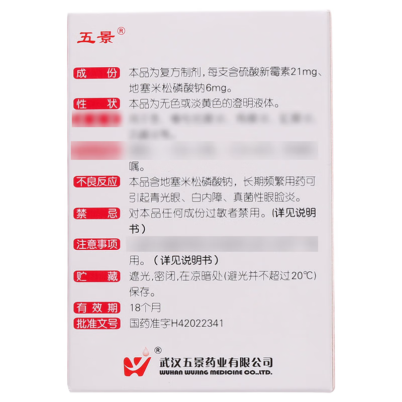 Wujing Compound Neomycin Sulfate Eye Drops 21mg 6mg*6ml 1 box