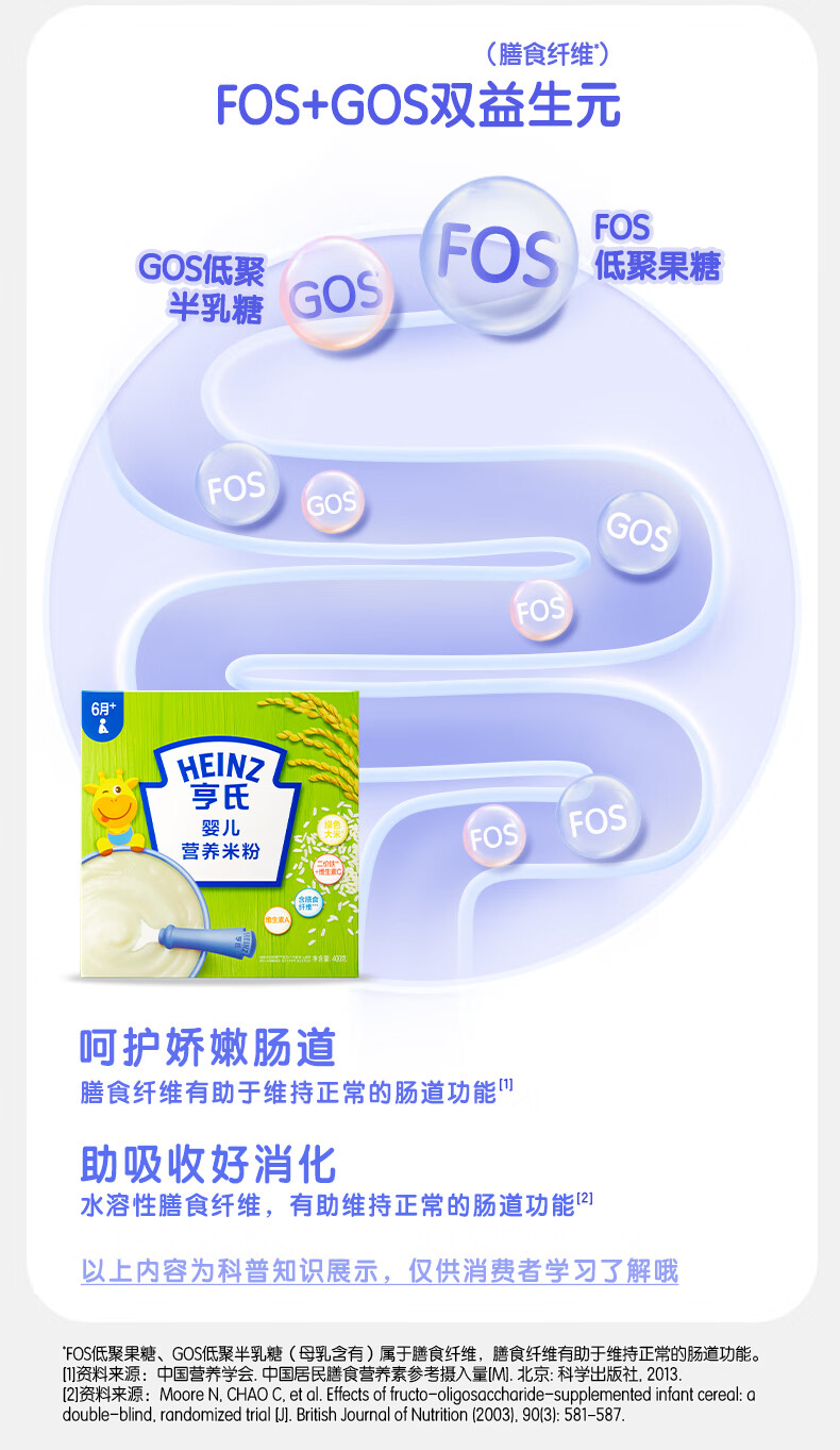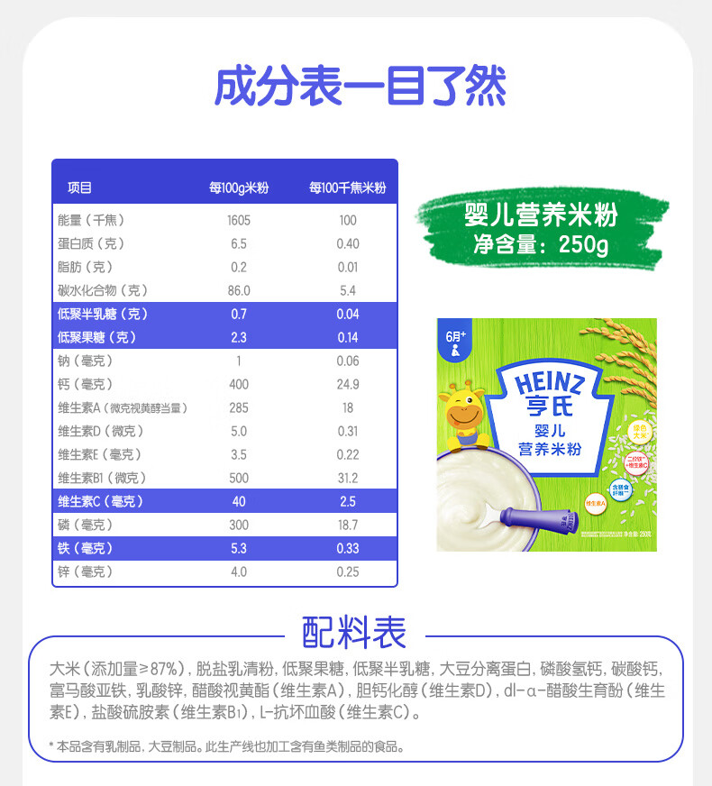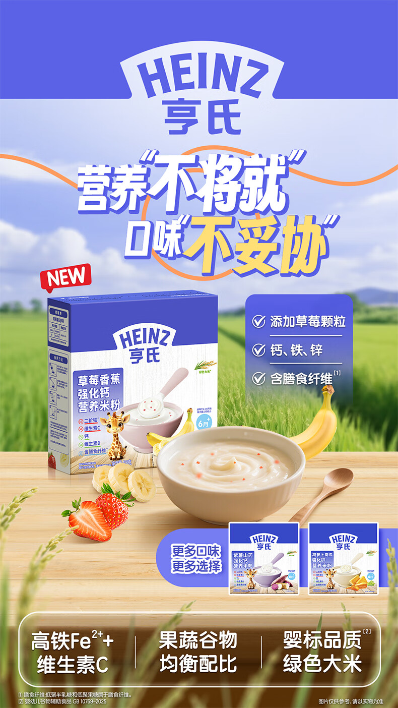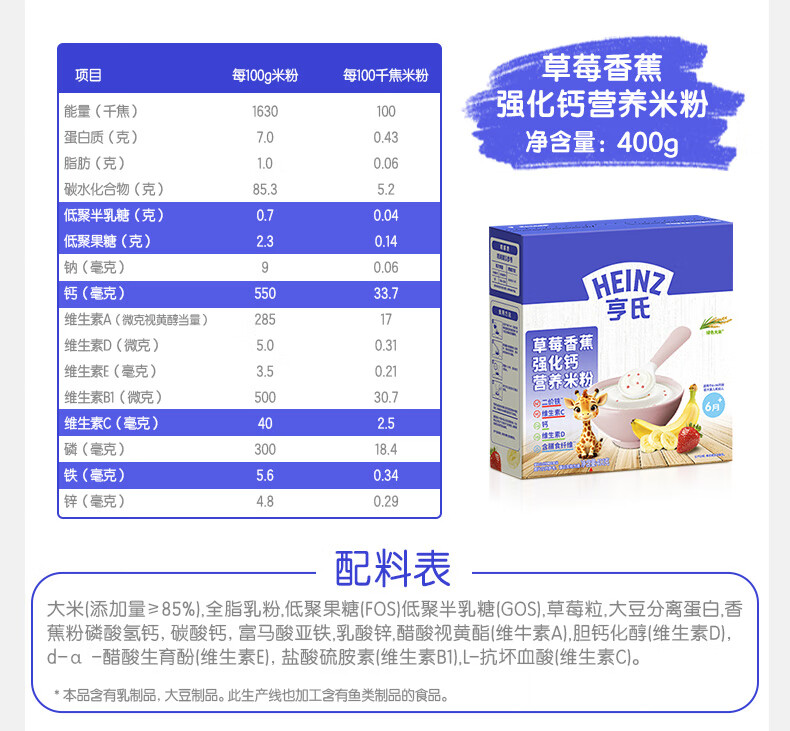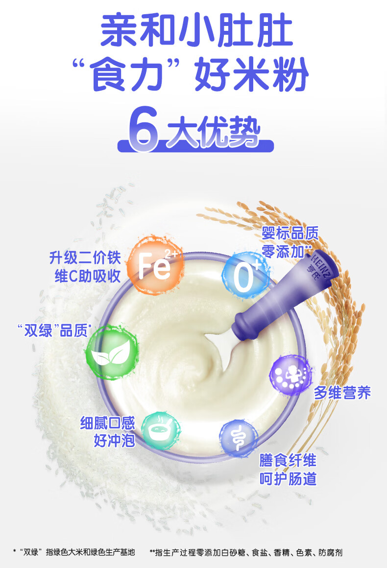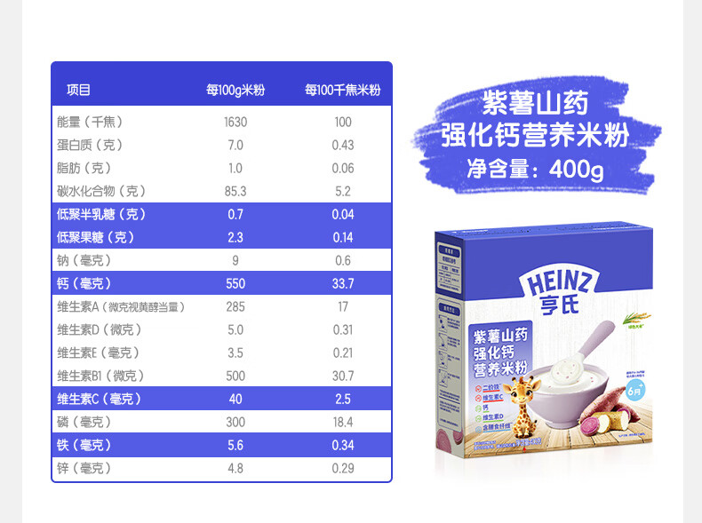 Heinz 2 boxes of infant nutrition high iron rice cereal baby food supplement fortified iron rice cereal (for 6-36 months) iron zinc calcium rice cereal 400g*2 boxes