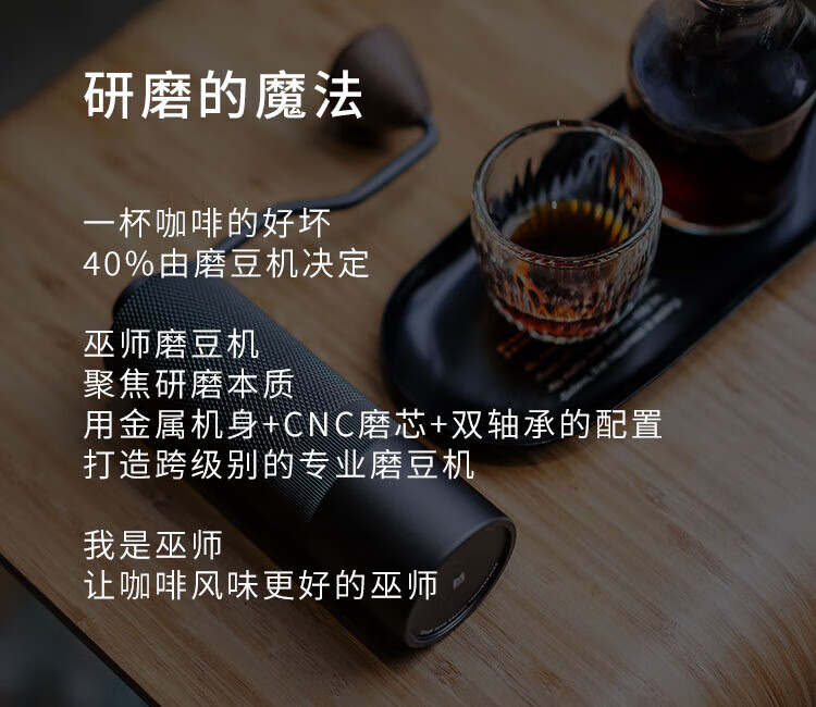 MAVO Wizard Hand Grinder Coffee Bean Grinder Hand Grinding Coffee Bean Grinder Hand CNC Grinding Core 2.0 Obsidian Black-All-purpose Edition