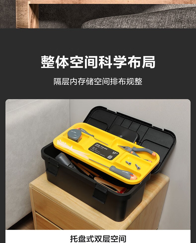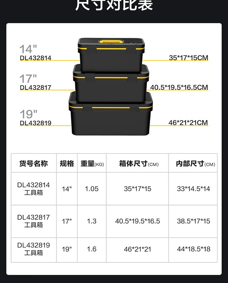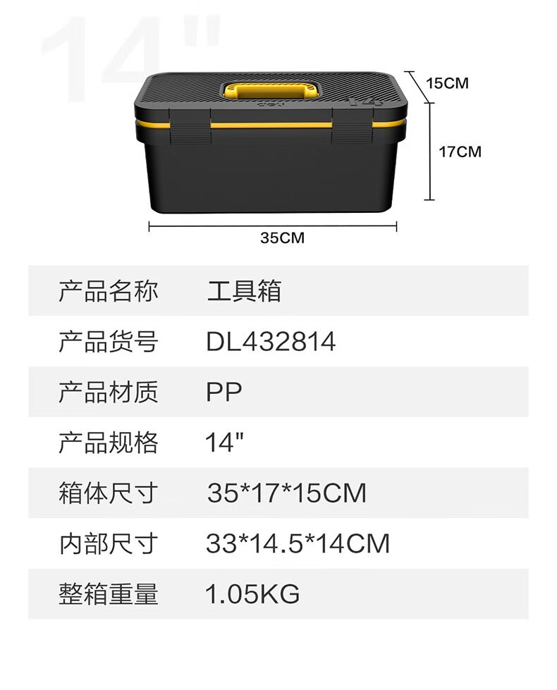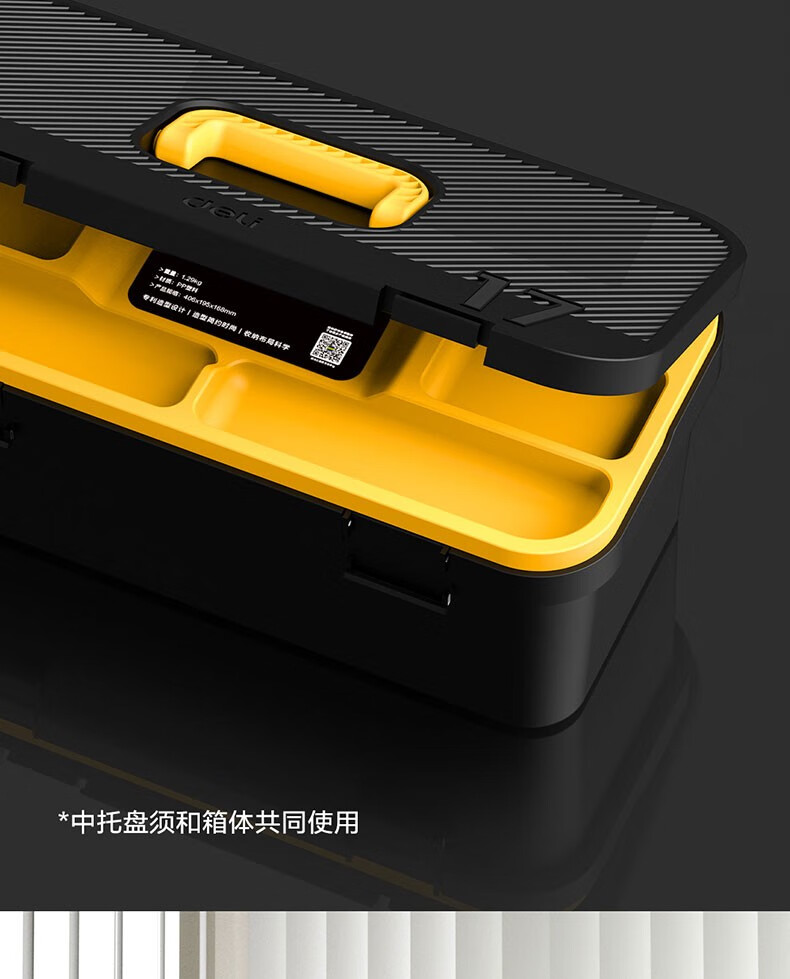 Deli tool box empty box household hardware storage box large multi-functional repair tool electrician portable student DL432814 fashionable 14-inch