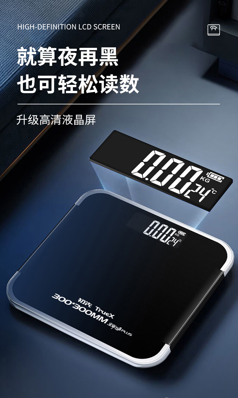 TrueX all-inclusive large-scale scale high-precision electronic scale human body accurate weighing scale kilogram scale rechargeable home weight loss dedicated large-weight intelligent wireless scale upgraded model + larger and thicker quiet night black