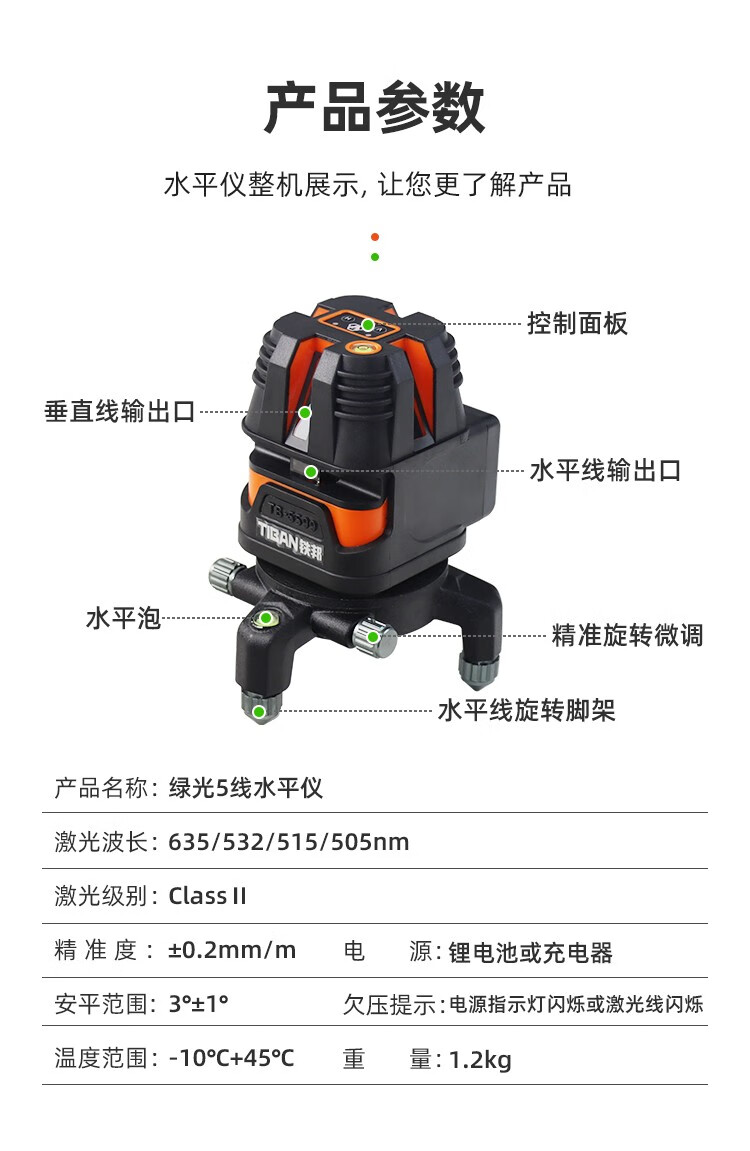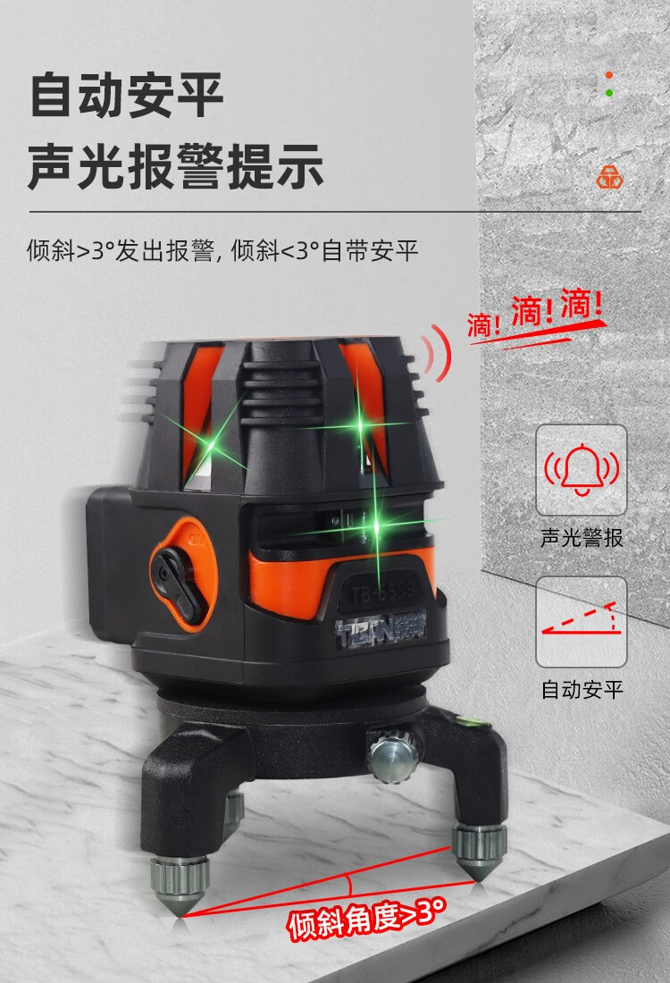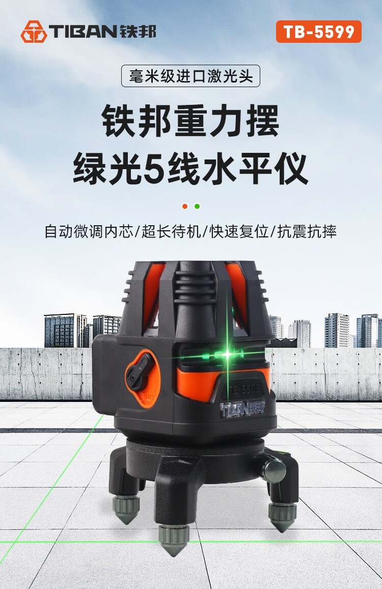 Tie Bang 5-line level gravity pendulum green light high-precision 180 wide-angle high-brightness thin line wall-mounted laser infrared Tie-Bang_5599 Green light 5-line level