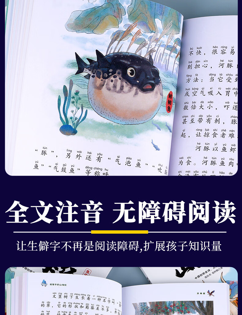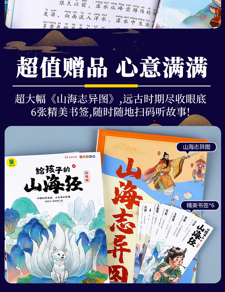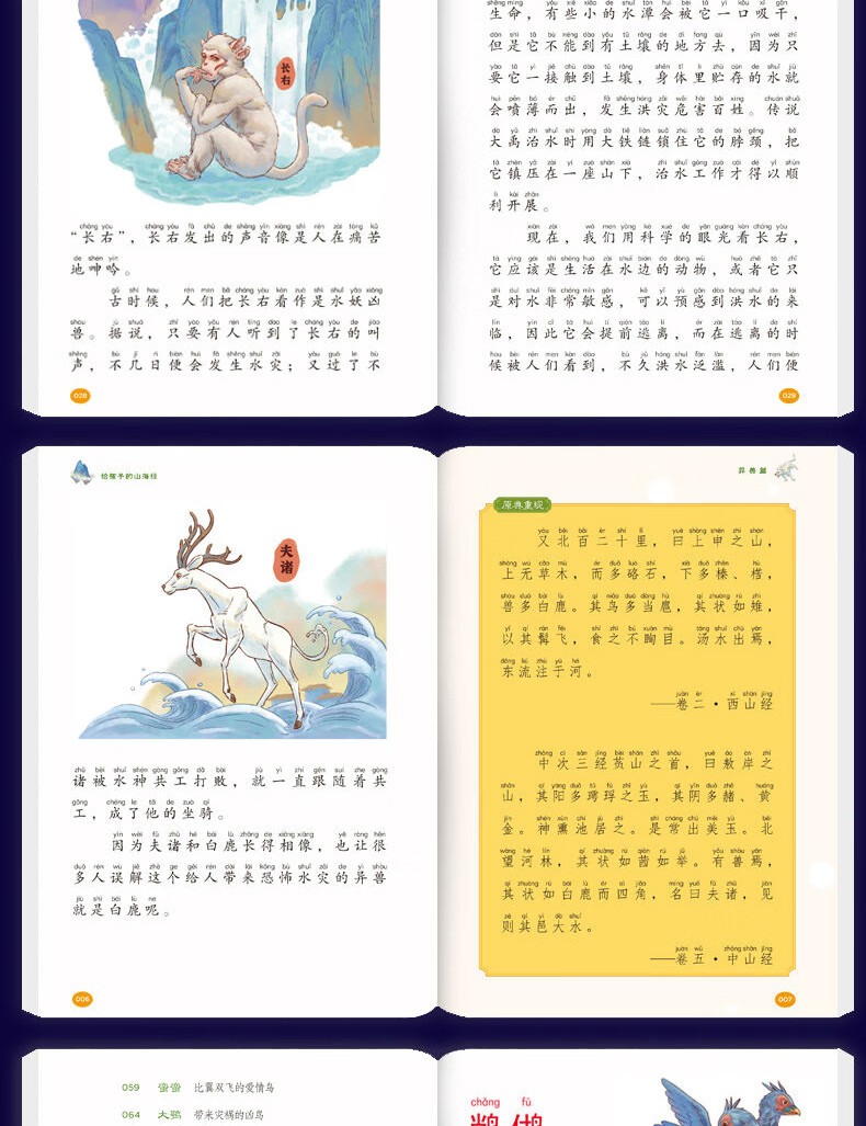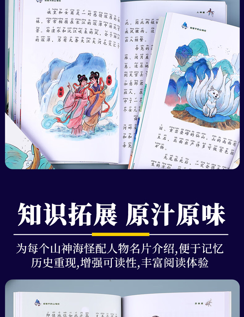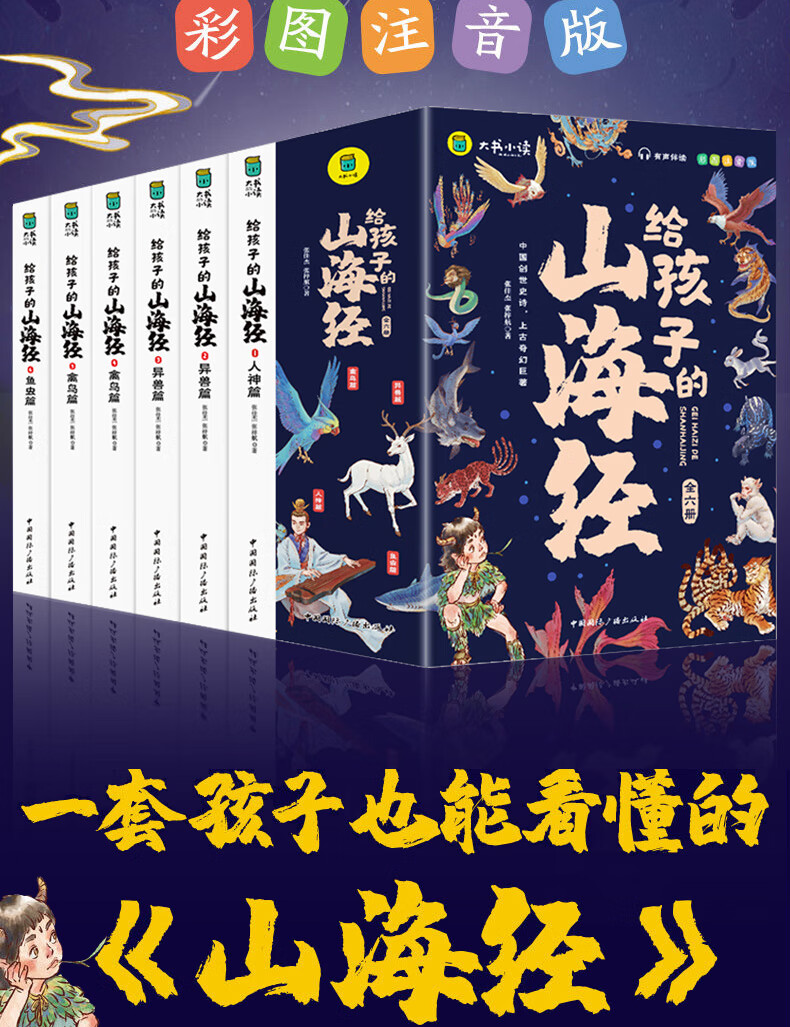 The Classic of Mountains and Seas, primary school student edition, is a genuine original complete collection of Chinese folk myths and stories written for children in grades 1, 2, 3, 4 and 5. Extracurricular reading book. Children's Edition. The phonetic version of the Classic of Mountains and Seas, which children can understand. Children's Day. Children's Book Festival. The Classic of Mountains and Seas, written for children, color illustrated phonetic version, all 6 volumes.