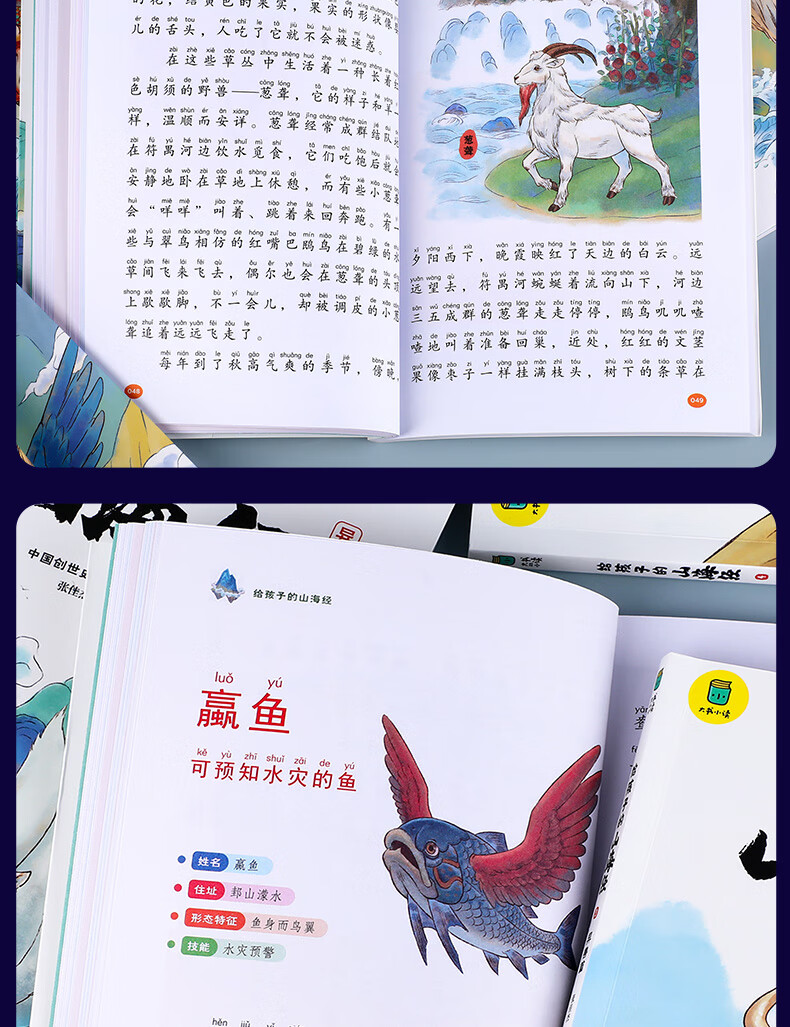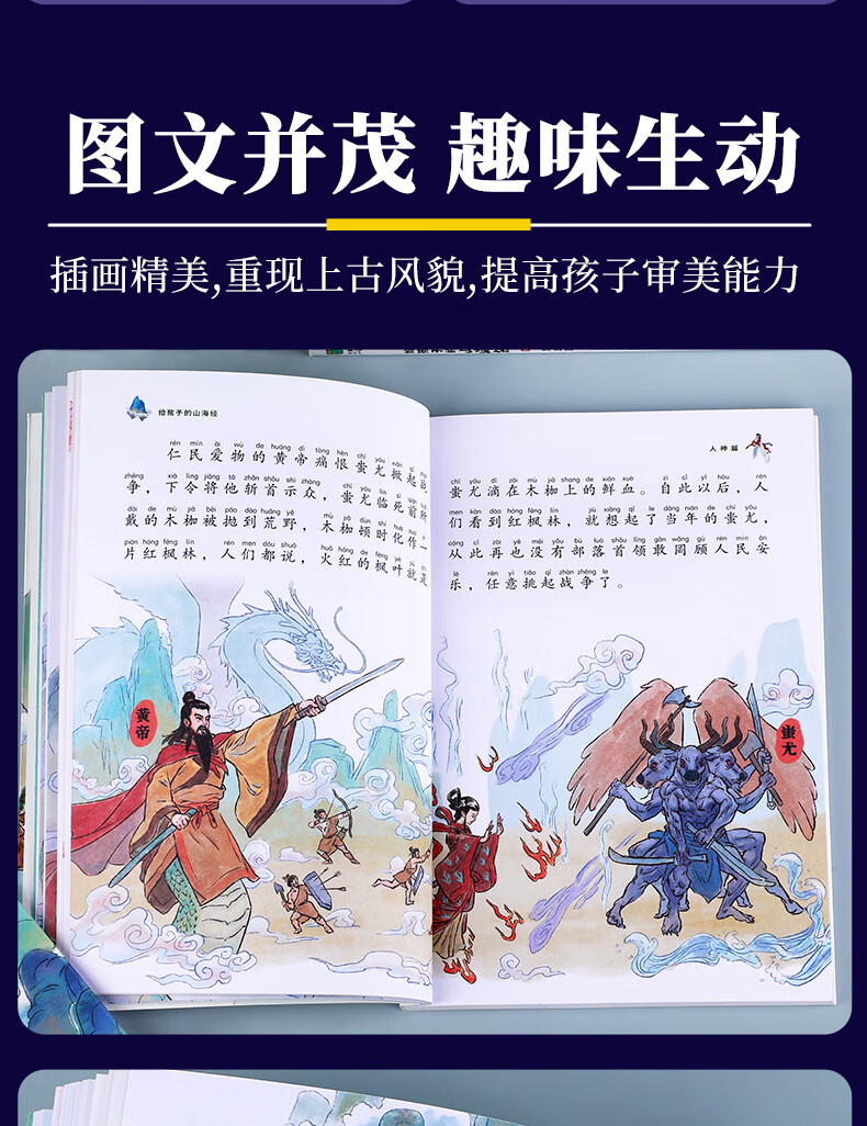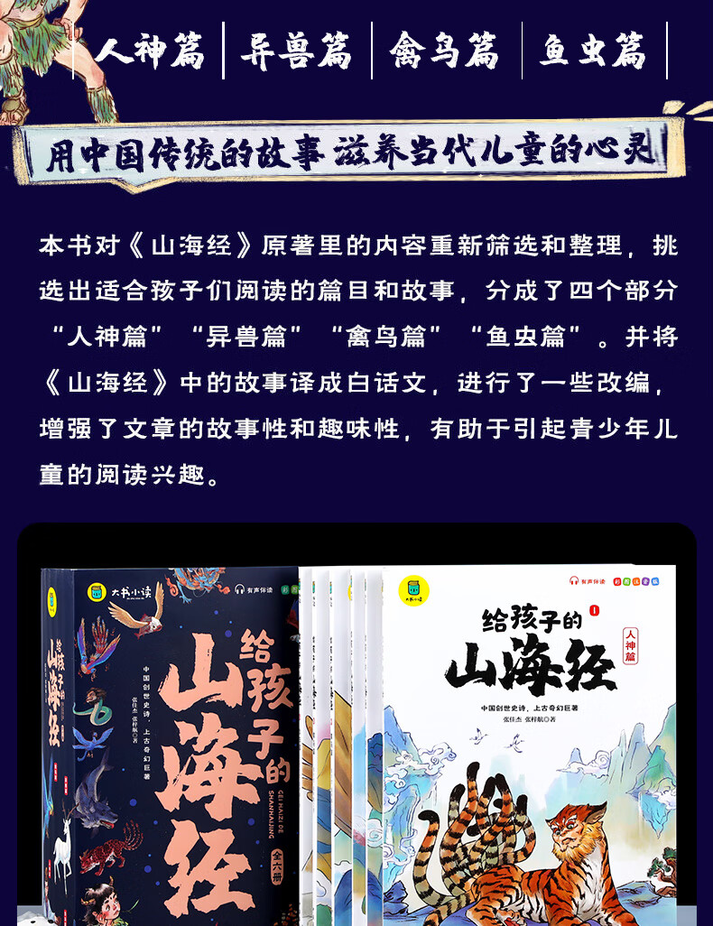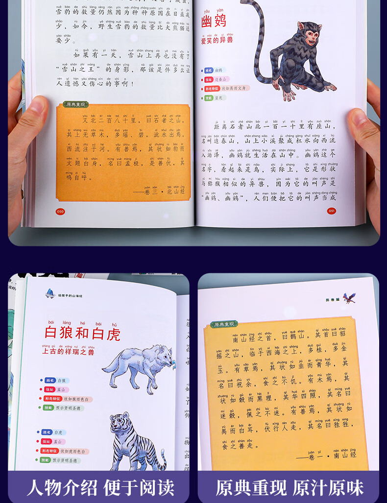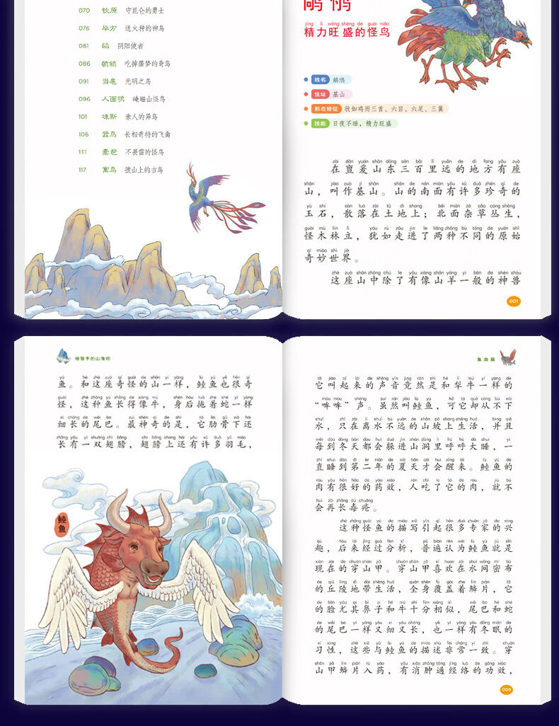 The Classic of Mountains and Seas, primary school student edition, is a genuine original complete collection of Chinese folk myths and stories written for children in grades 1, 2, 3, 4 and 5. Extracurricular reading book. Children's Edition. The phonetic version of the Classic of Mountains and Seas, which children can understand. Children's Day. Children's Book Festival. The Classic of Mountains and Seas, written for children, color illustrated phonetic version, all 6 volumes.