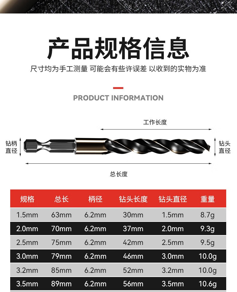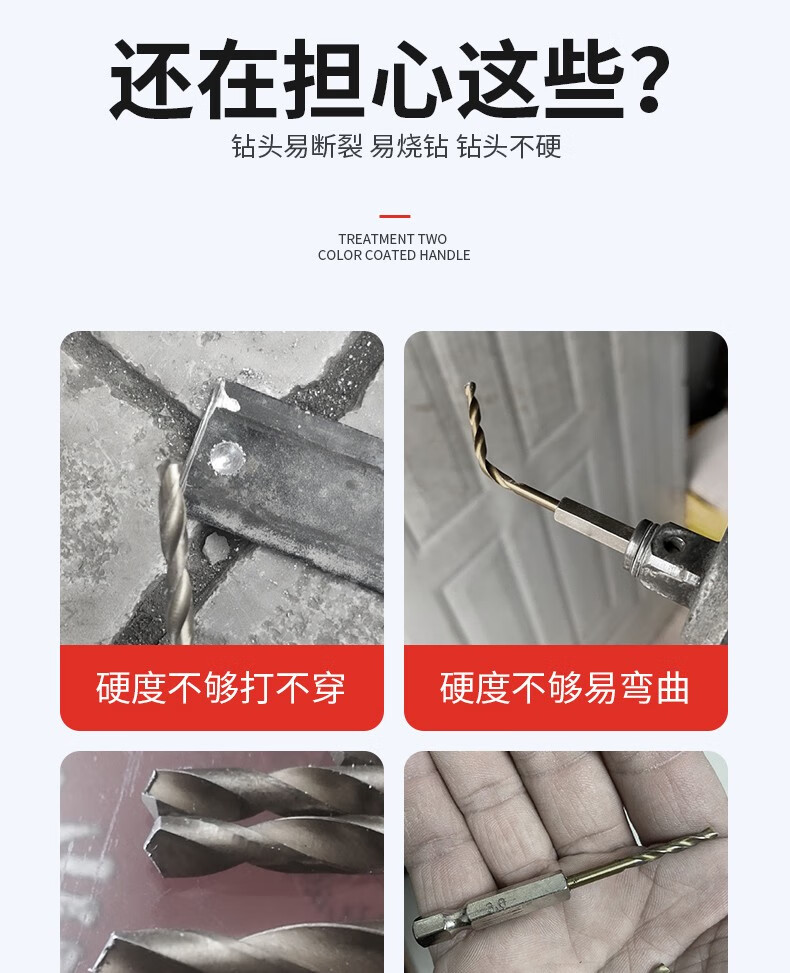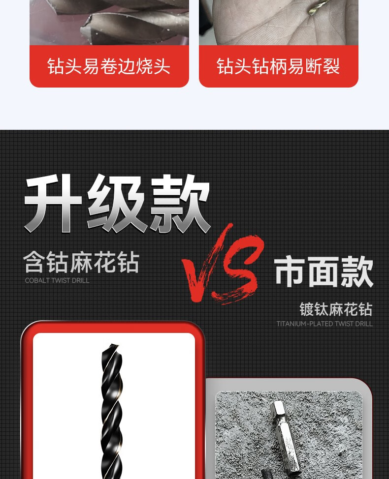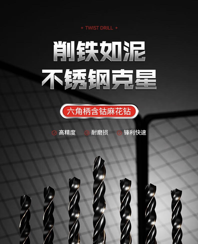 Niuxiang cobalt-containing twist drill bit stainless steel nemesis hexagonal handle twist drill bit high-speed steel electric drill bit accessories bit hexagonal handle drill bit 3-10MM 6-piece set