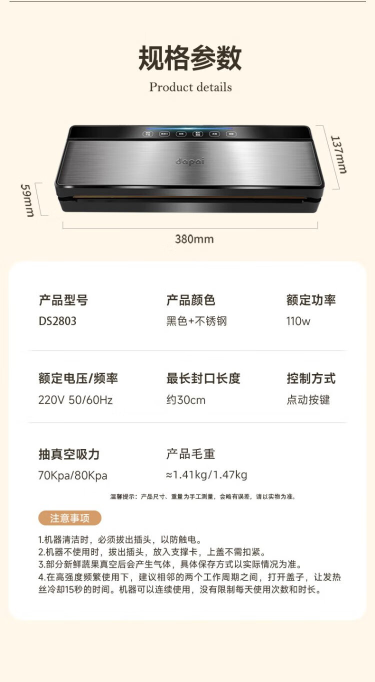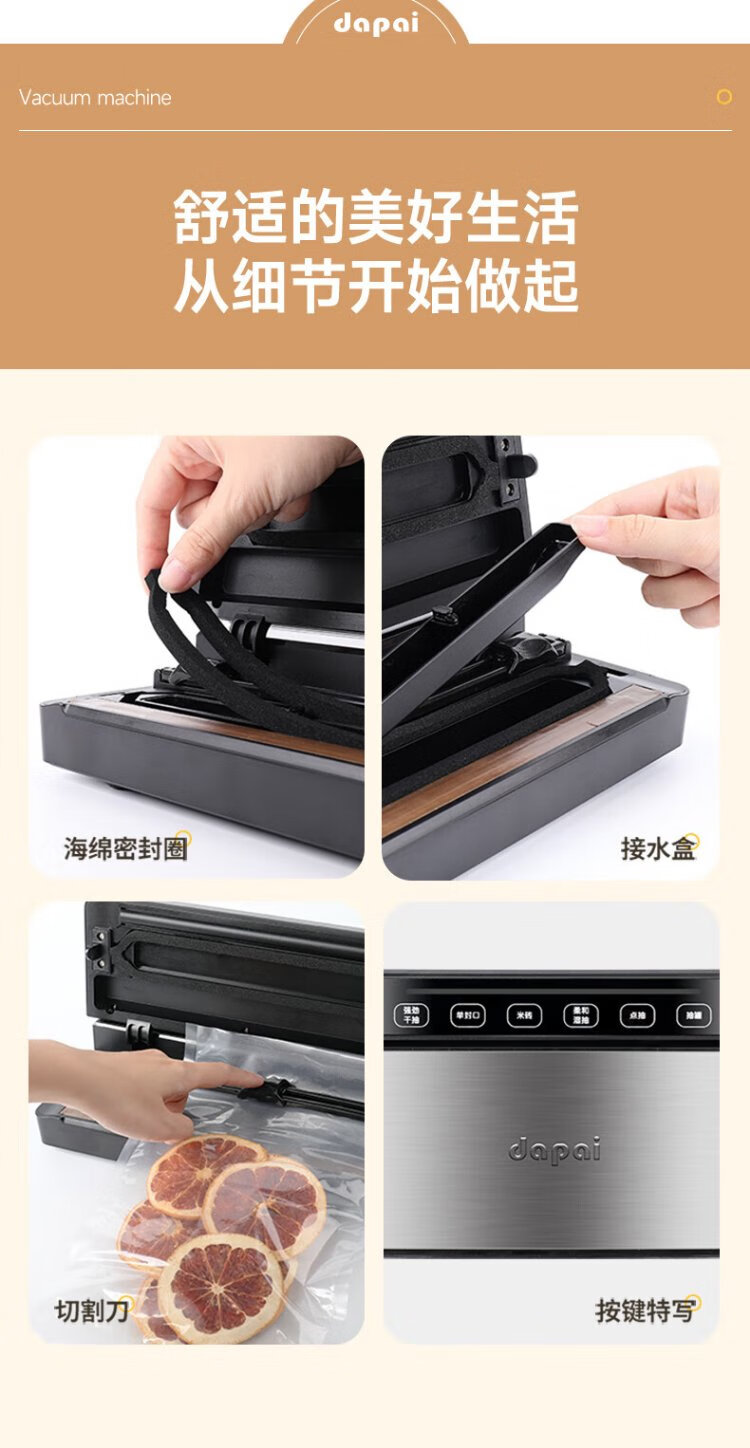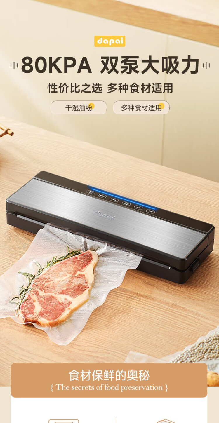 Dapai (dapai) German vacuum sealing machine, compression sealing machine, food packaging machine, dual-pump fresh-keeping bag plastic sealing machine, vacuum packaging machine, upgraded dual-pump large suction model (enjoy vacuum bag when placing an order)