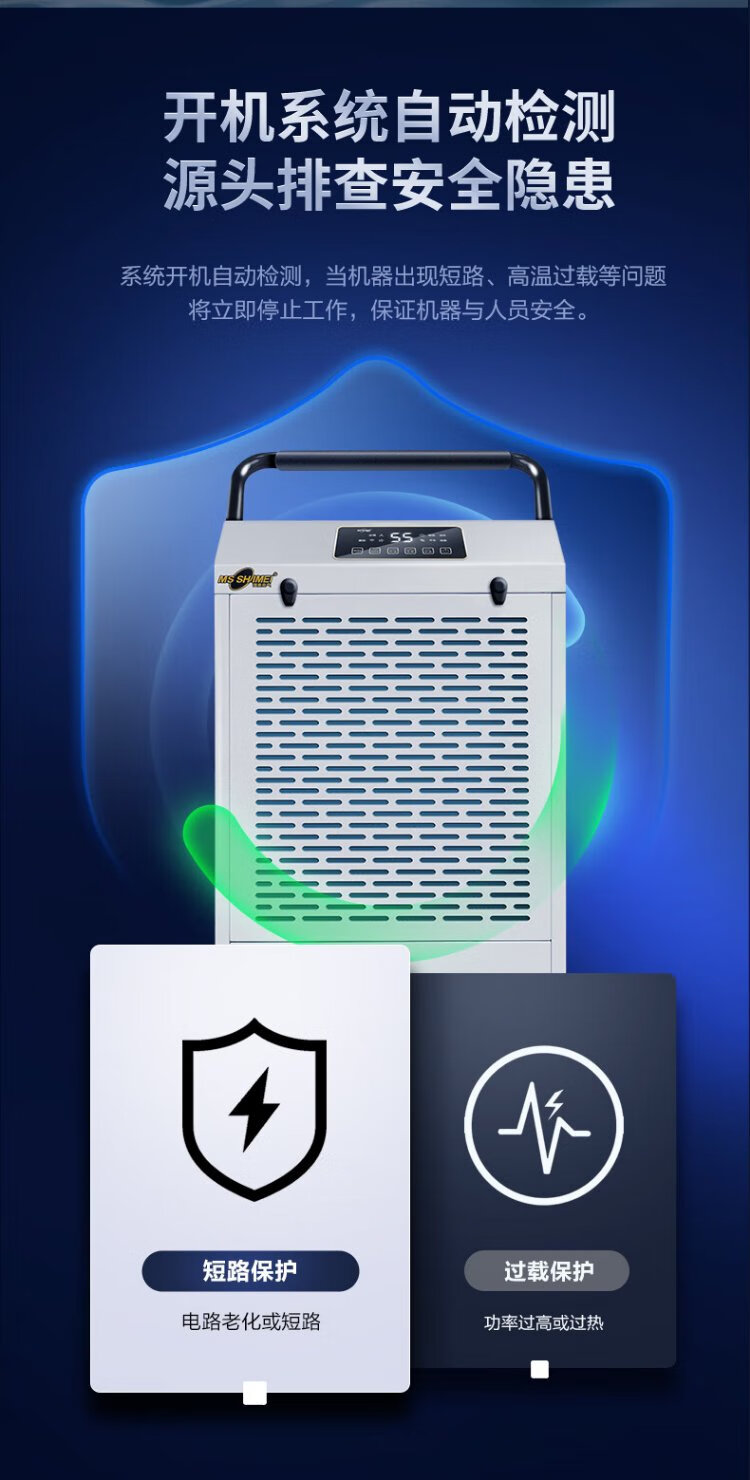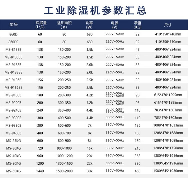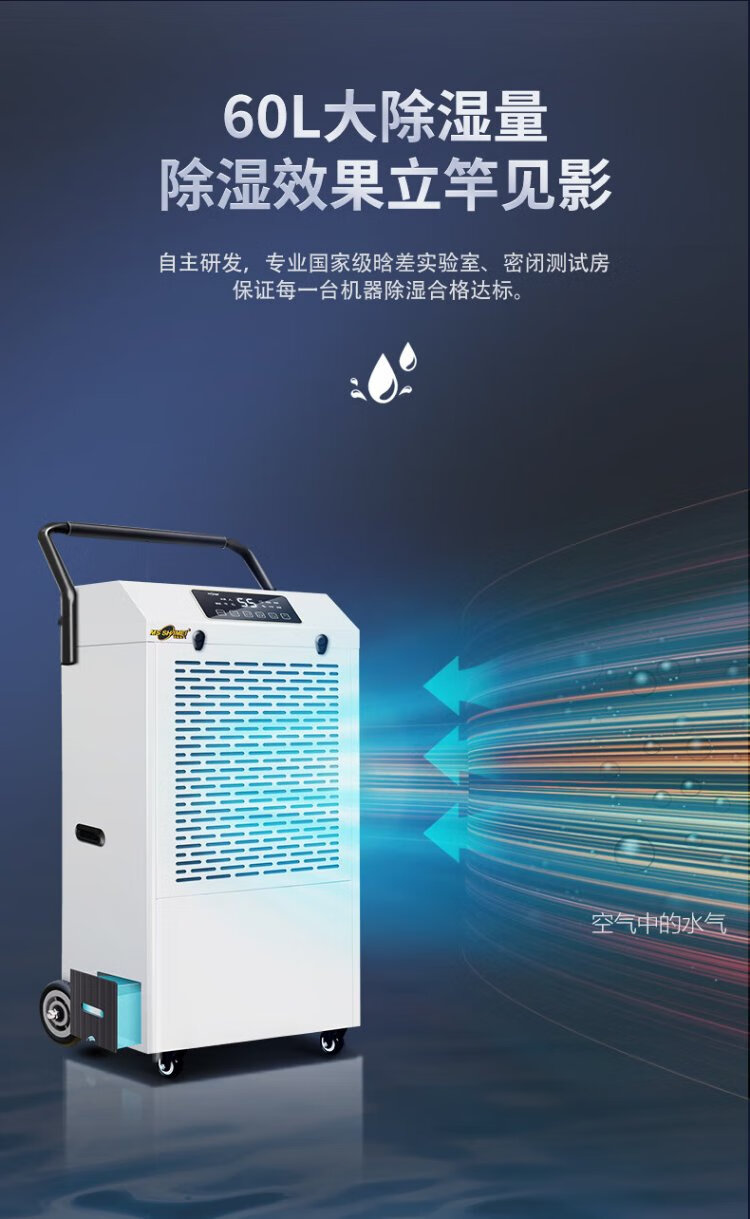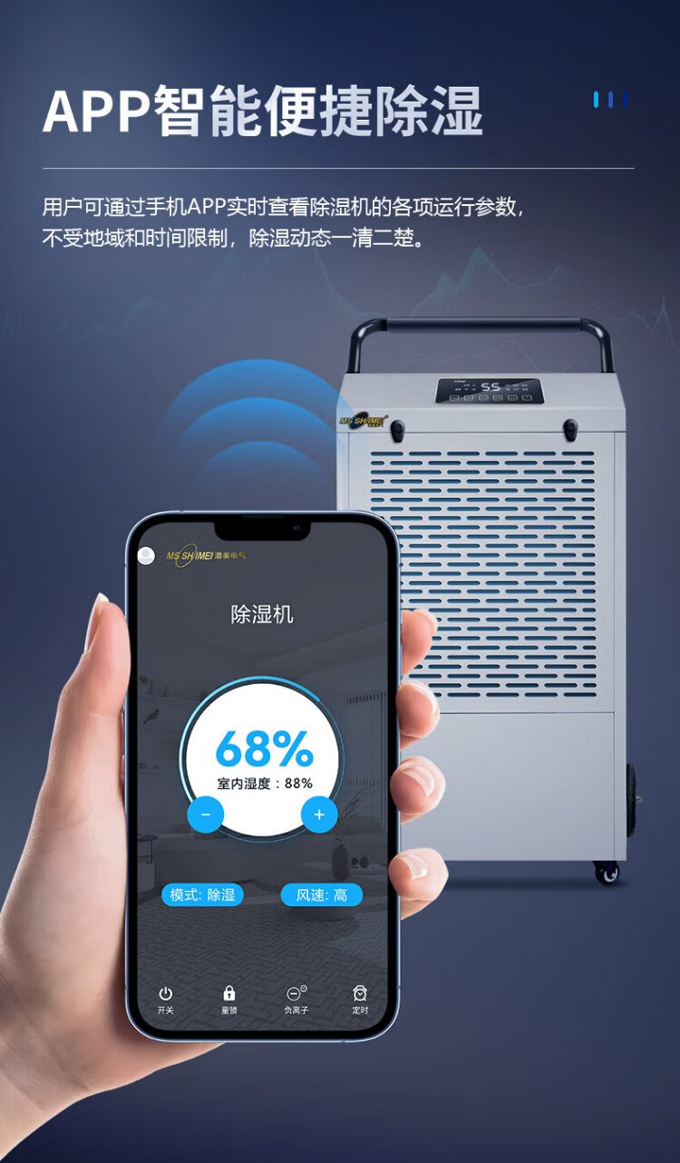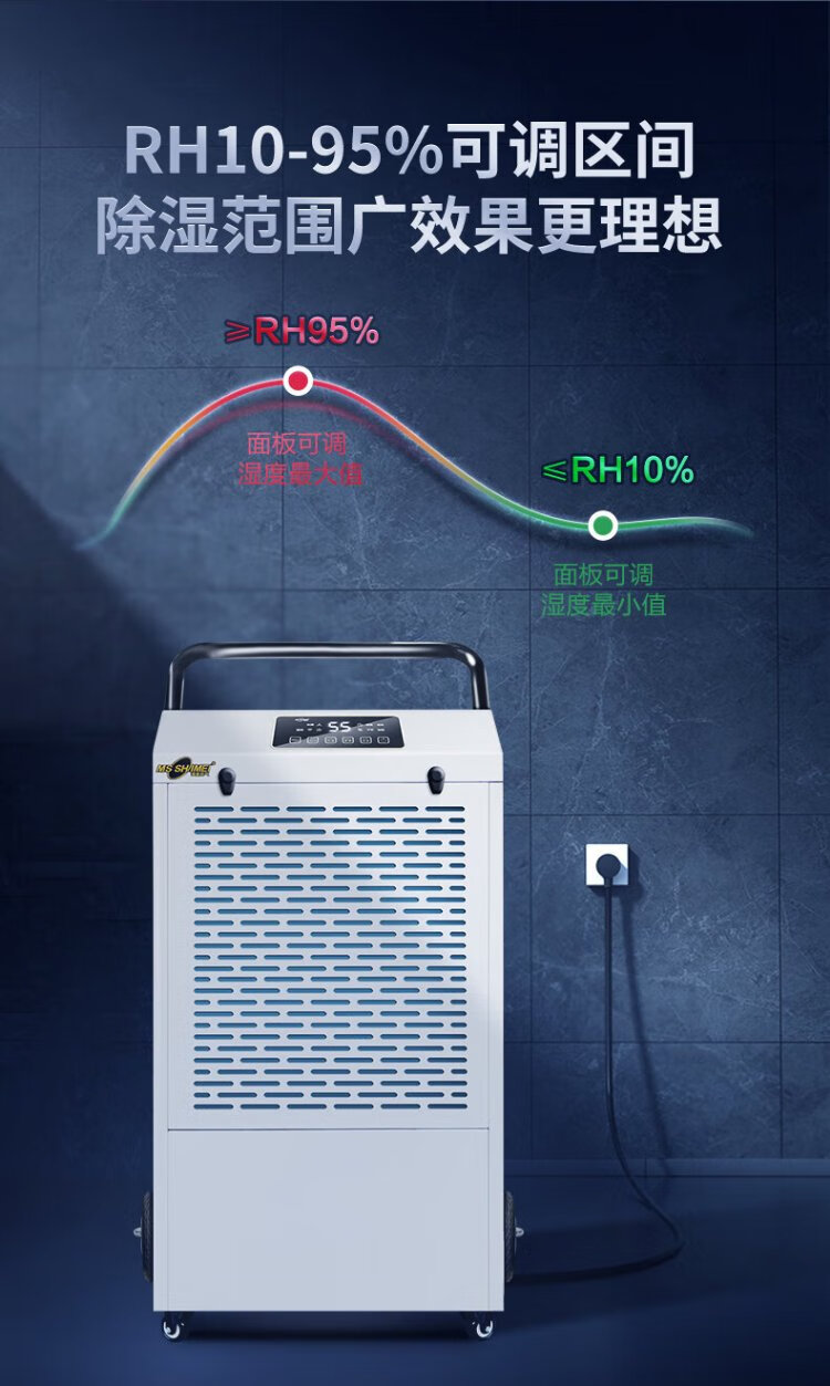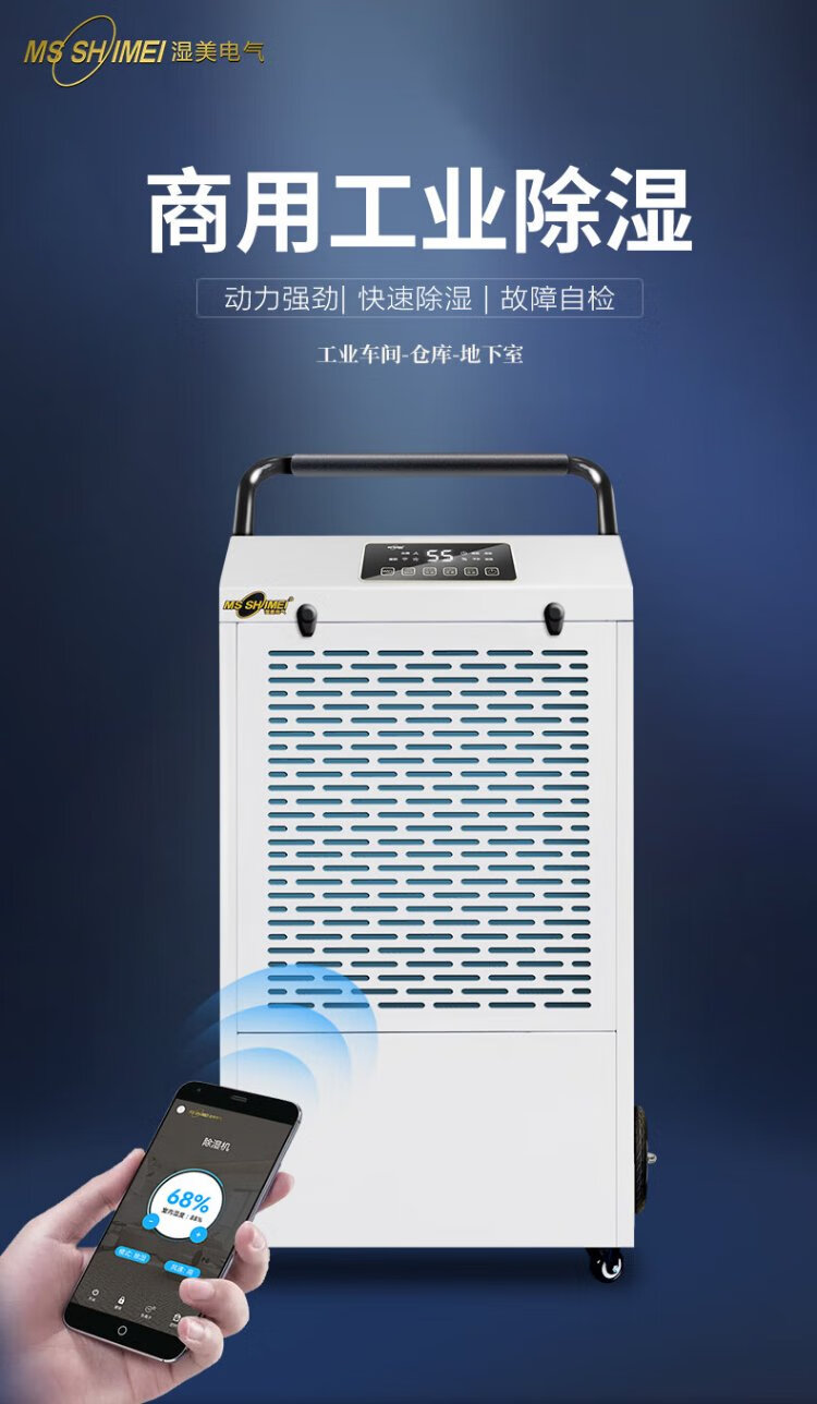 MSSHIMEI dehumidifier is suitable for workshops/warehouses/basements/office files/hospitals/chemical fiber/pharmaceuticals/printing/tea/food/leather/textile and other places. 60L/day. Direct payment. Recommended for use within 100 square meters.