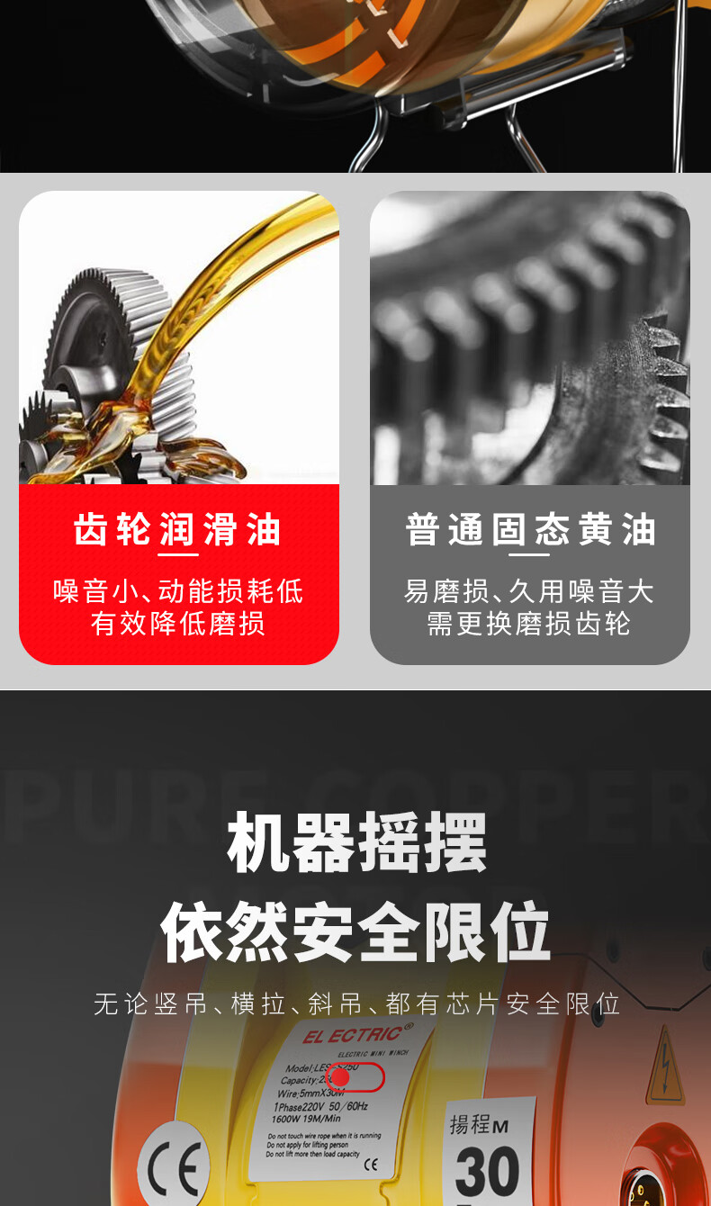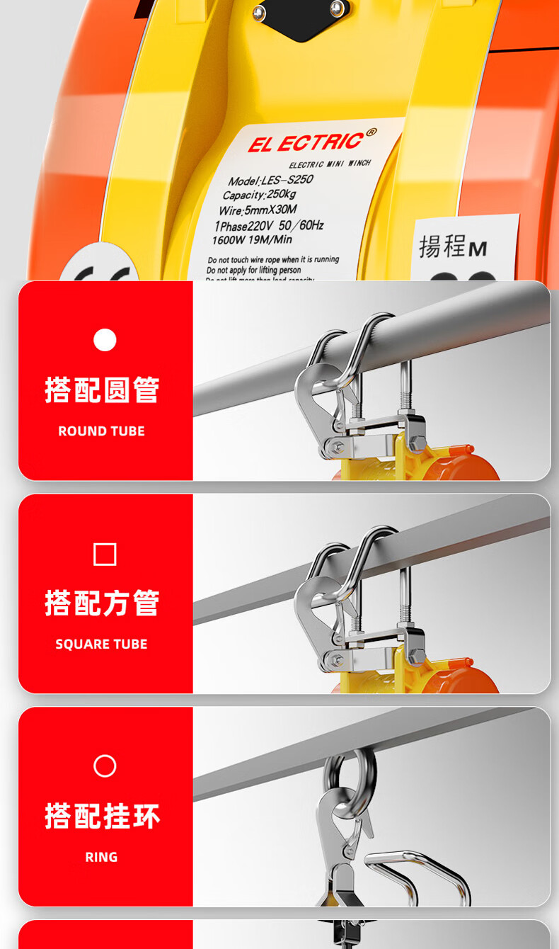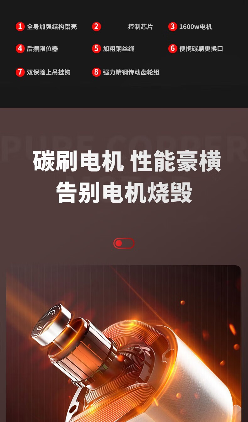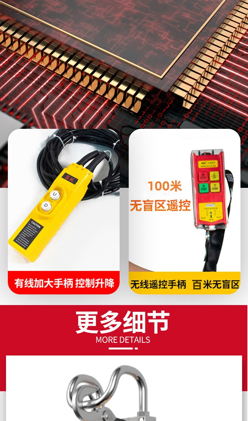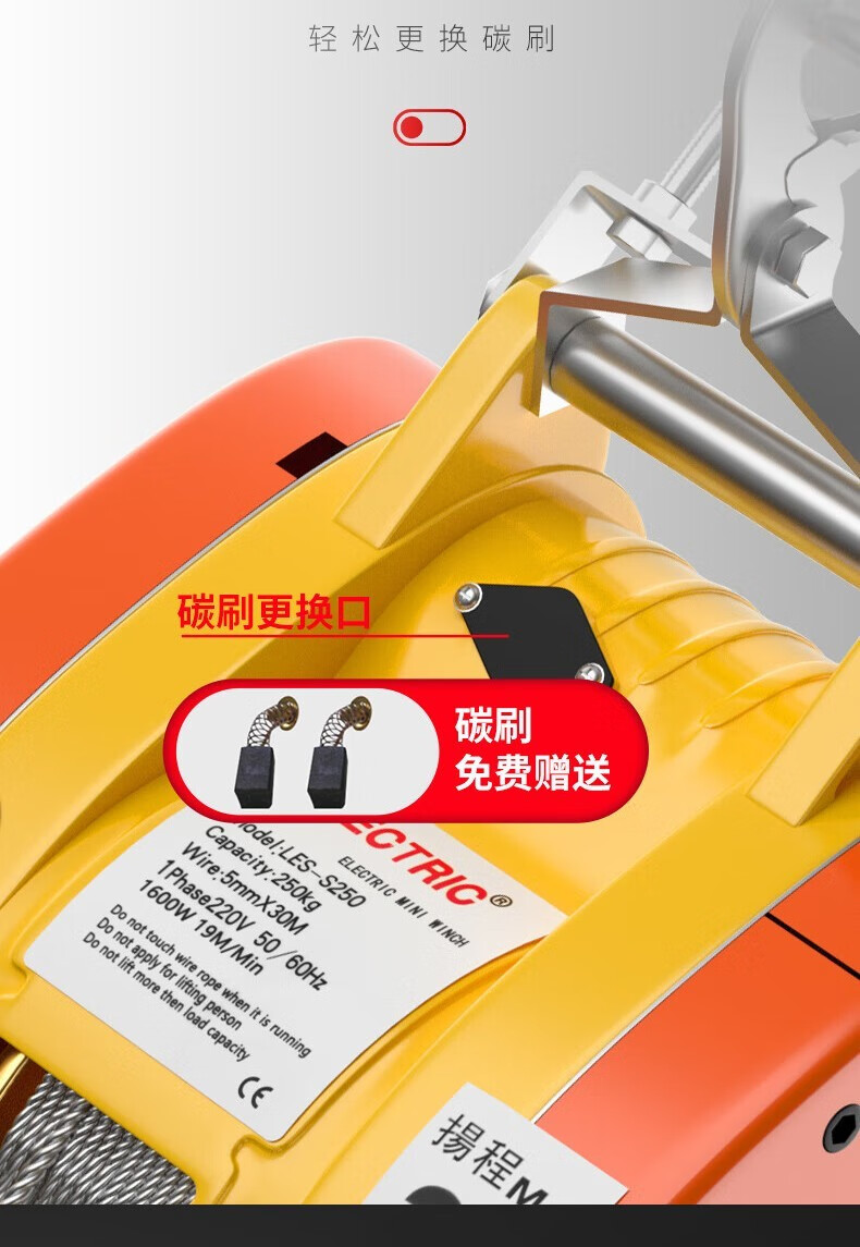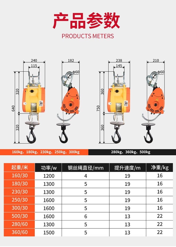 MuGong electric hoist 220V household crane lift 500 kg fast electric hoist 0.5 ton winch hoist 160 kg wire rope 30 meters wire control + remote control
