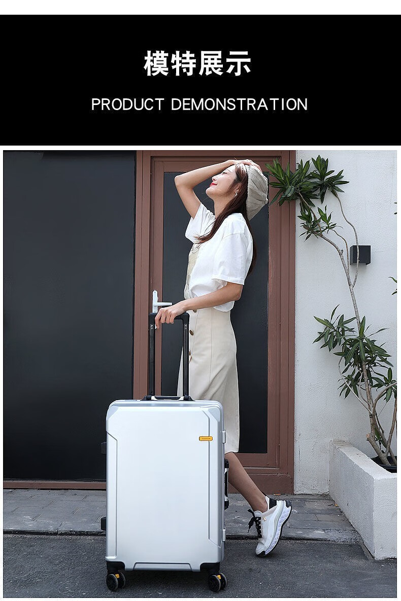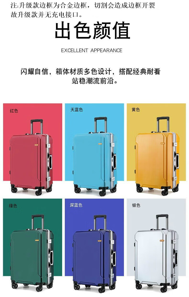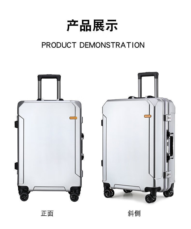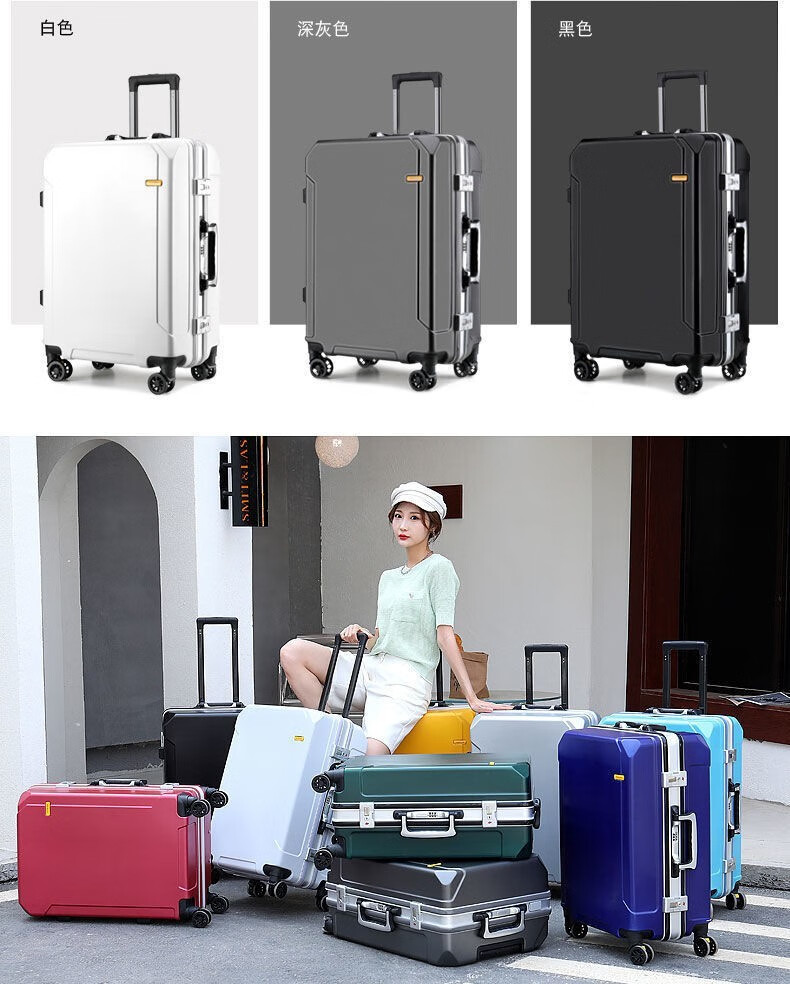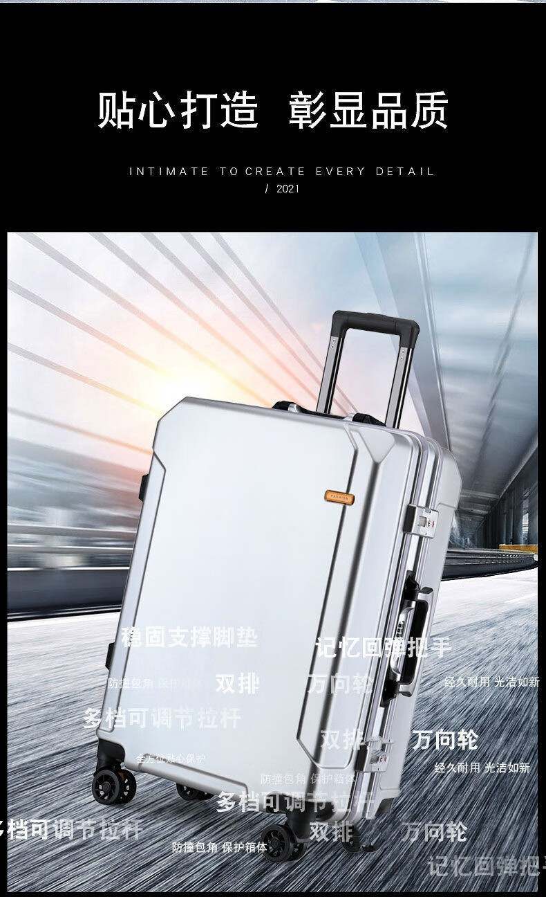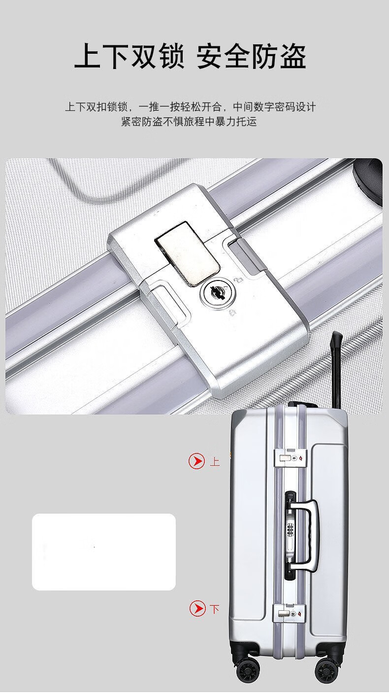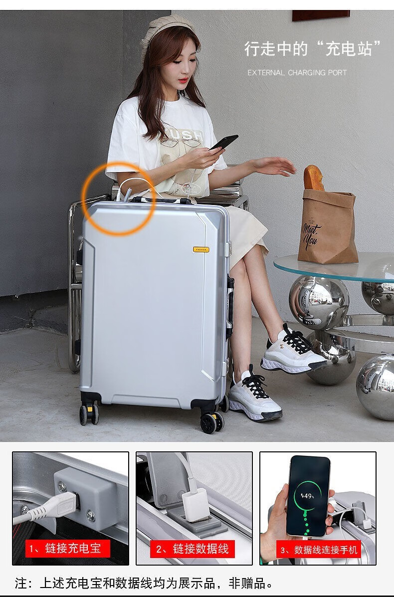 Diston Paul (DISIDUNBAOLUO) luggage thickened aluminum frame trolley case, strong and durable password box, student large-capacity suitcase, boarding suitcase, gray, scratch-resistant aluminum frame - with charging port, 20 inches, can be boarded, suitable for short-distance business trips